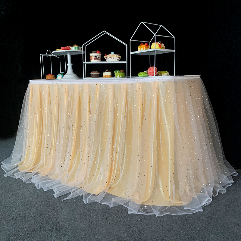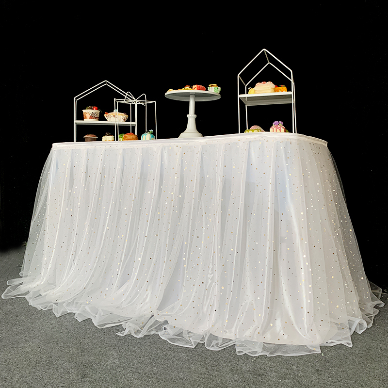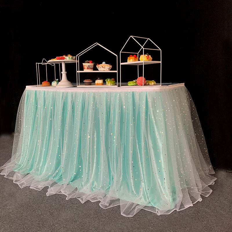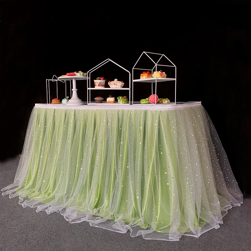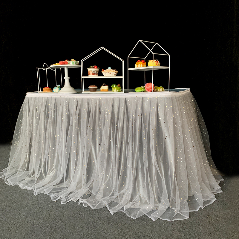 거즈 테이블 스커트 생일 파티 웨딩 디저트 테이블 스커트 테이블 천 활동 테이프 레이아웃 사인 오프닝 거즈 스커트