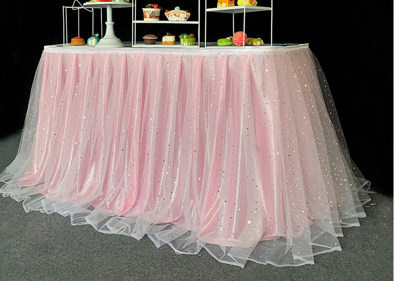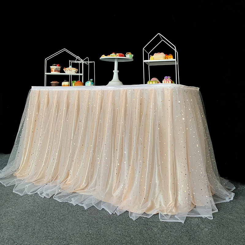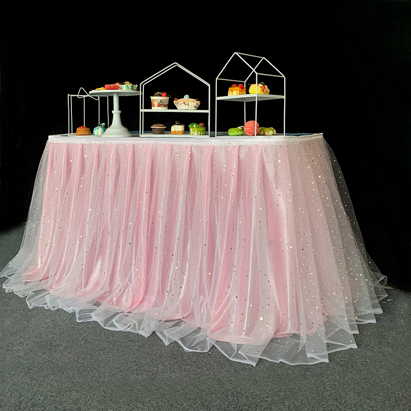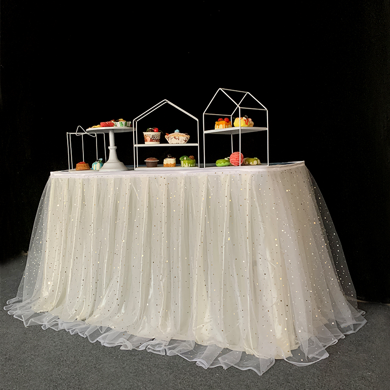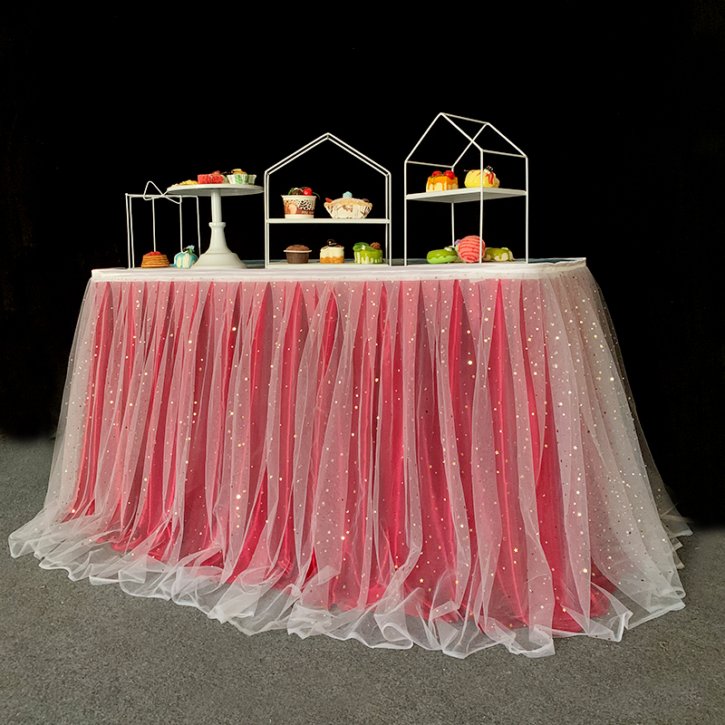 거즈 테이블 스커트 생일 파티 웨딩 디저트 테이블 스커트 테이블 천 활동 테이프 레이아웃 사인 오프닝 거즈 스커트