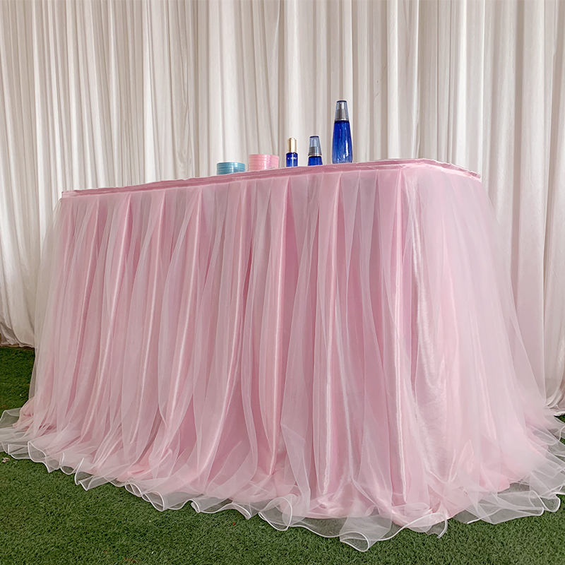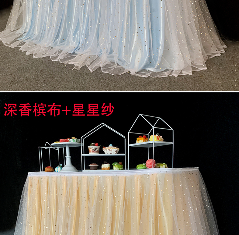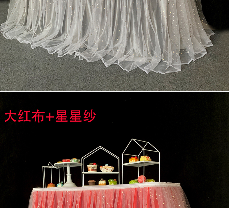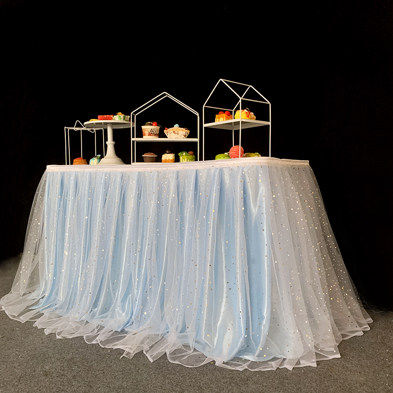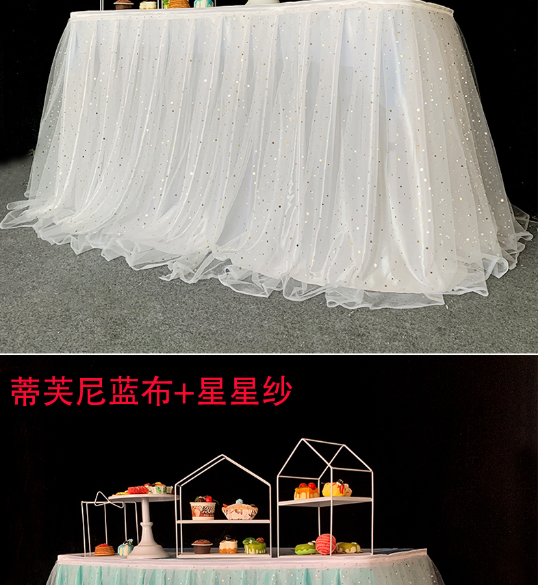 거즈 테이블 스커트 생일 파티 웨딩 디저트 테이블 스커트 테이블 천 활동 테이프 레이아웃 사인 오프닝 거즈 스커트스토어 가기