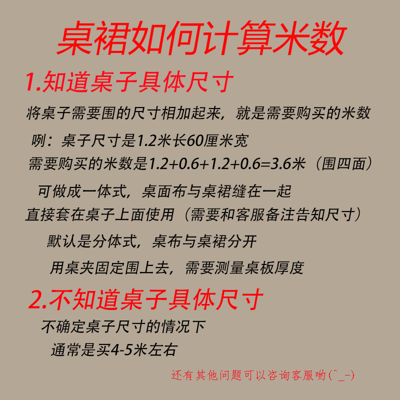 • 테이블 스커트 계산 방법은 사진을 참조하세요.