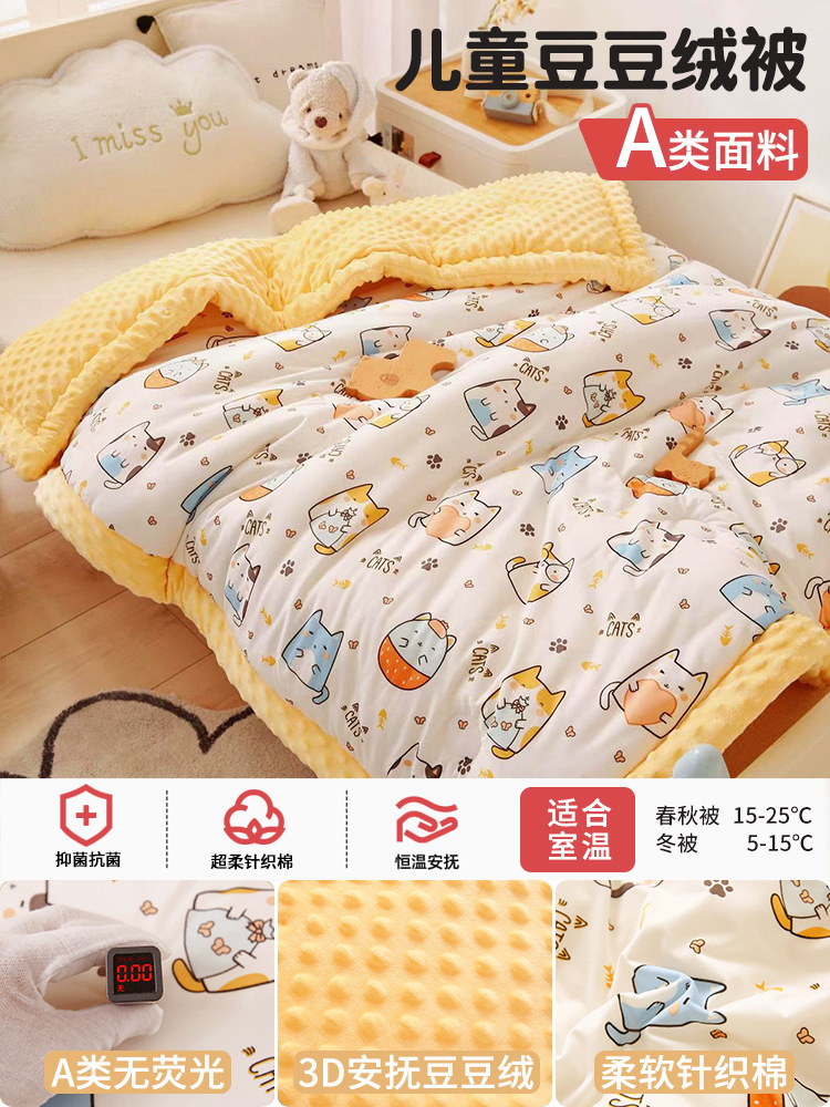 클래스 아기 완두콩 벨벳 작은 담요는 유치원 겨울 두꺼운 담요 낮잠 에어컨 담요 침대에 사용됩니다.스토어 가기