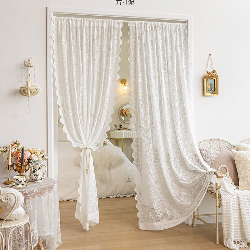 펀치없는 한국식 레이스 커튼 원사 주방 화이트 웨이브 에지 파티션 장식 벨크로 침실 도어 커튼 도매