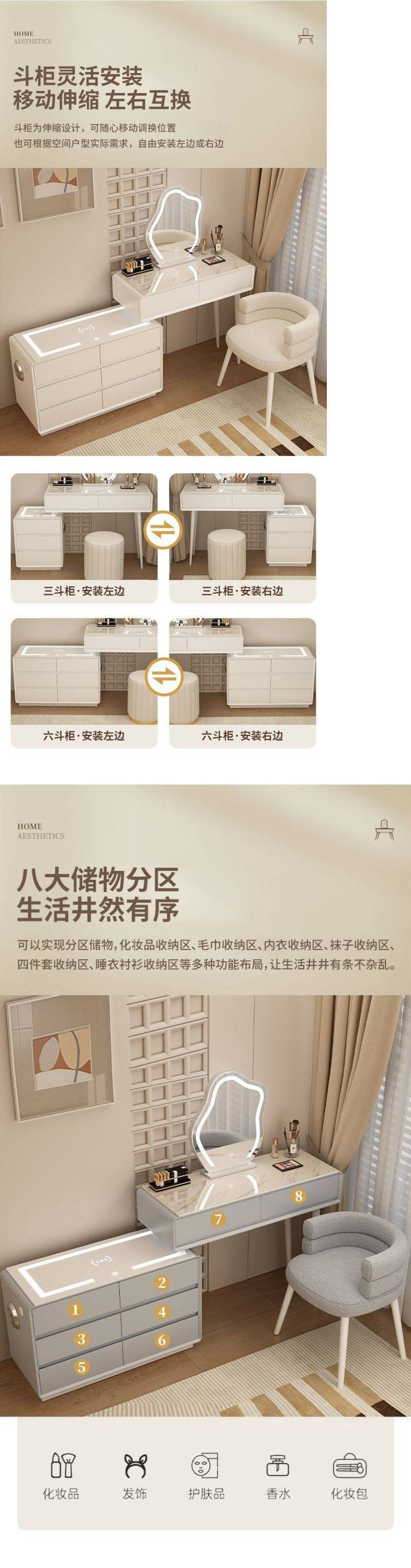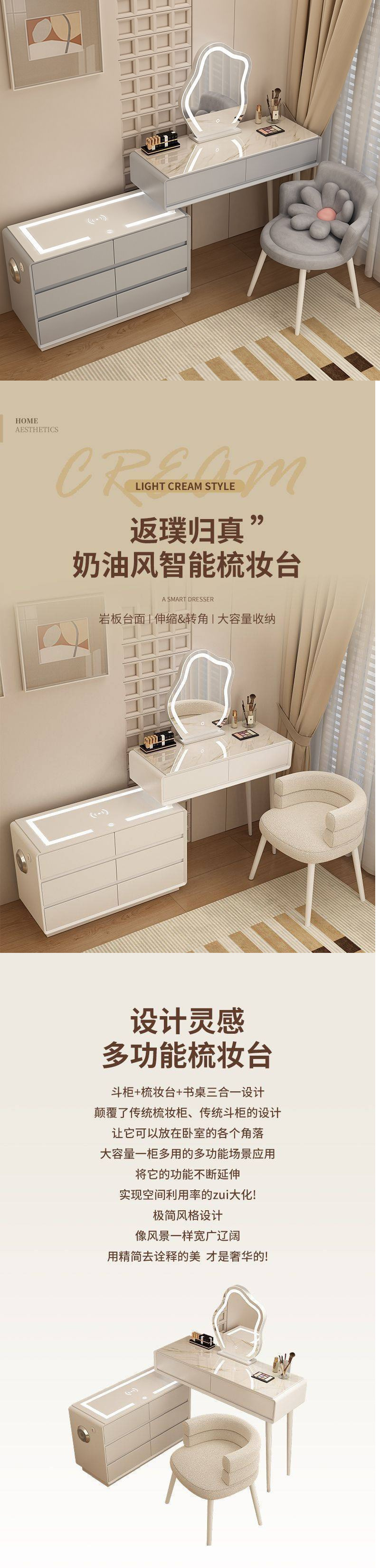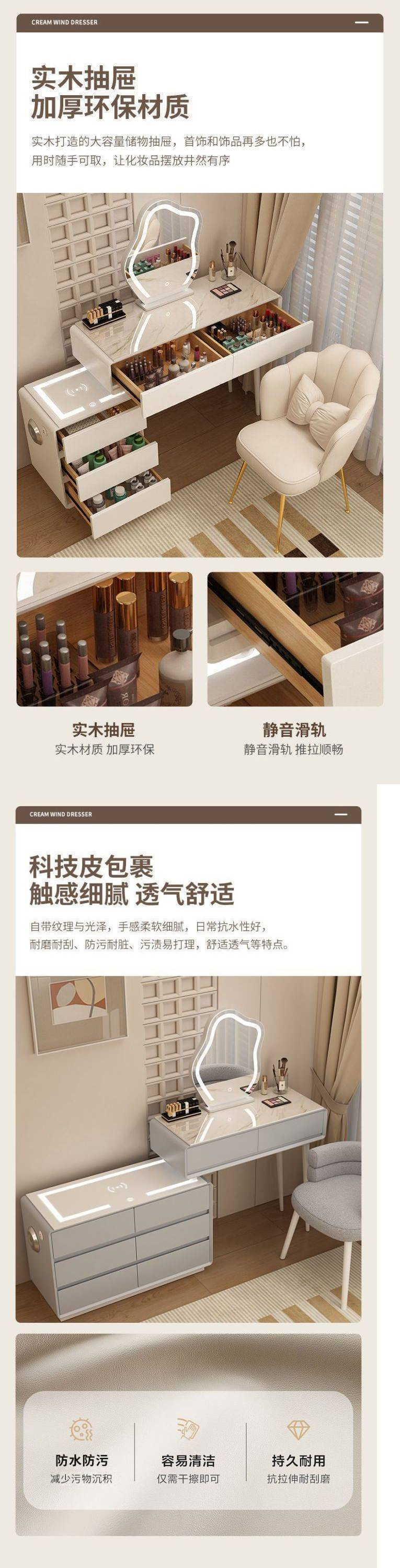 크림 스타일 침실 드레싱 테이블 단단한 나무 바위 보드 지능형 현대 간단한 메이크업 테이블 새로운 스타일 드레싱 테이블