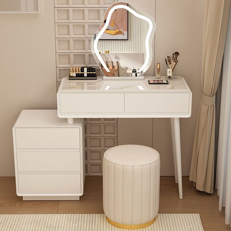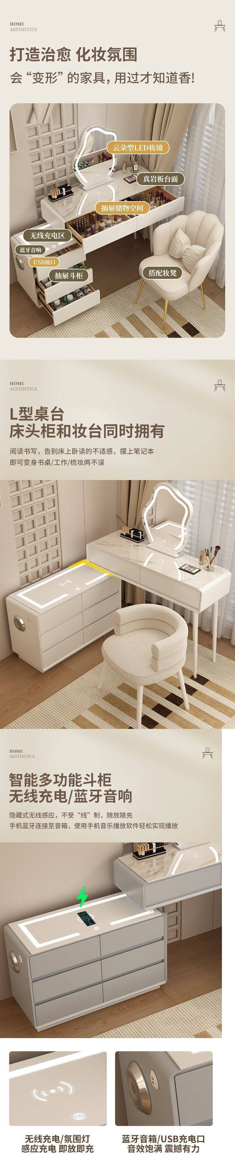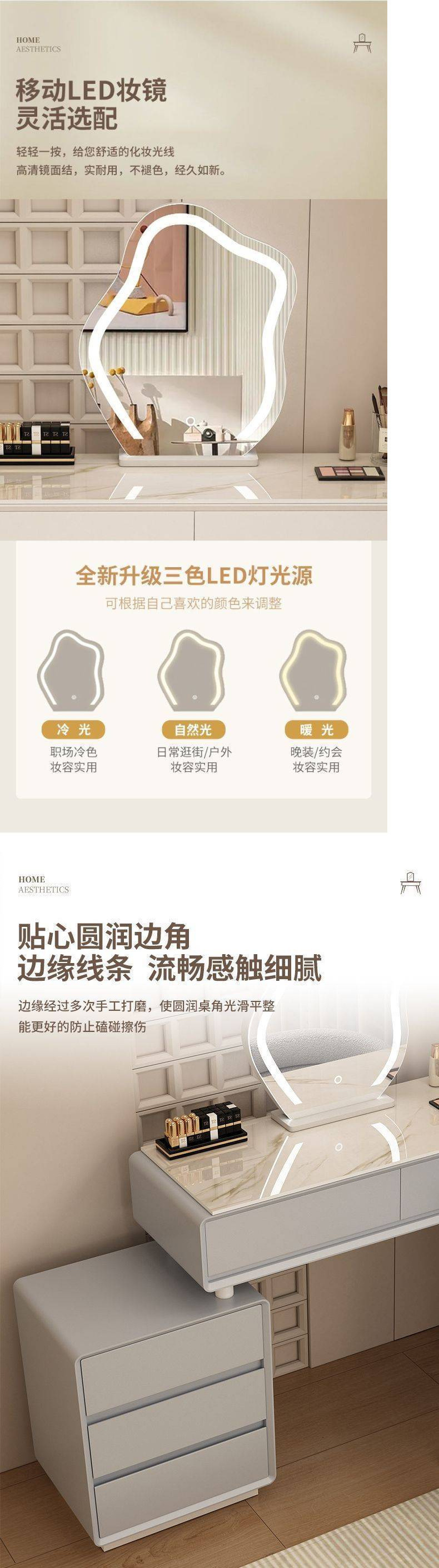 크림 스타일 침실 드레싱 테이블 단단한 나무 바위 보드 지능형 현대 간단한 메이크업 테이블 새로운 스타일 드레싱 테이블