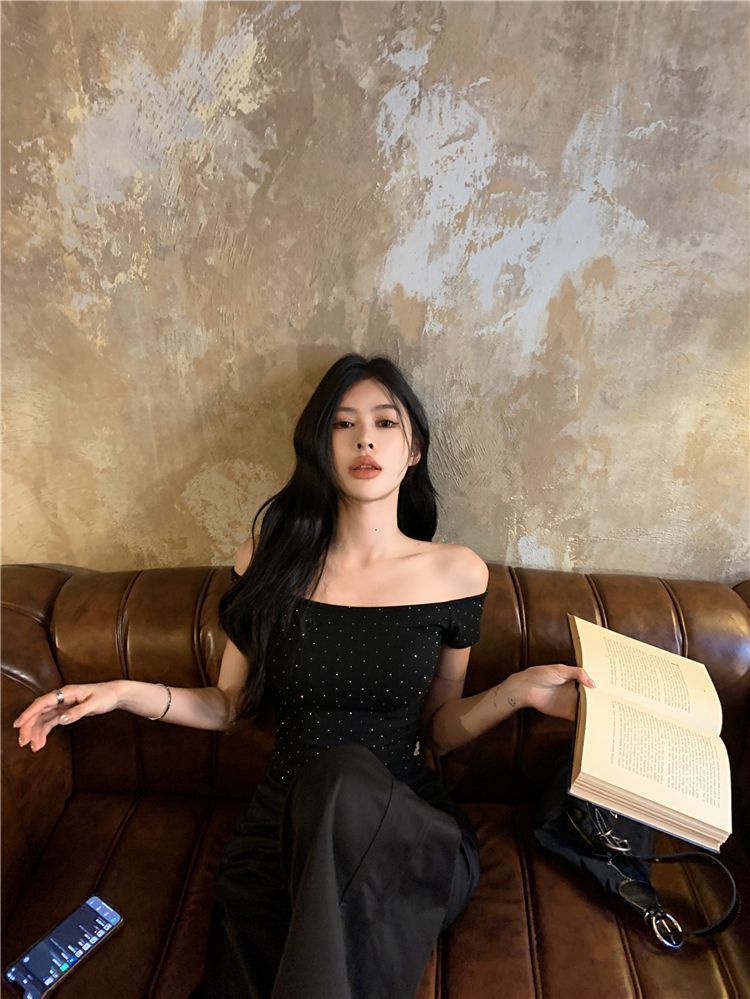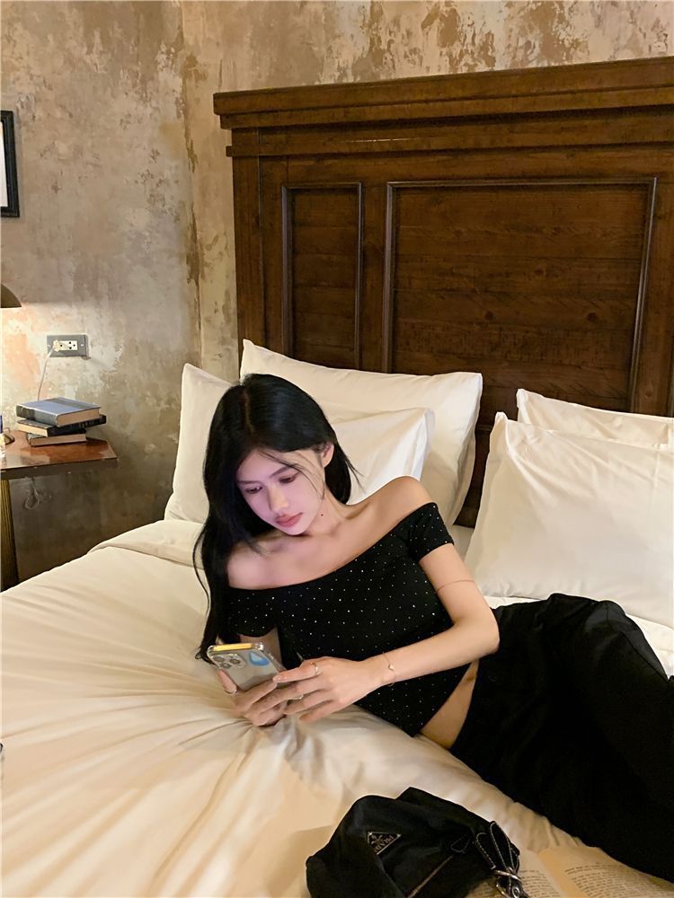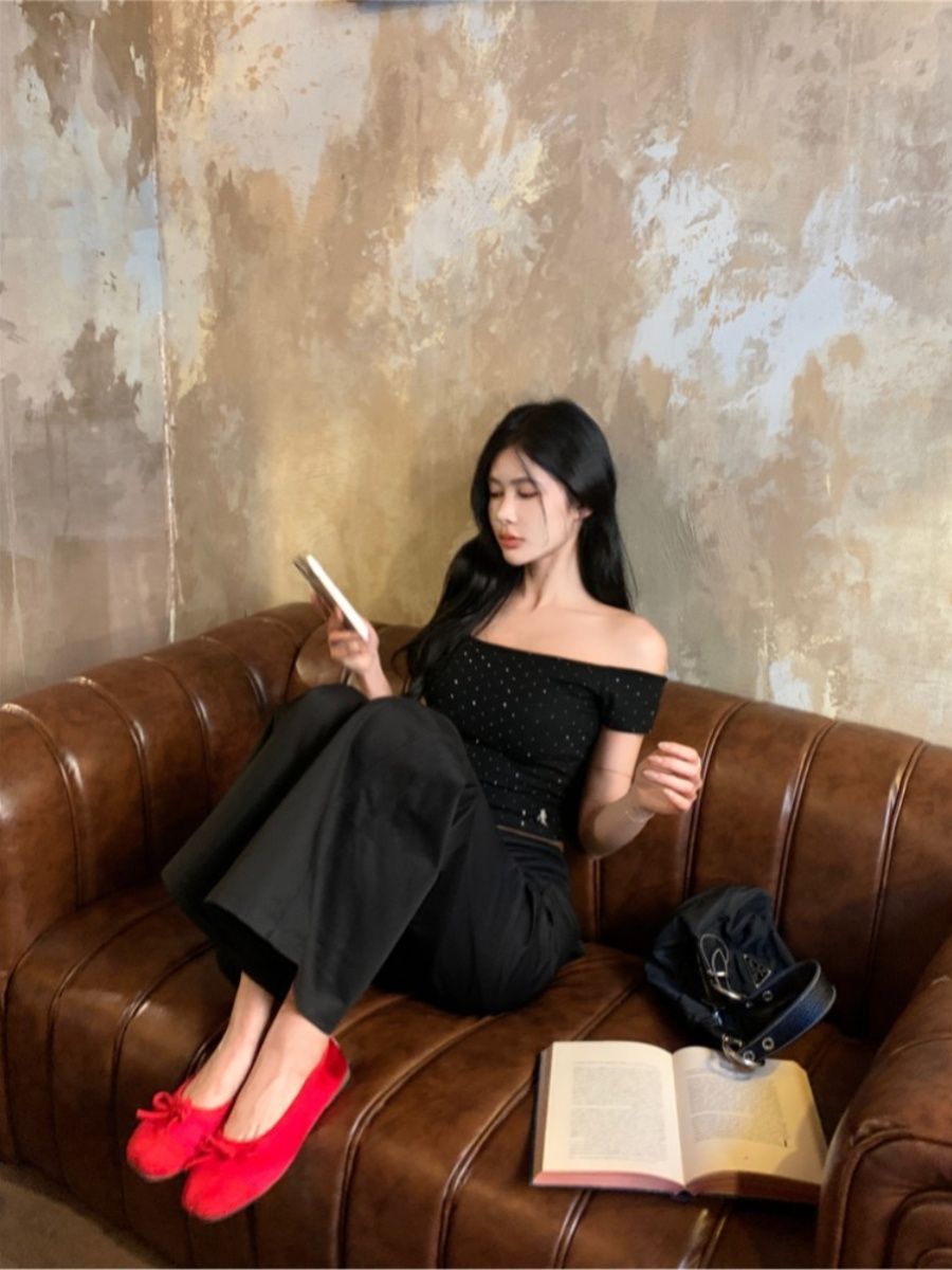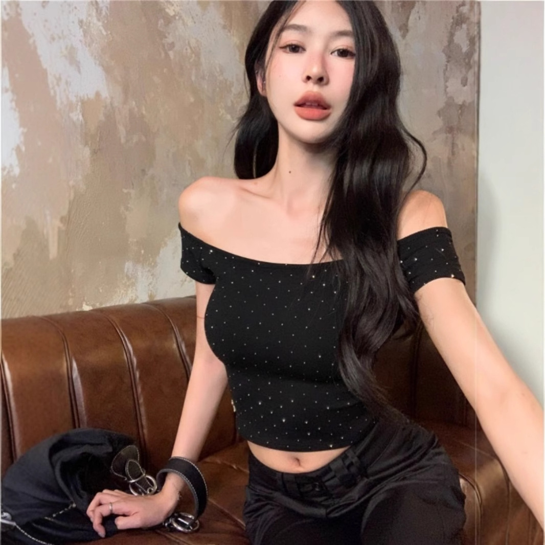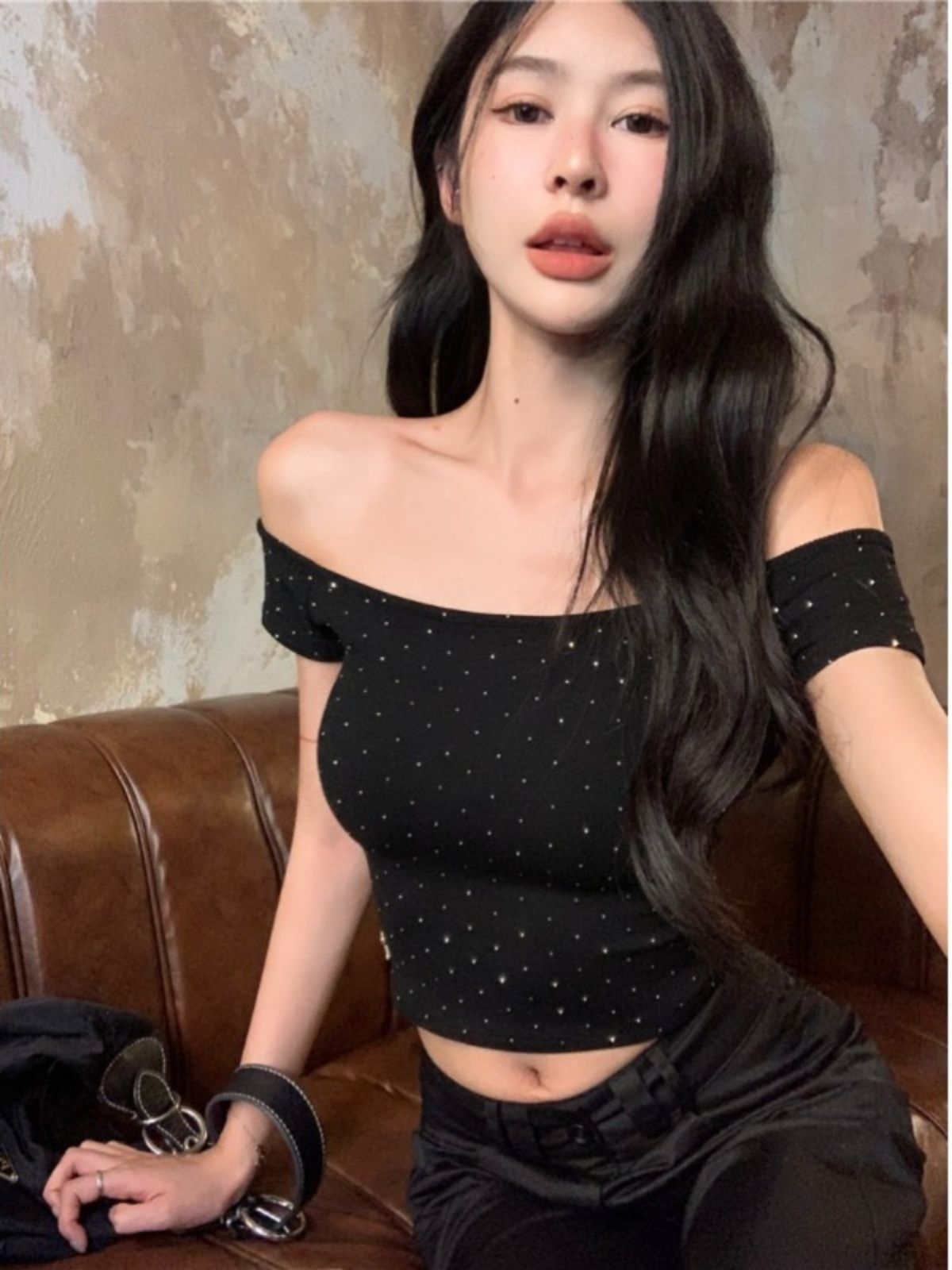 섹시한 스파이스 소녀 어깨 칼라 폴로 도트 반팔 티셔츠 여성 여름 새로운 슬림 핏 슬리밍 웨스턴 스타일 올 매치 탑스토어 가기