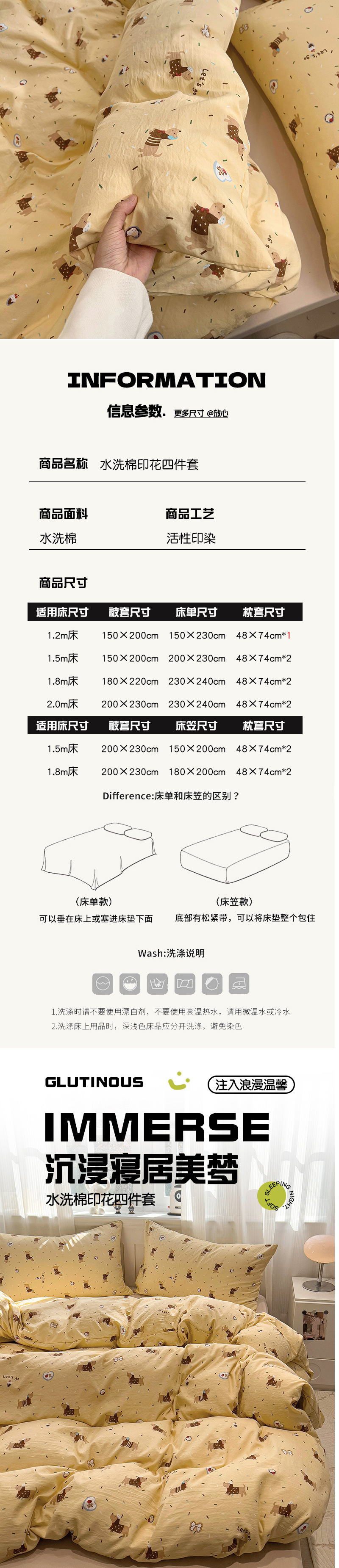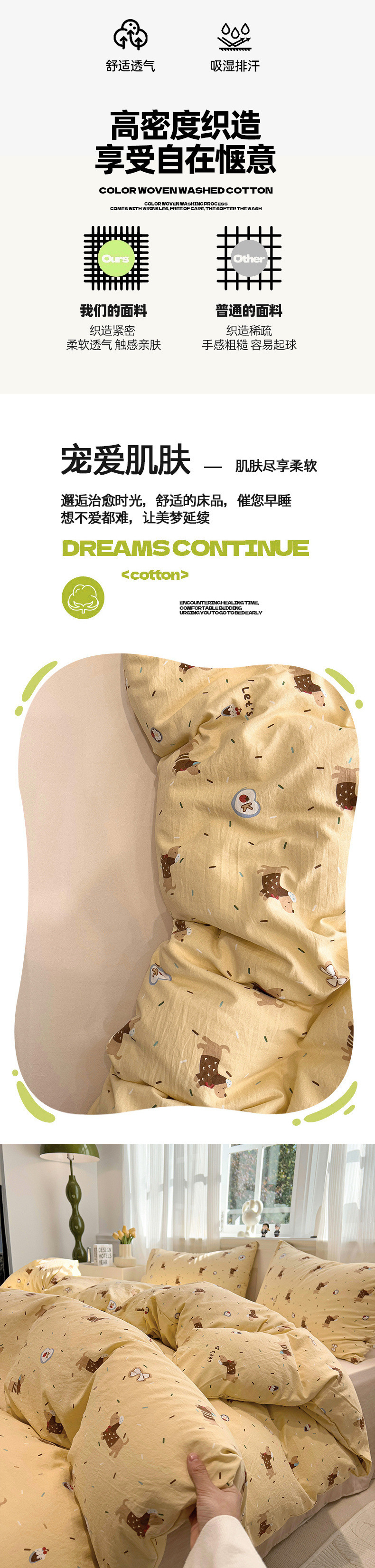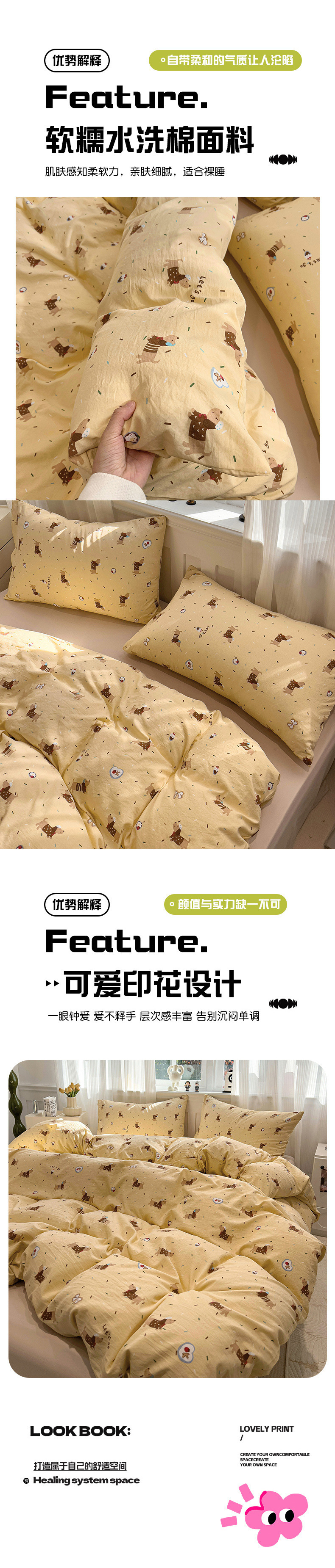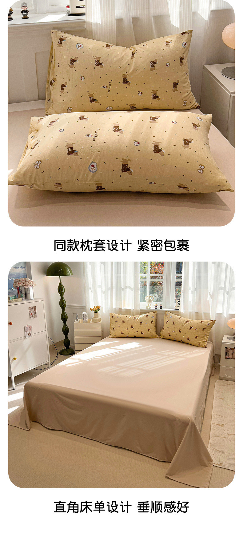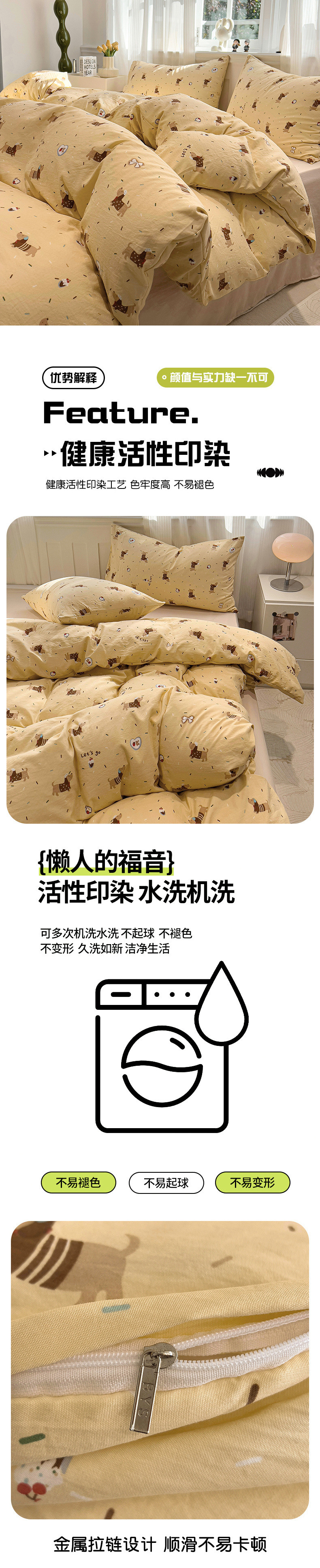 씻은 코튼 이불 커버 4 종 세트 슈퍼 소프트 퀼트 커버 귀여운 만화 개 침대 3 종 세트 학생 기숙사 침대스토어 가기
