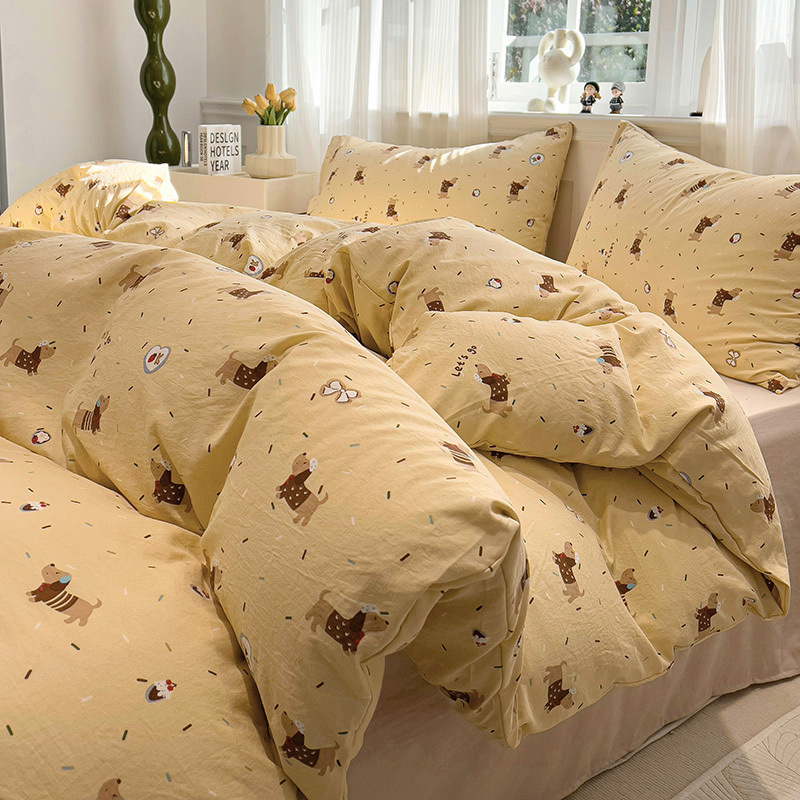 씻은 코튼 이불 커버 4 종 세트 슈퍼 소프트 퀼트 커버 귀여운 만화 개 침대 3 종 세트 학생 기숙사 침대