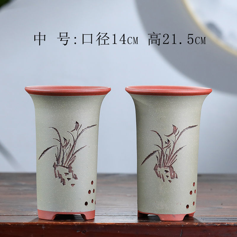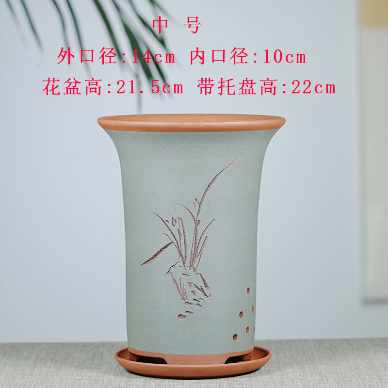 특별 통관 보라색 모래 난초 꽃 냄비 큰 도매 간단한 홈 데스크탑 cymbidium 여름 난초 녹색 세라믹 꽃 냄비