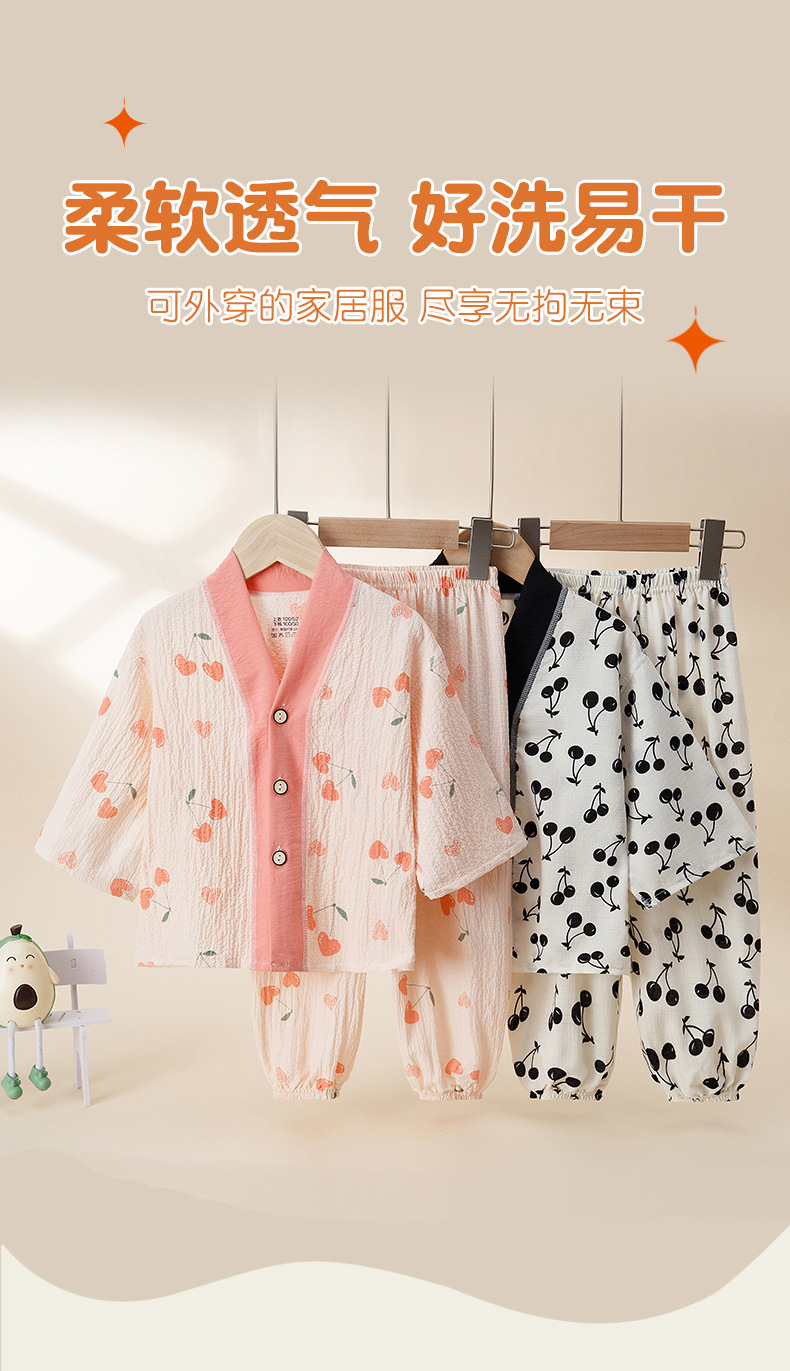 어린이 부드러운 통기성 구름 면화 홈 옷 소녀 버튼 카디건 V-넥 바지 스님 옷 파자마 세트스토어 가기