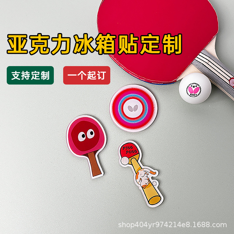 만화 패턴 탁구 라켓 아크릴 냉장고 만화 탁구 패턴 개인화 된 문화 창조적 인 냉장고 자석스토어 가기
