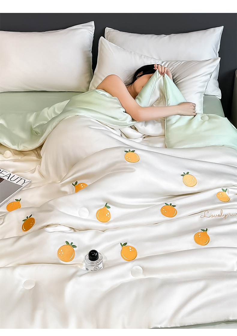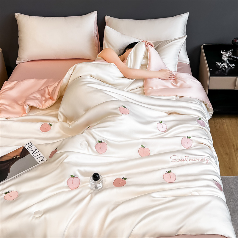점주가 추천하는 여름용 아이스 실크 4종 세트, 고급스러운 여름 인기 워시블 여름 이불, 침대 시트, 기숙사 침구스토어 가기