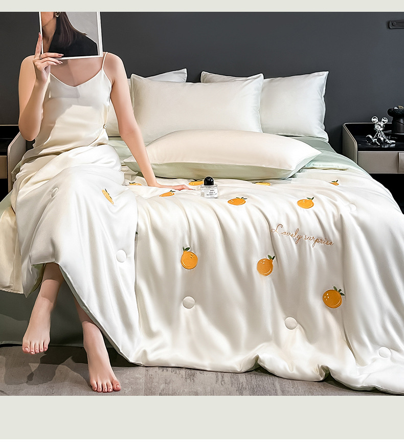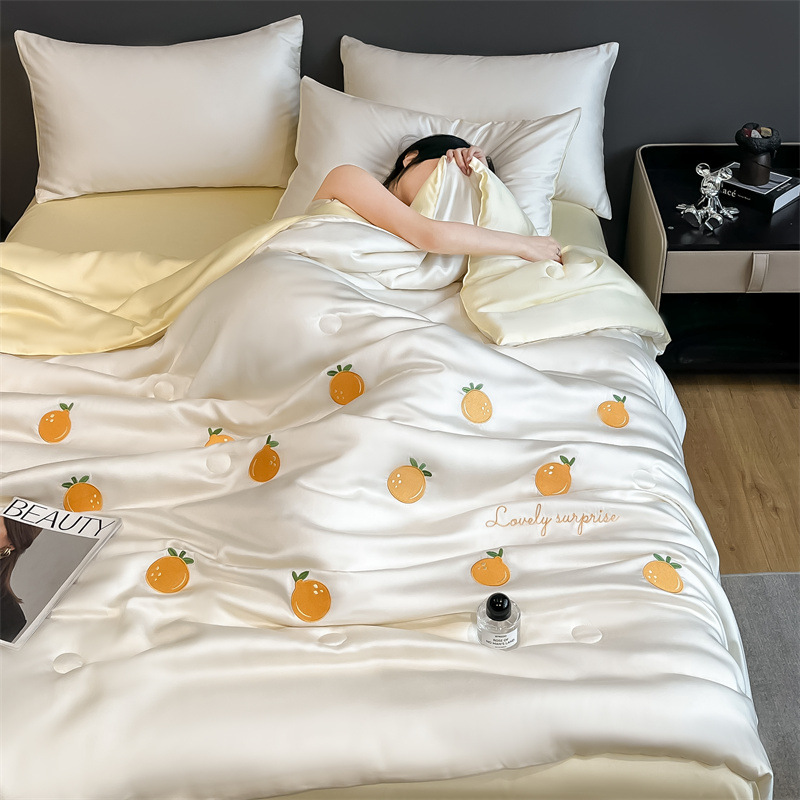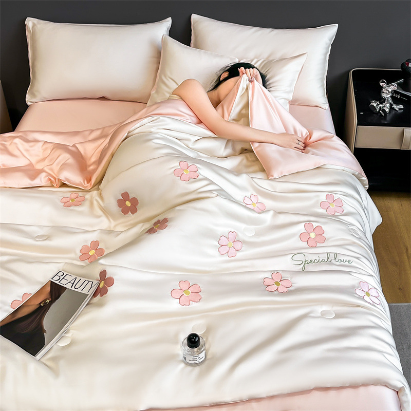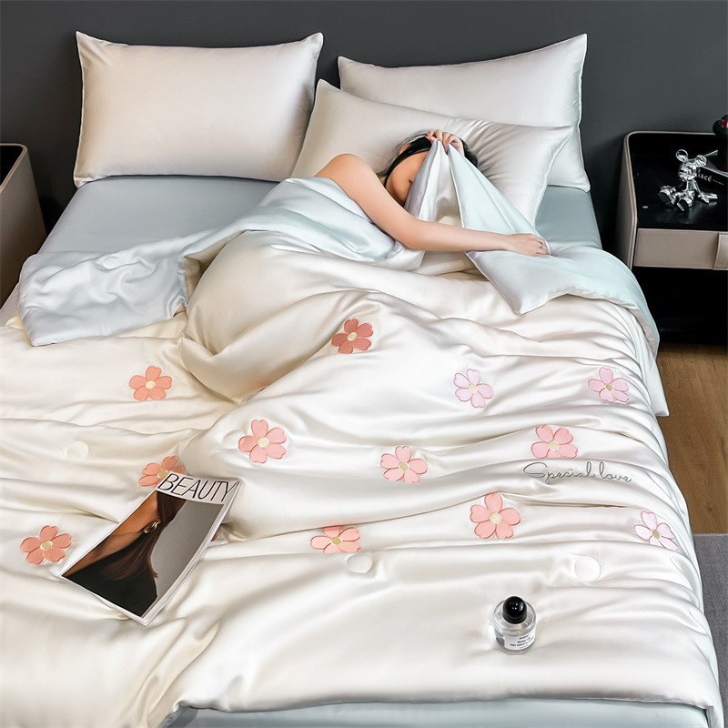 점주가 추천하는 여름용 아이스 실크 4종 세트, 고급스러운 여름 인기 워시블 여름 이불, 침대 시트, 기숙사 침구