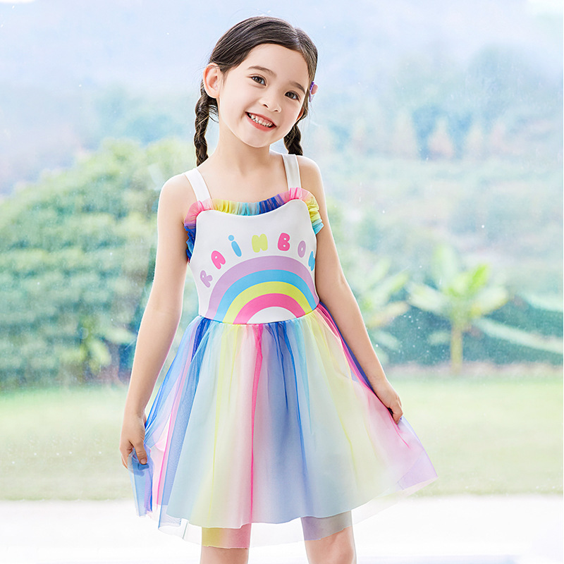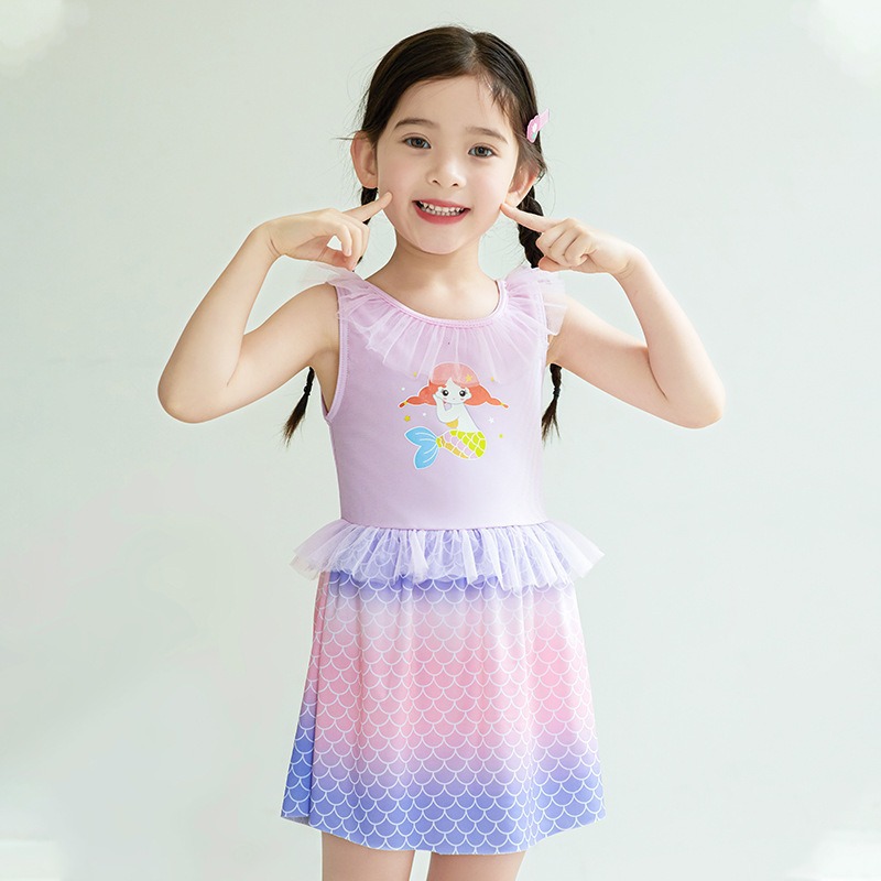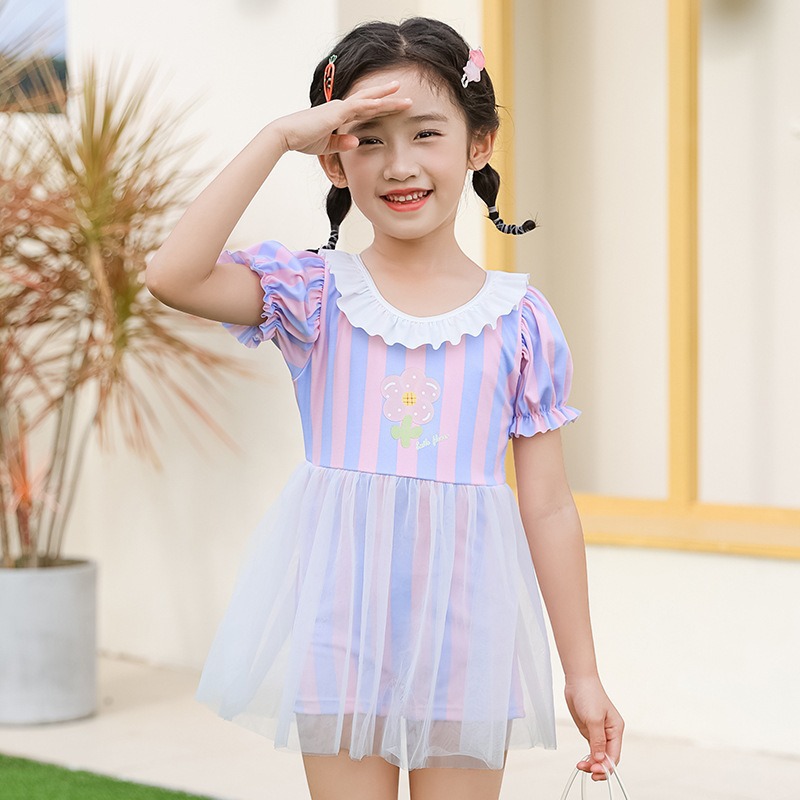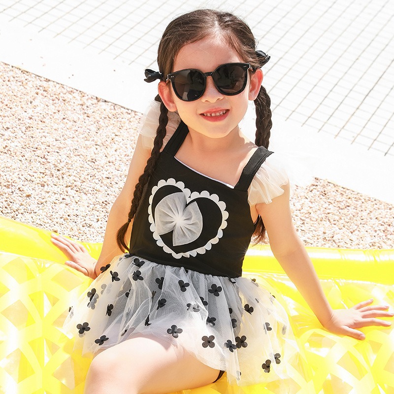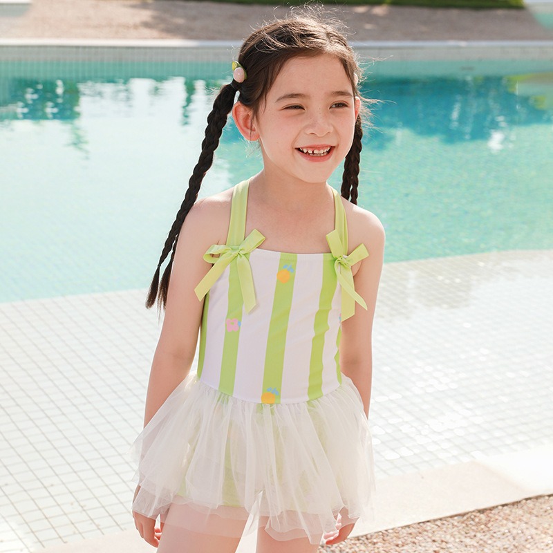 어린이 스플릿 수영복 중형 어린이 여름 달콤한 귀여운 투투 원피스 메쉬 레이스 보우 페어리 수영 원피스스토어 가기