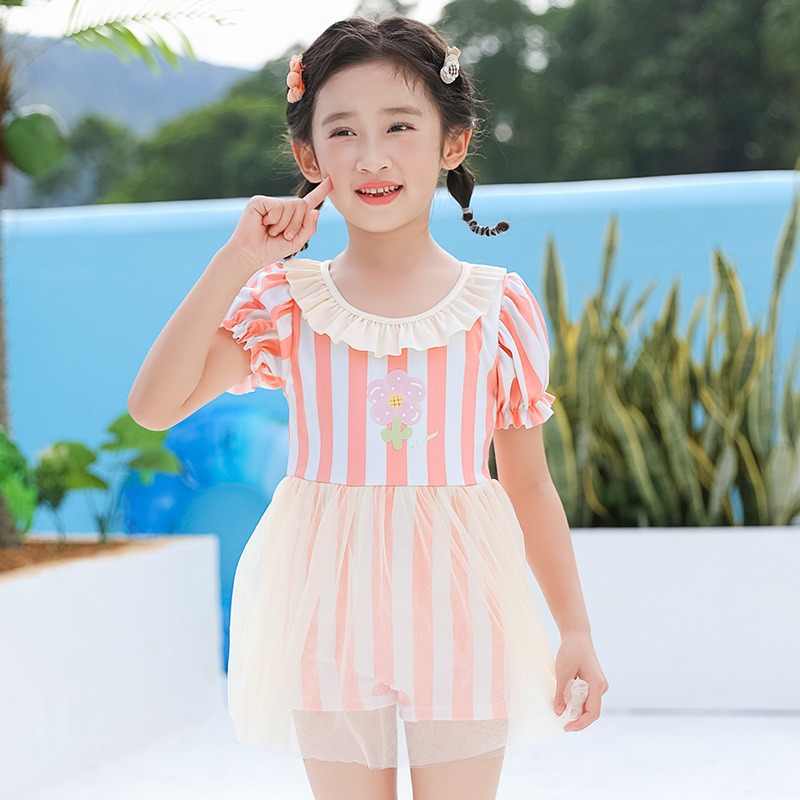 어린이 스플릿 수영복 중형 어린이 여름 달콤한 귀여운 투투 원피스 메쉬 레이스 보우 페어리 수영 원피스