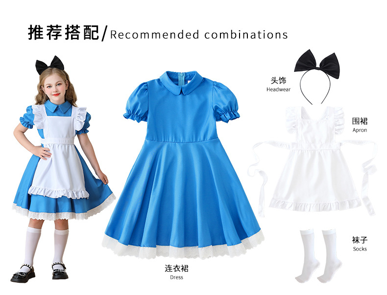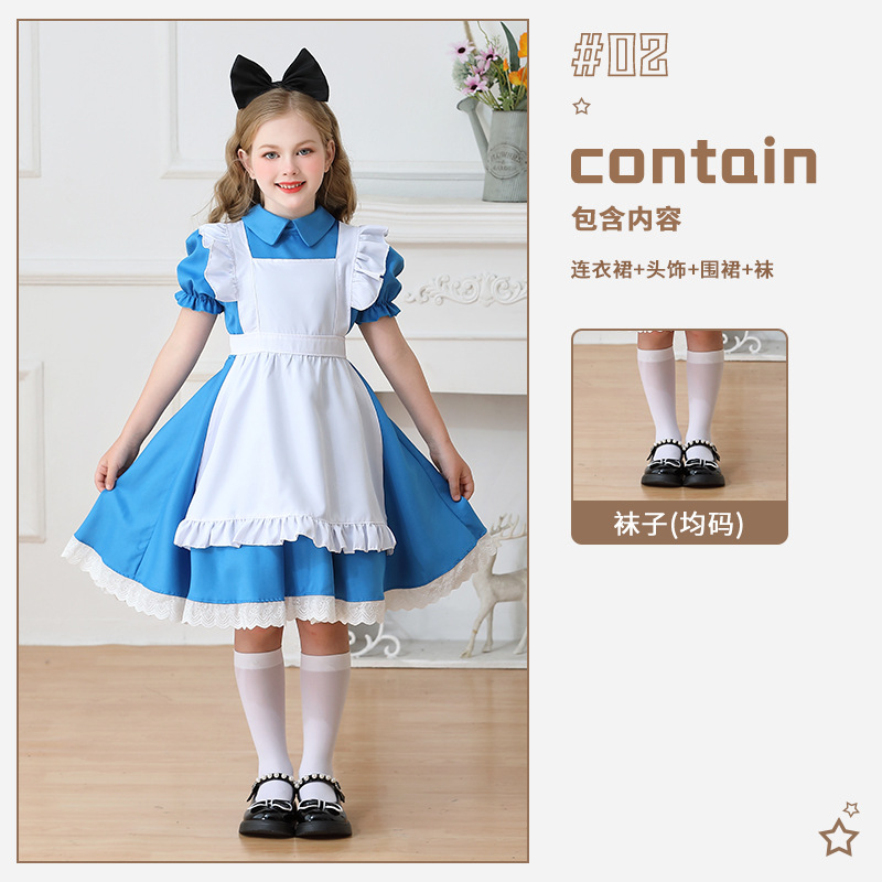 앨리스 어린이 공연 의상 메이드 의상 할로윈 소녀 공주 목가적 인 스타일 로리타 드레스 cos 의상