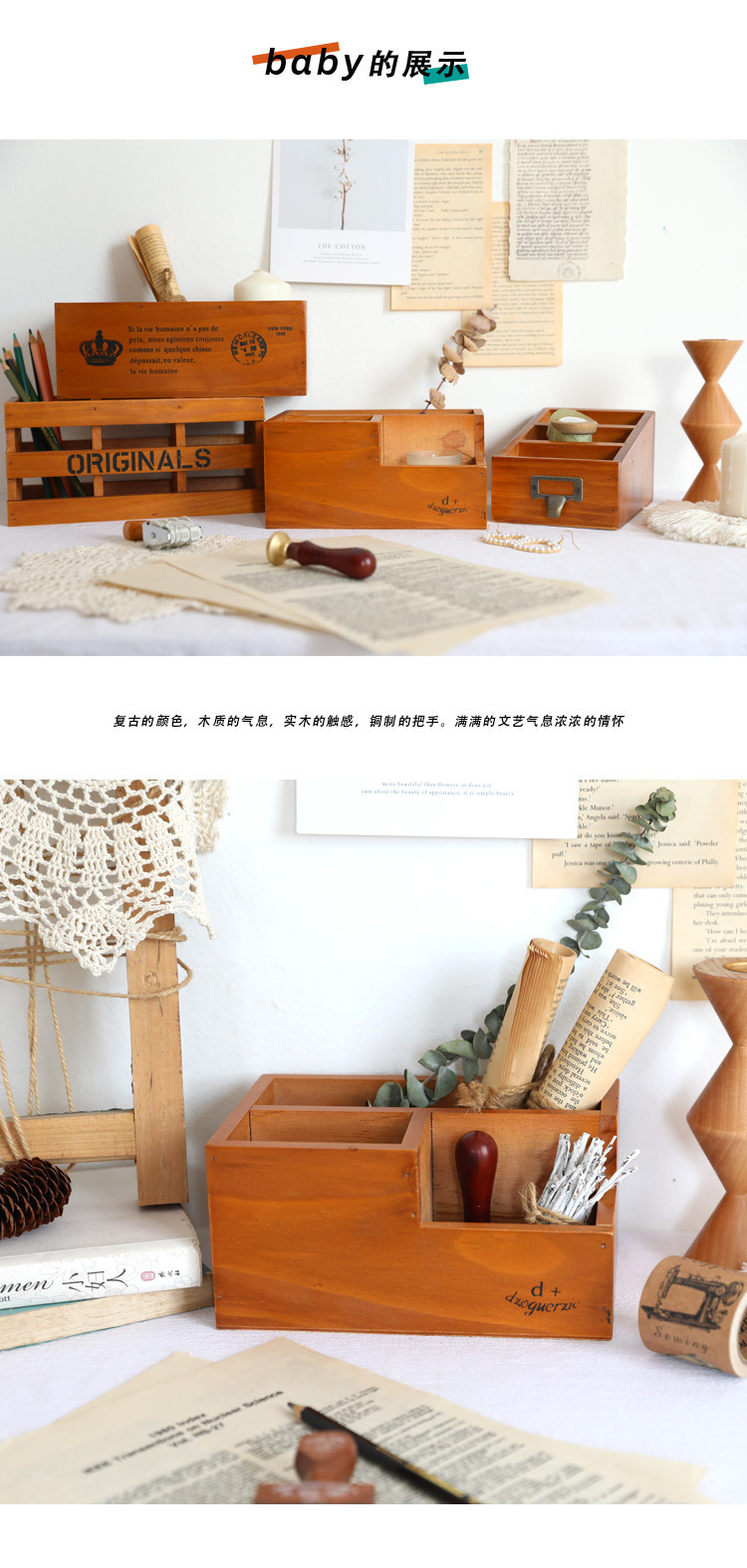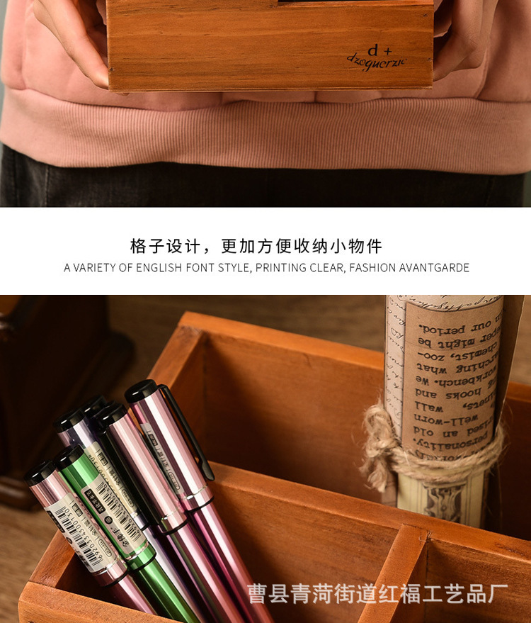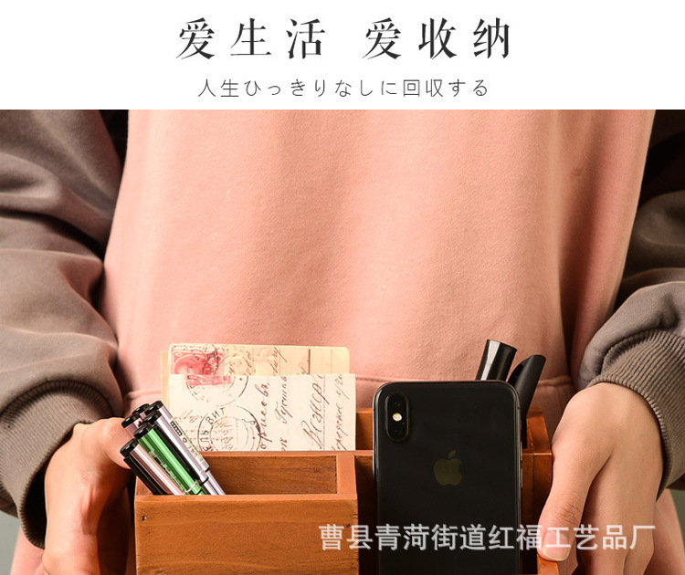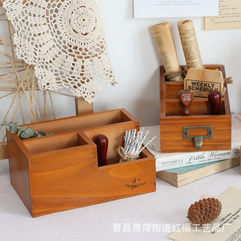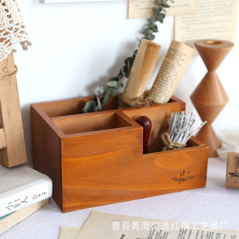 나무 작은 상자 사무실 책상 랙 원격 제어 문구 데스크탑 저장 상자 책상 연필 메이크업 브러시 펜 홀더스토어 가기
