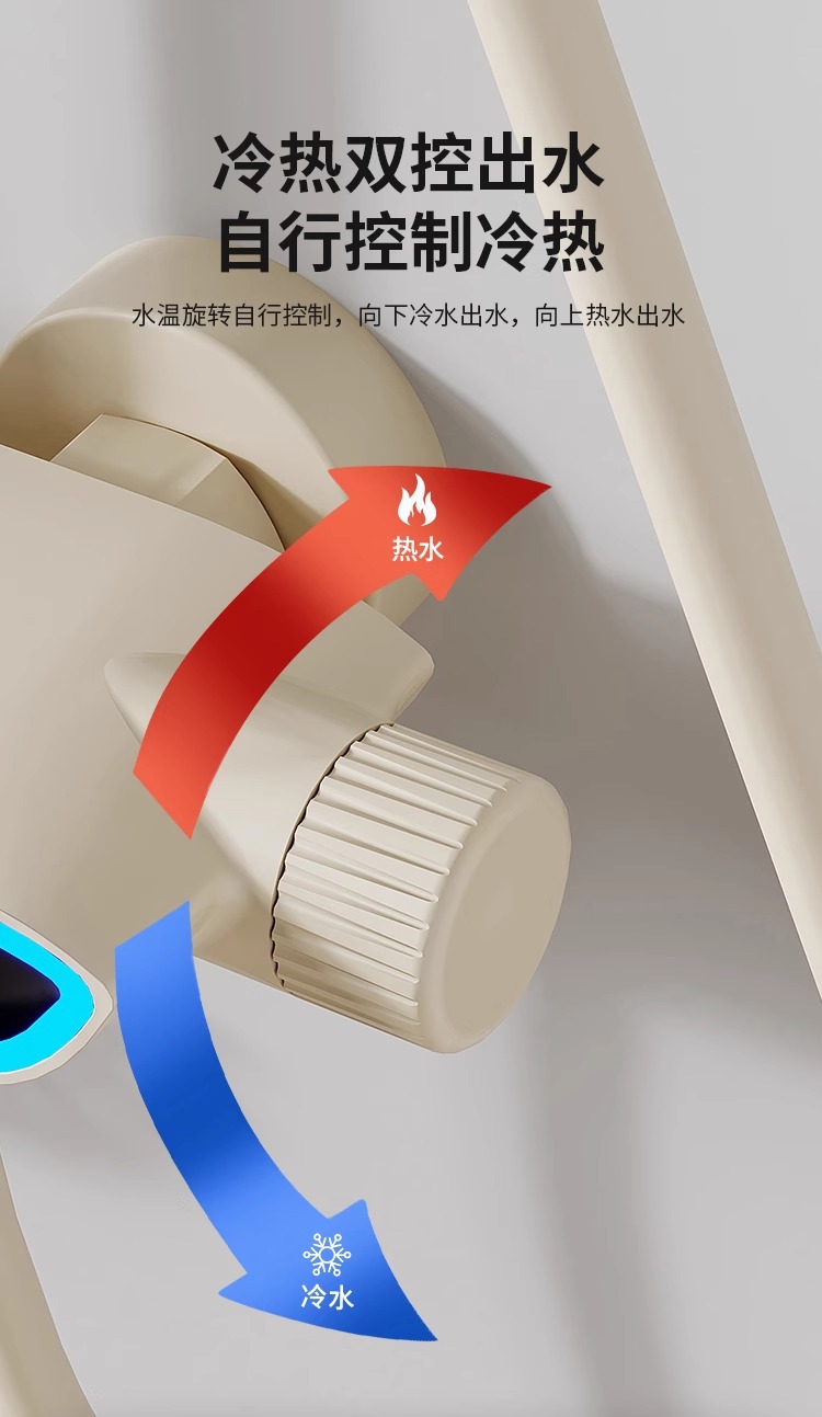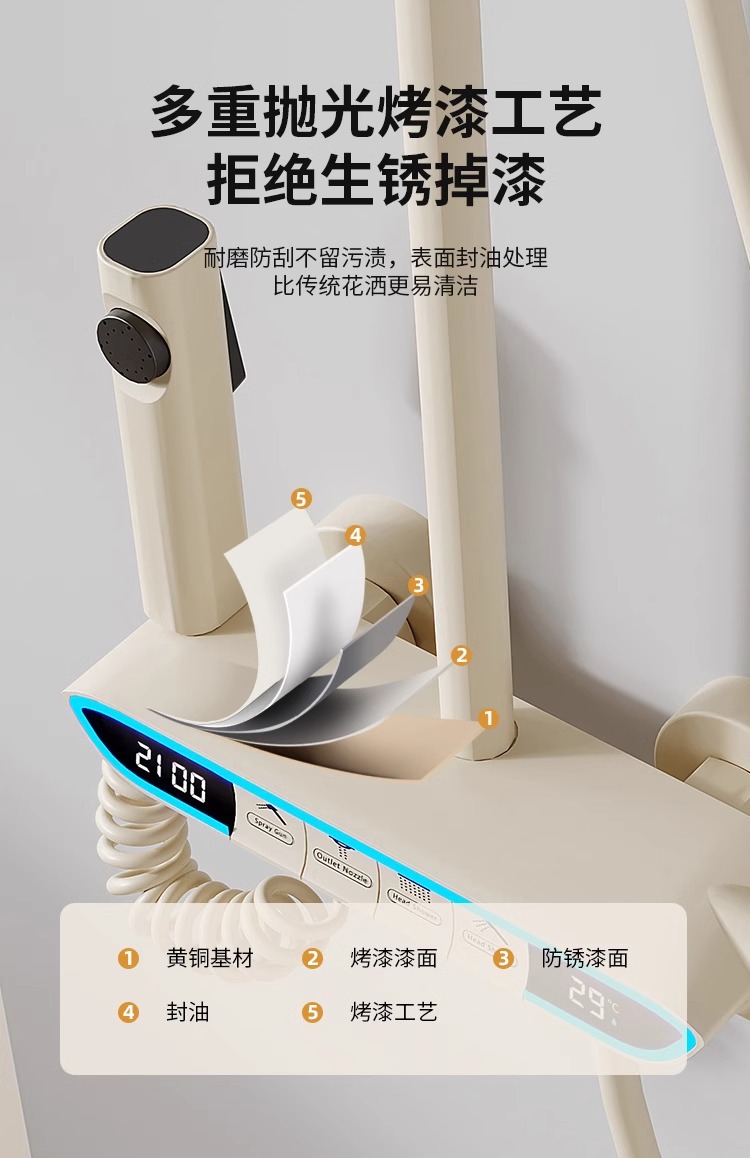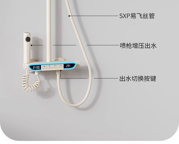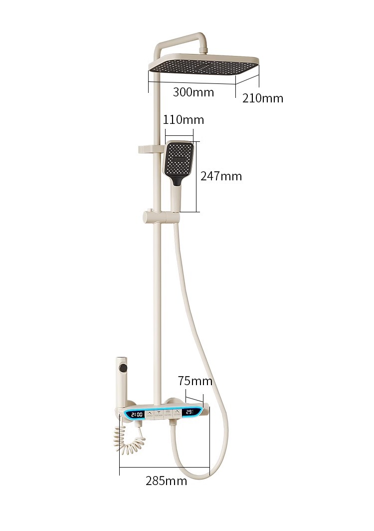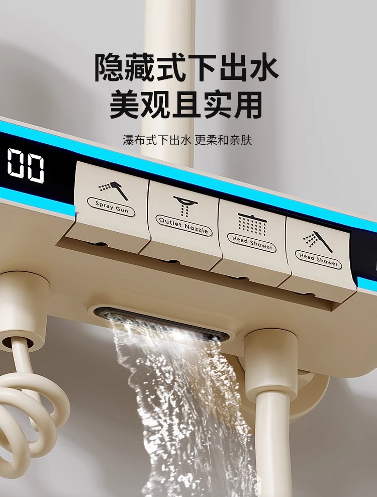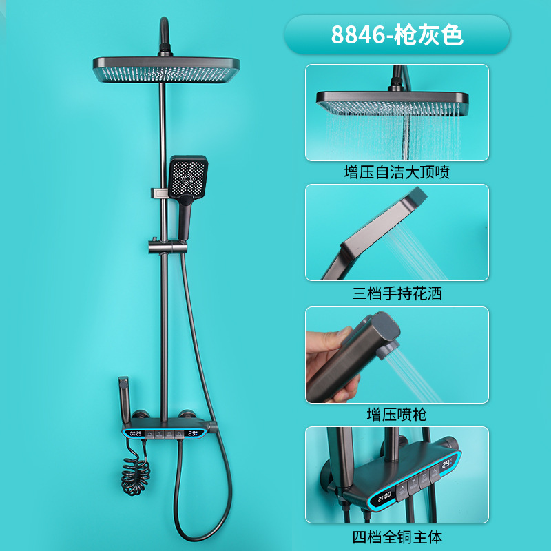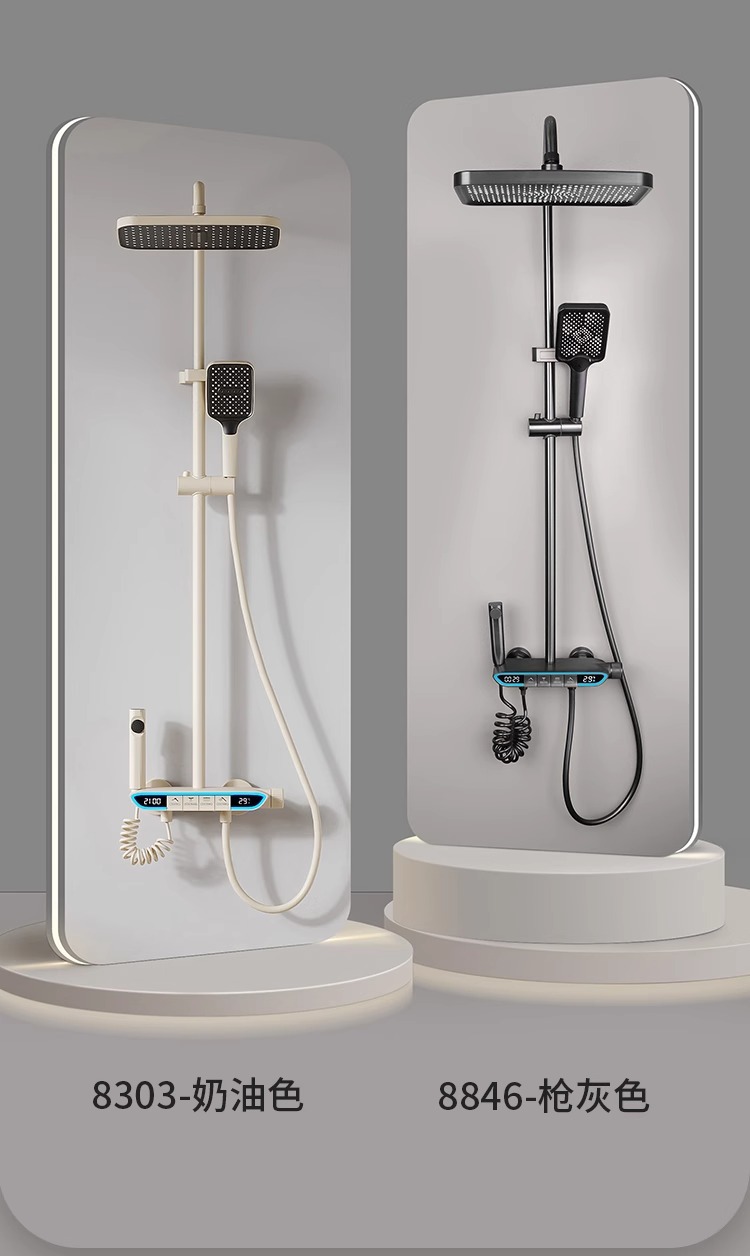 크림 스타일 분위기 램프 흰색 뜨겁고 차가운 디지털 디스플레이 샤워 세트 가정용 피아노 키 비 목욕 총 그레이