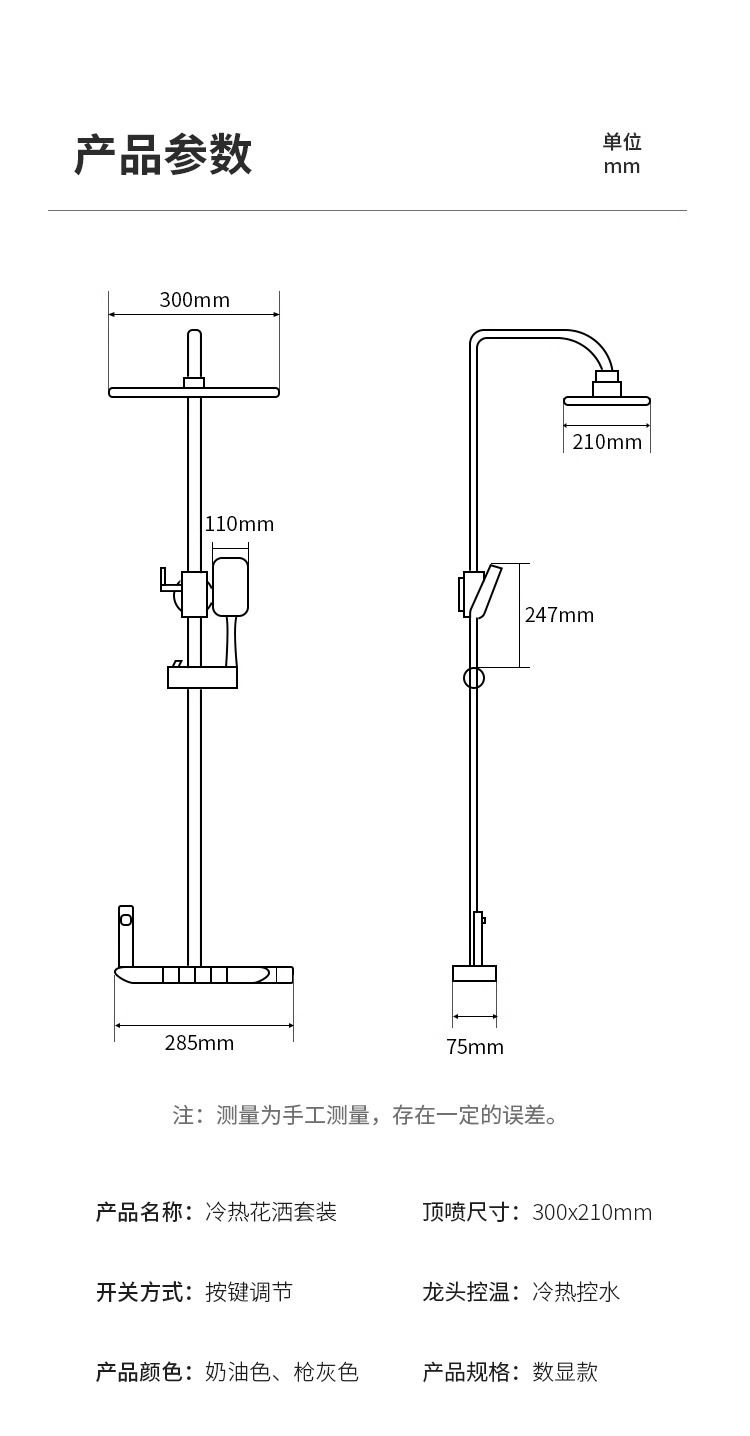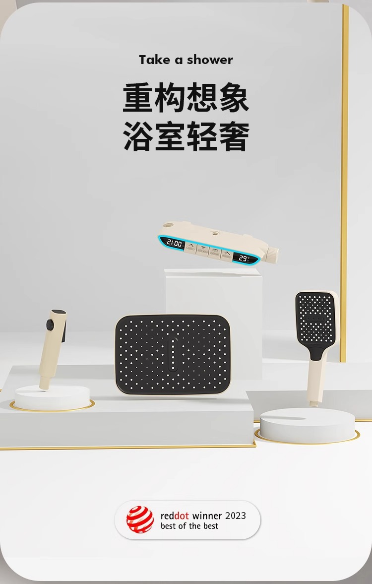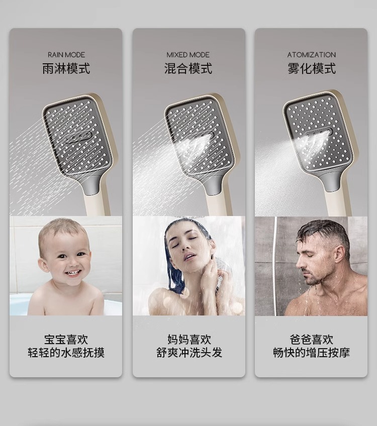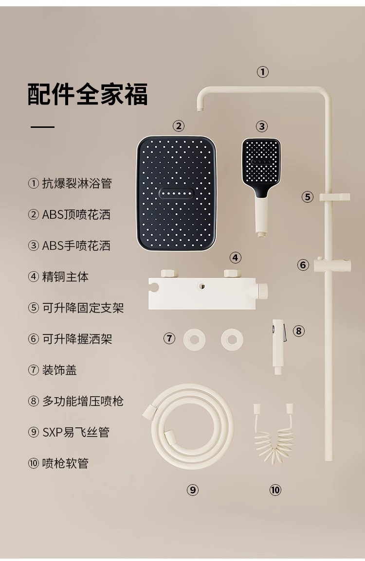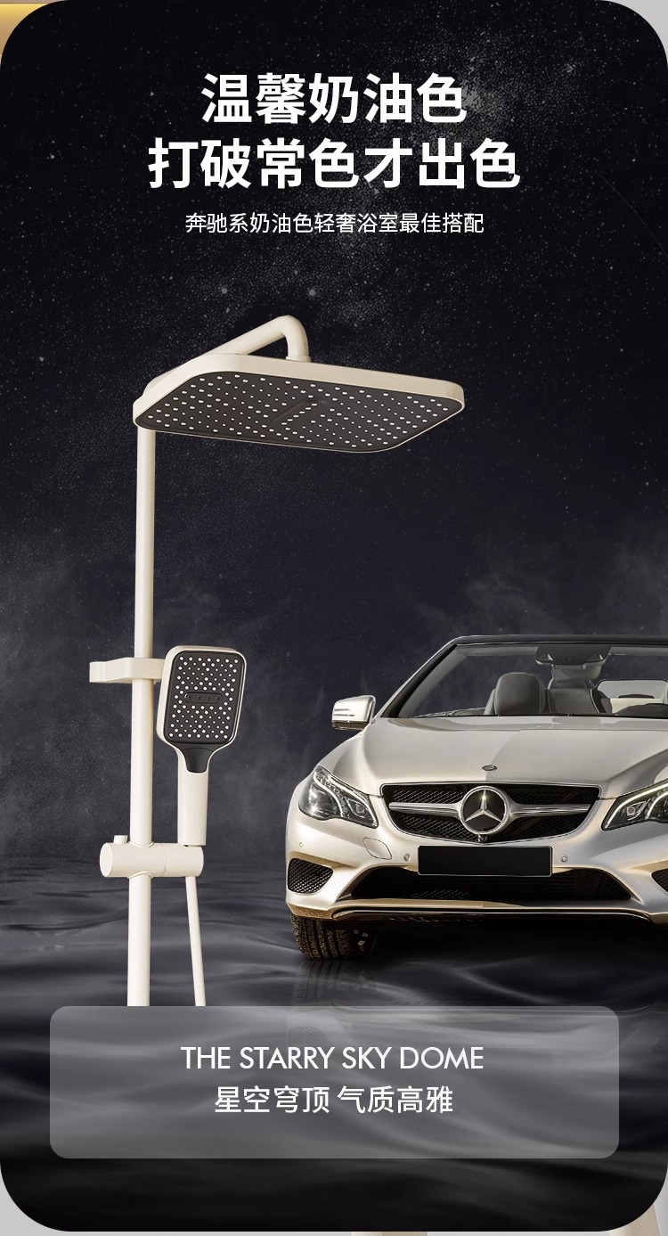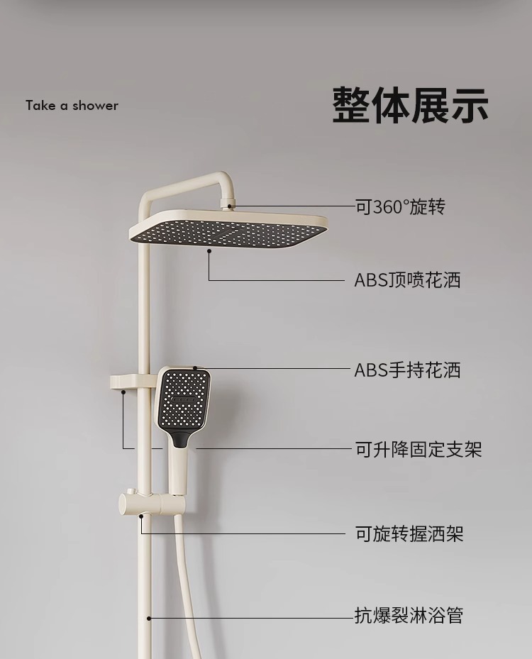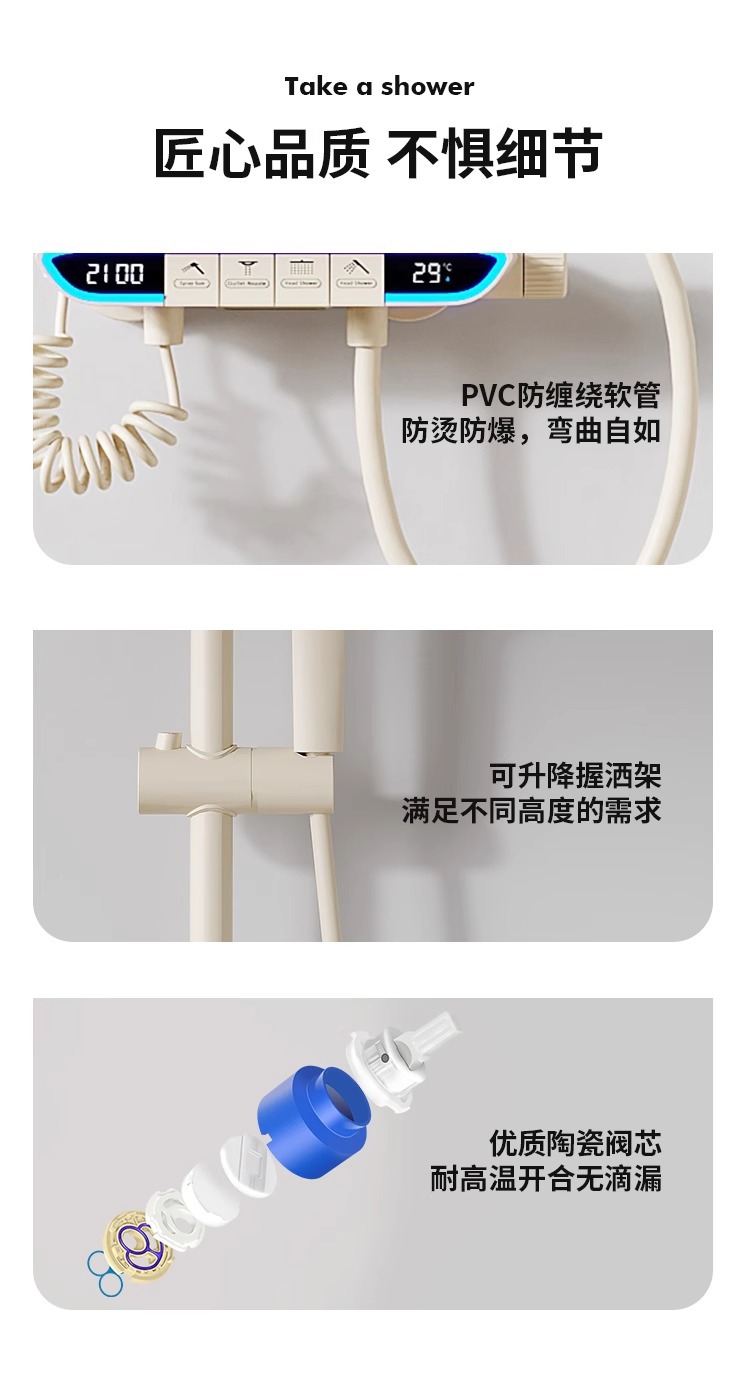 크림 스타일 분위기 램프 흰색 뜨겁고 차가운 디지털 디스플레이 샤워 세트 가정용 피아노 키 비 목욕 총 그레이