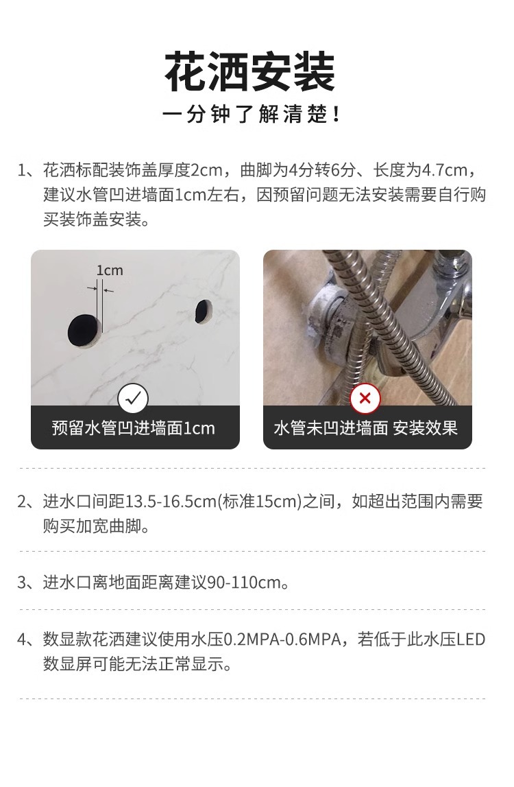 크림 스타일 분위기 램프 흰색 뜨겁고 차가운 디지털 디스플레이 샤워 세트 가정용 피아노 키 비 목욕 총 그레이스토어 가기
