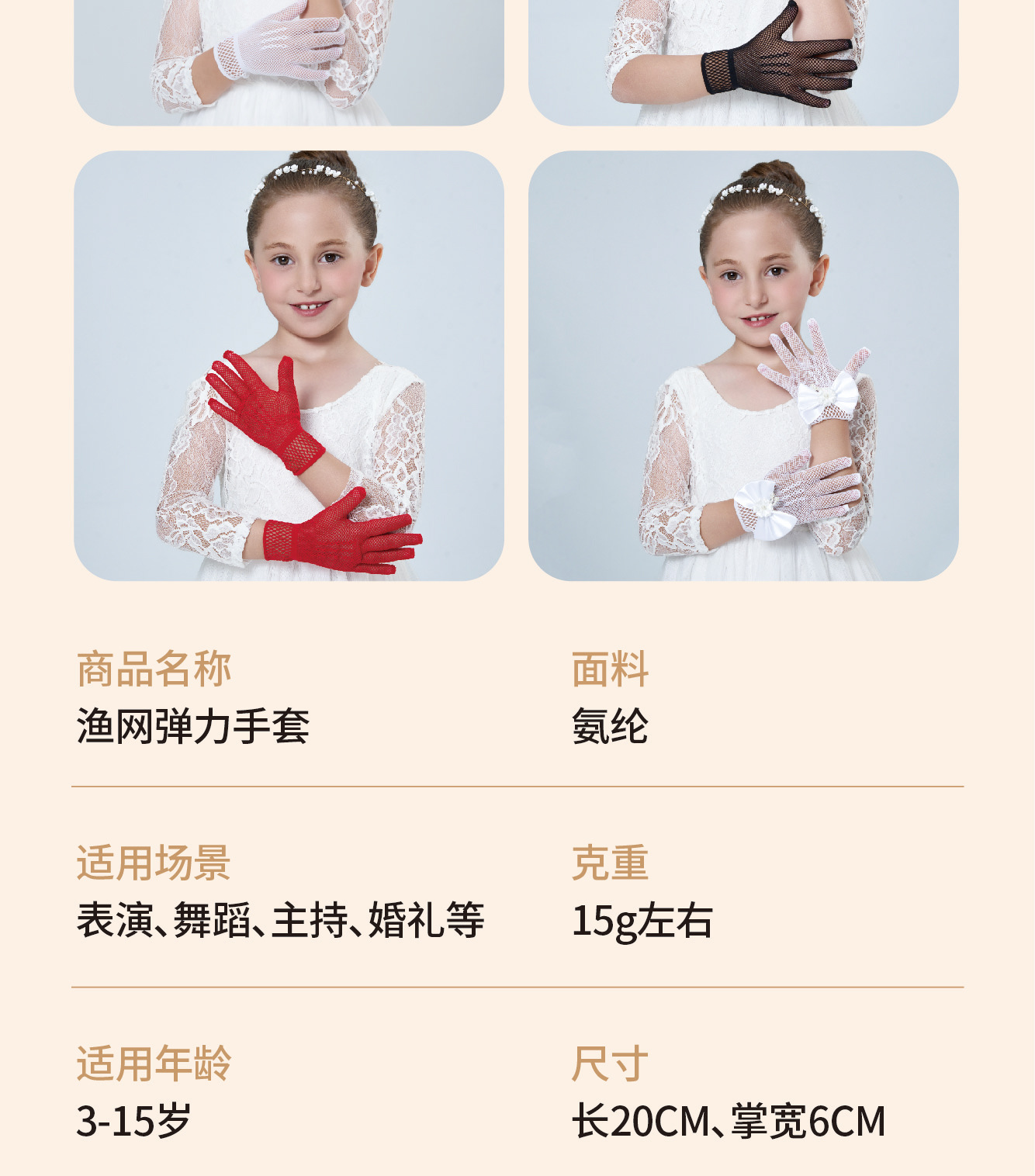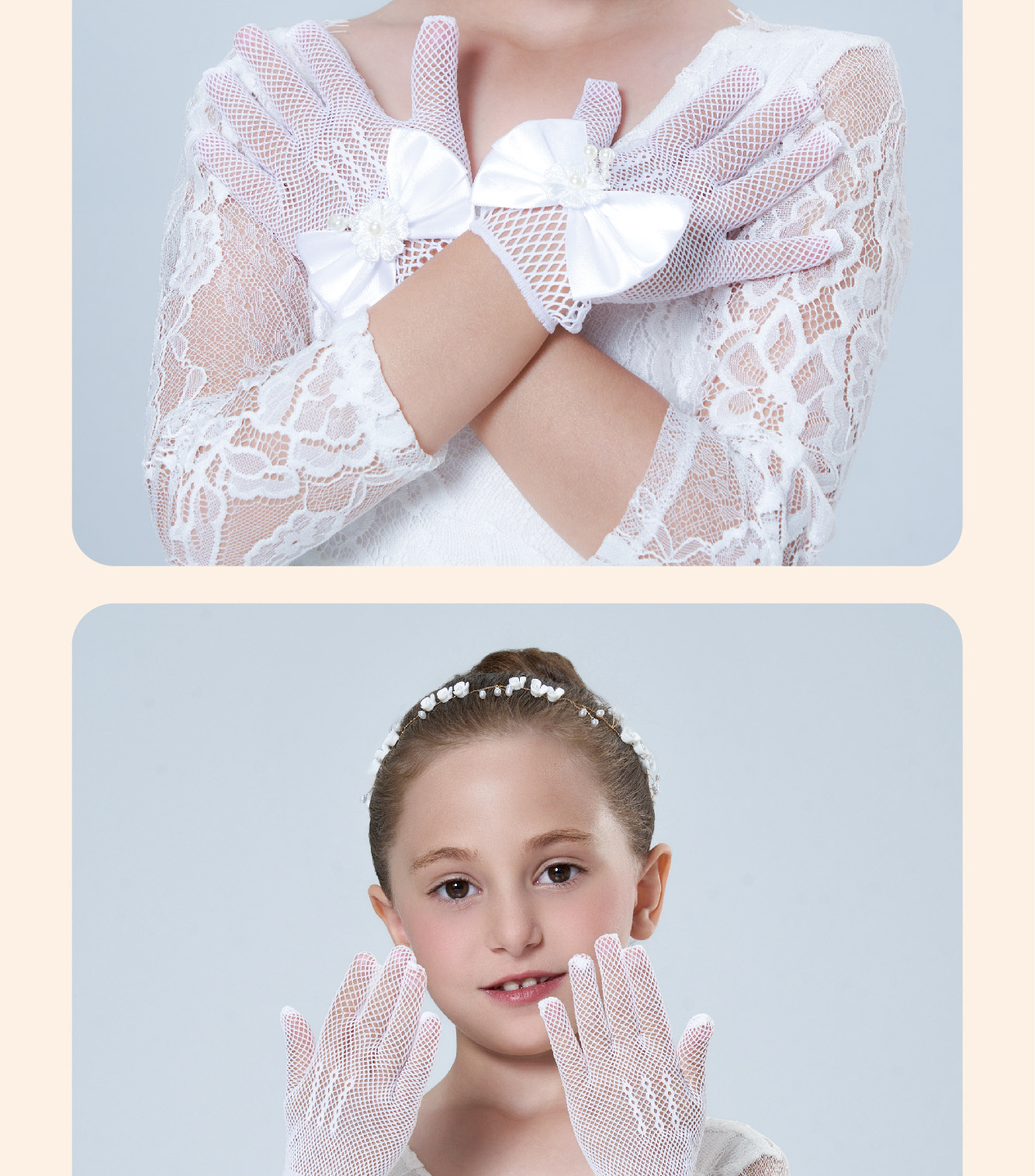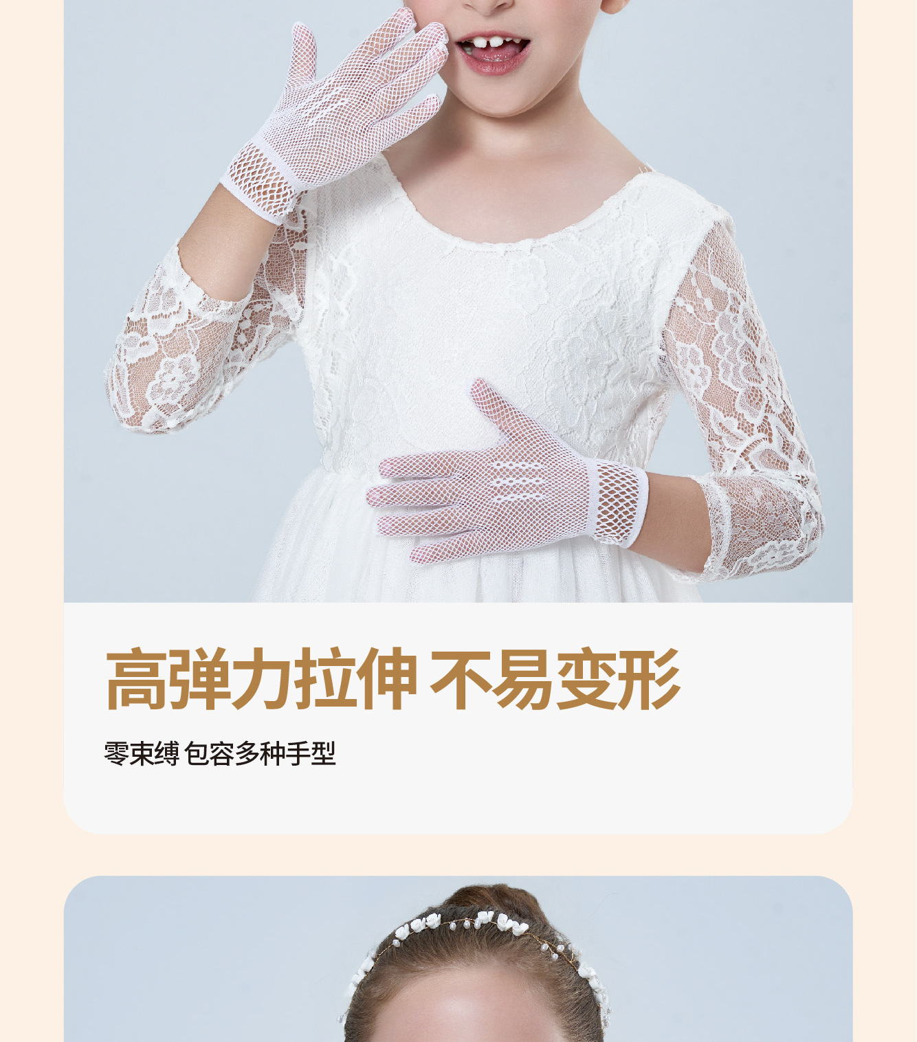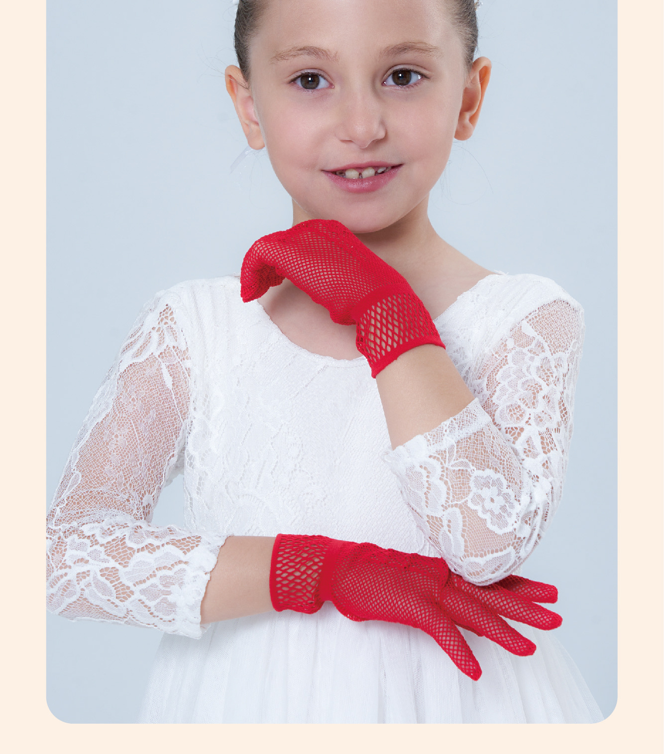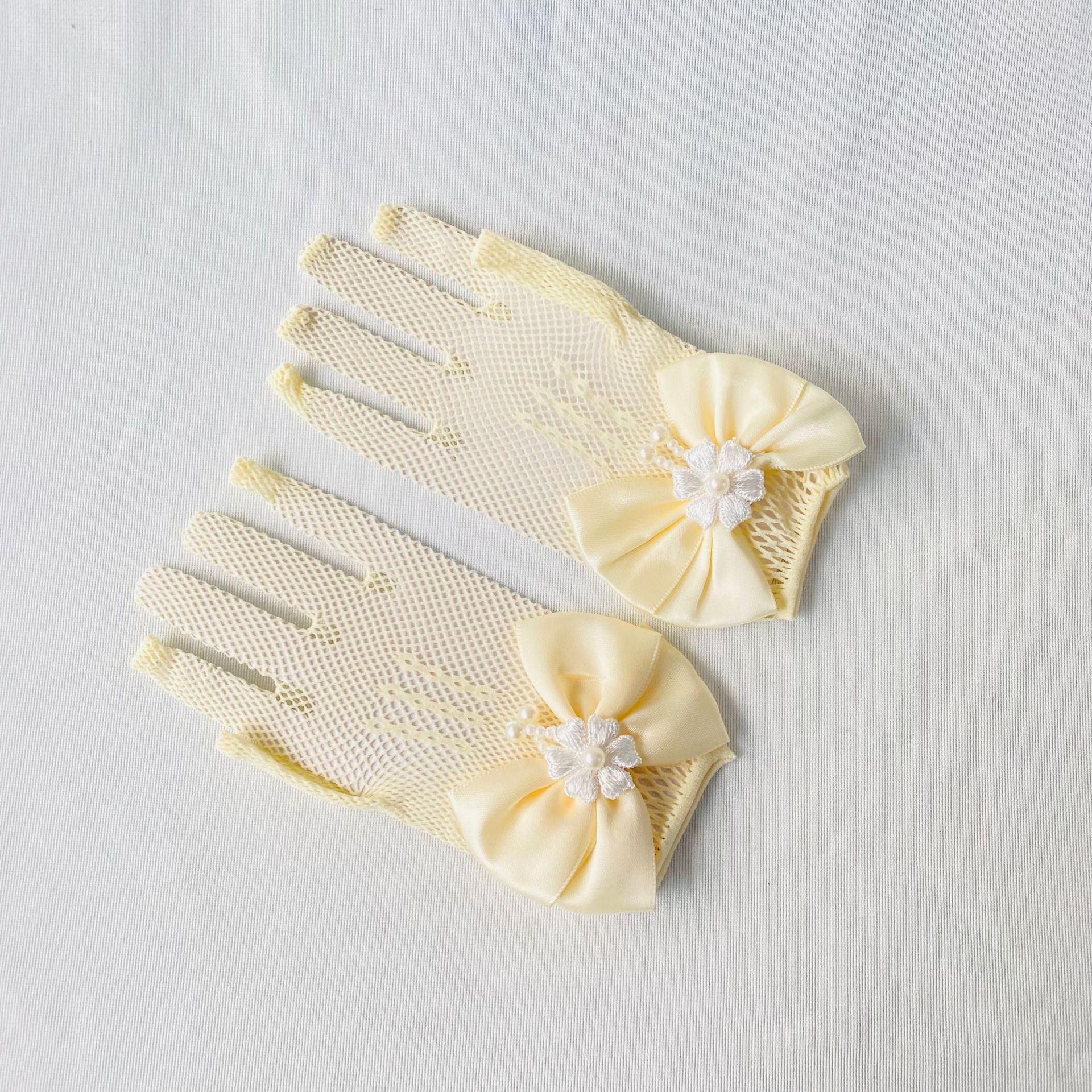 • 어린이용 리본 장식 망사 탄력 장갑 (스킨톤)
