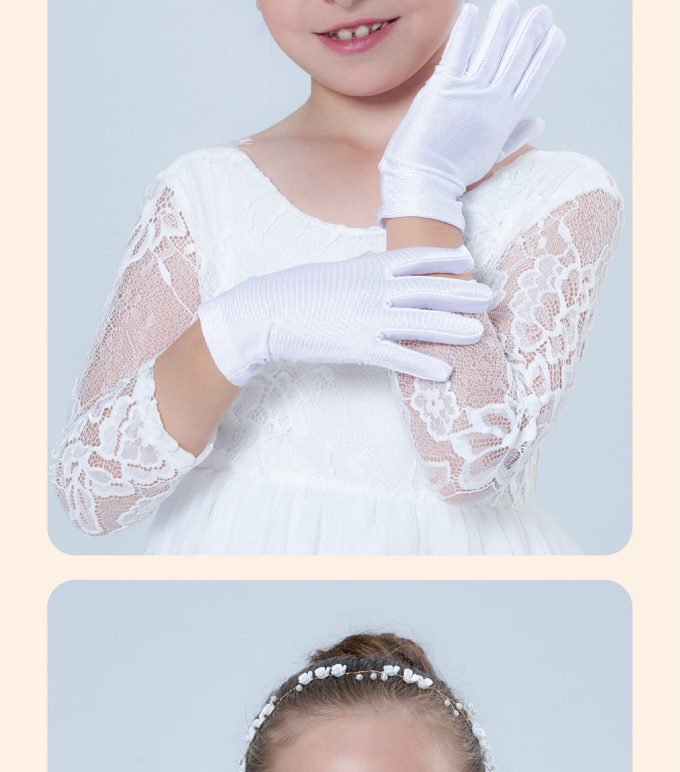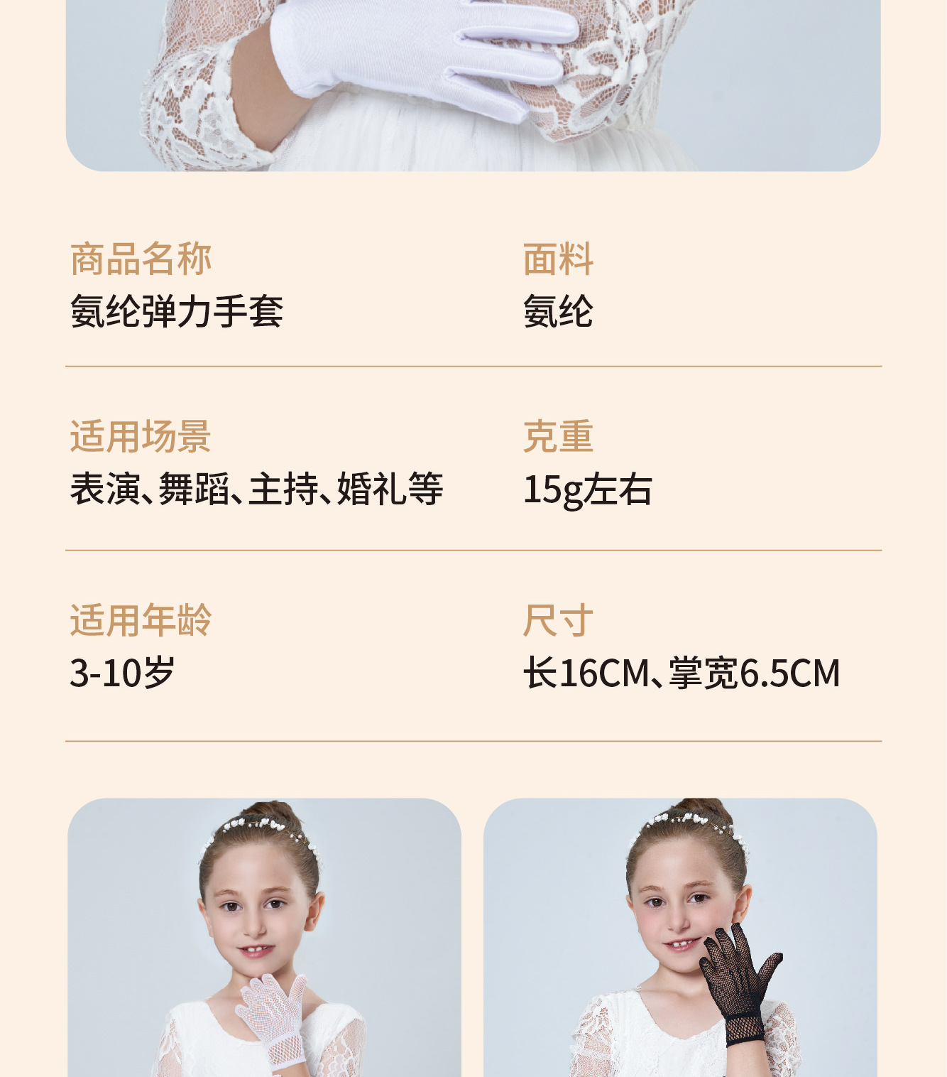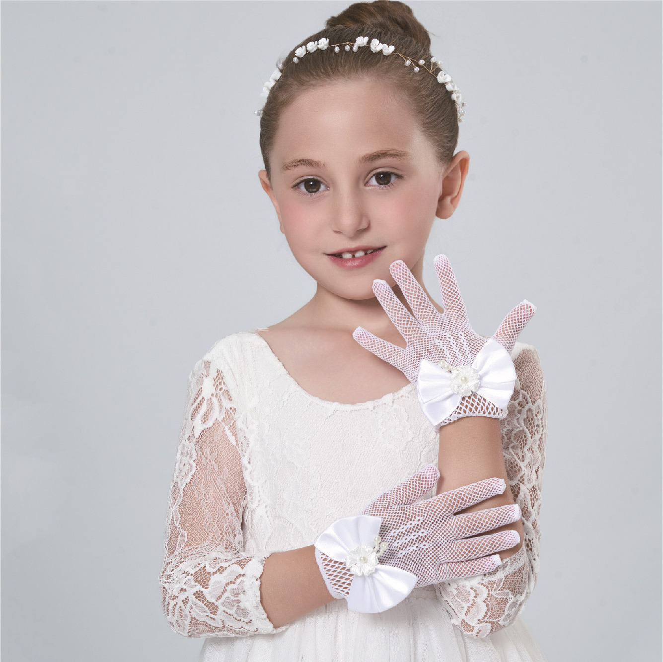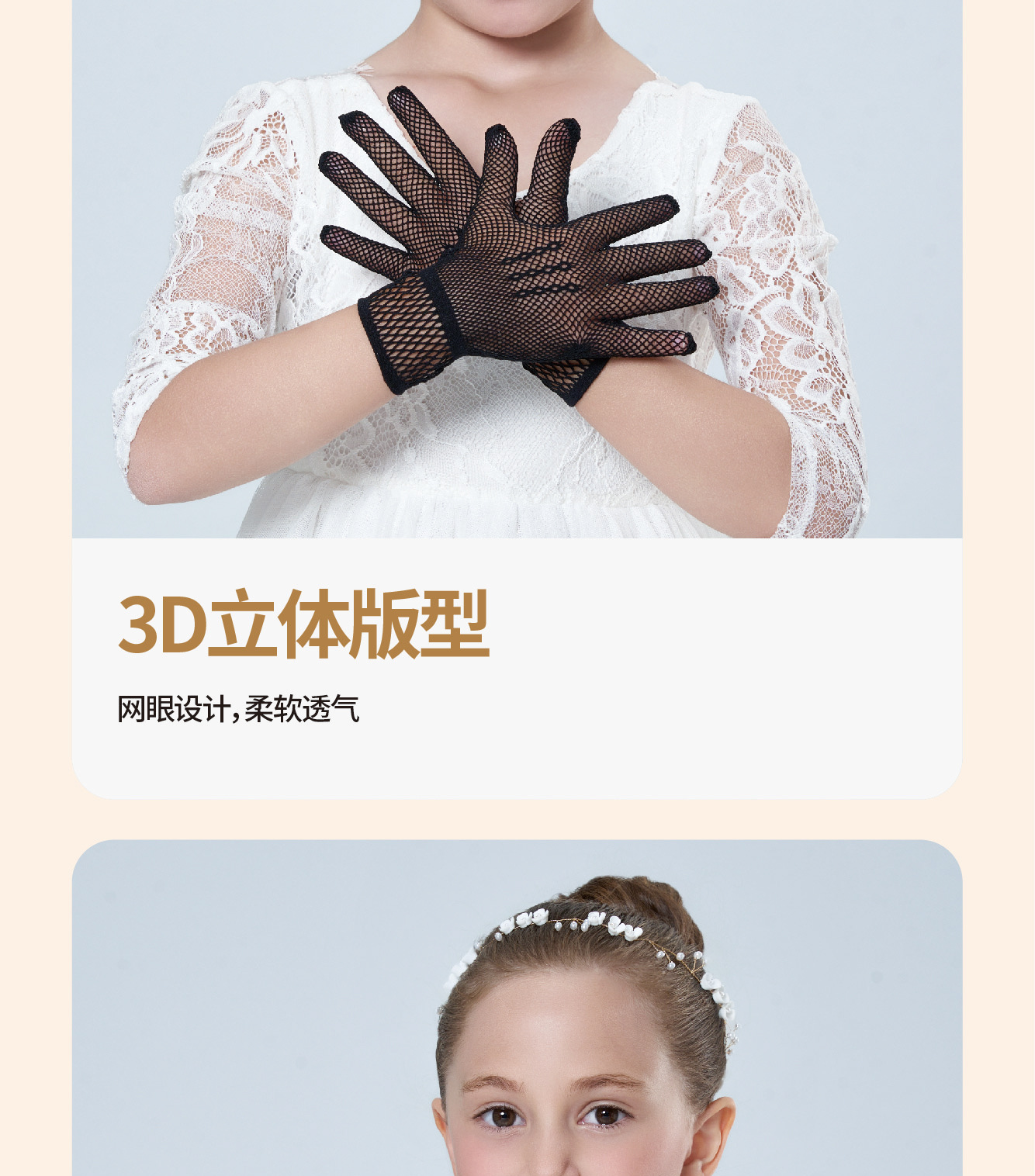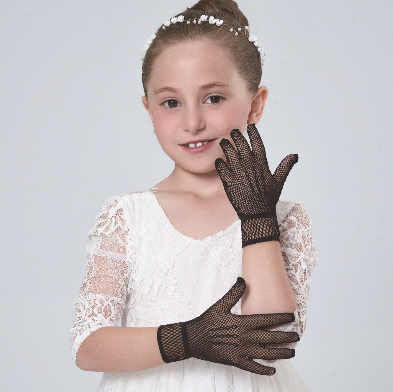 • 어린이용 리본 장식 망사 탄력 장갑 (스킨톤)