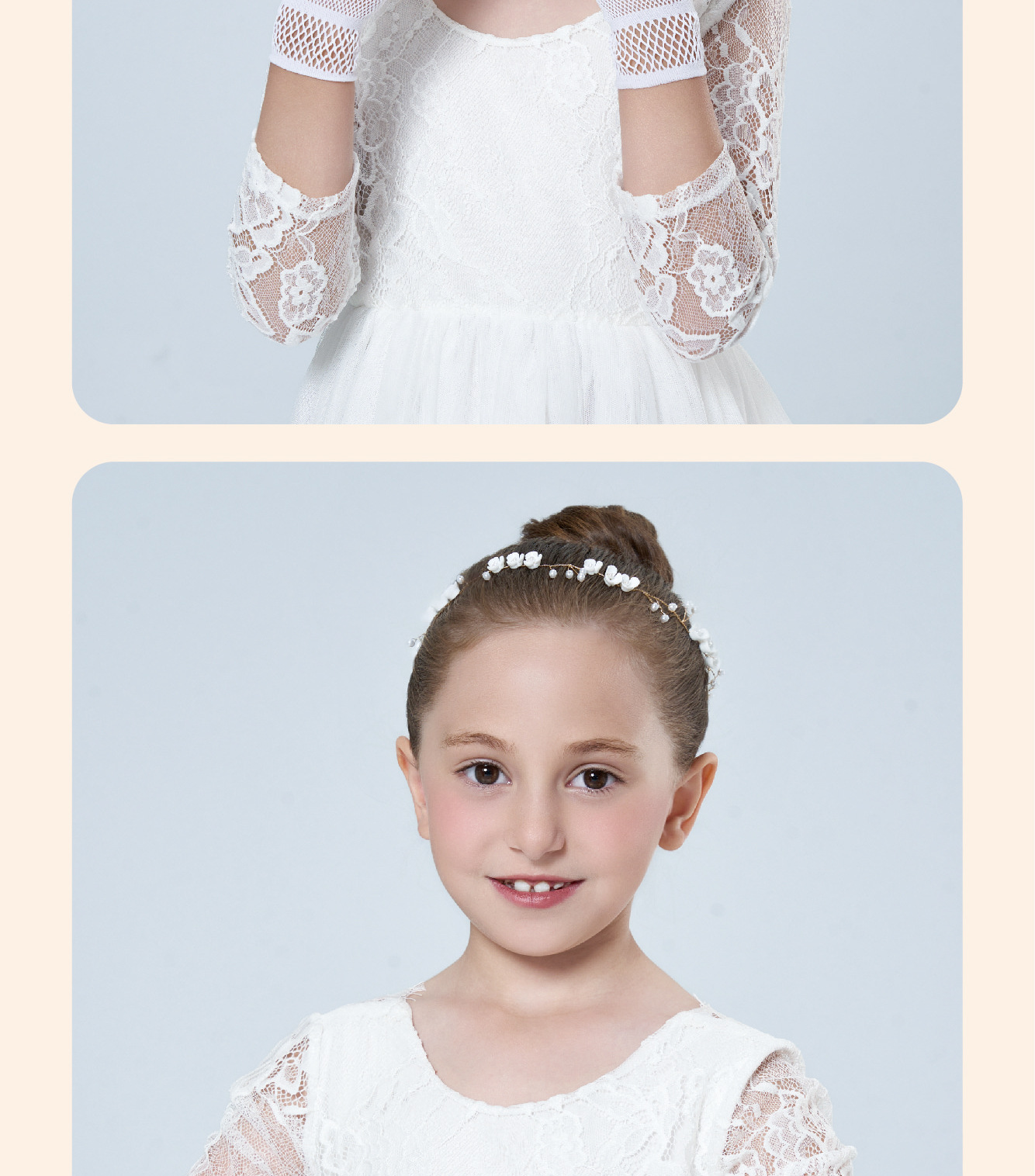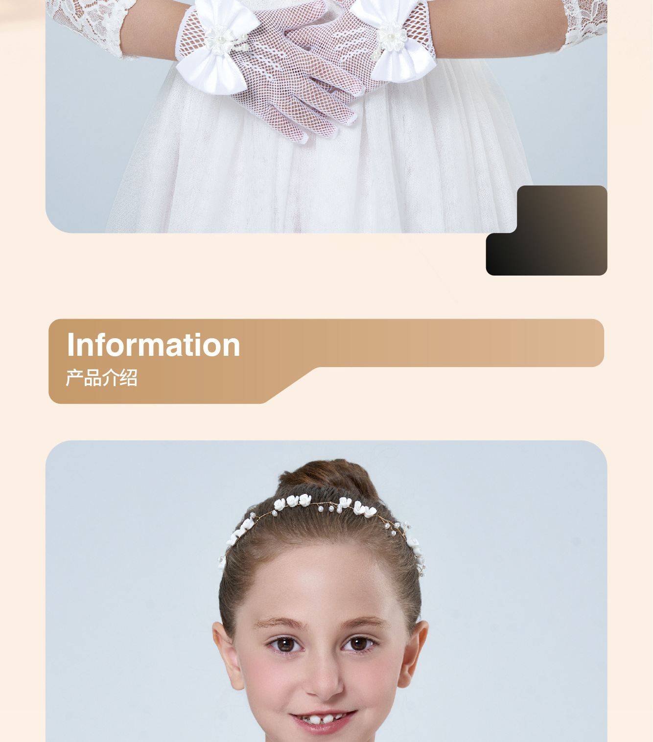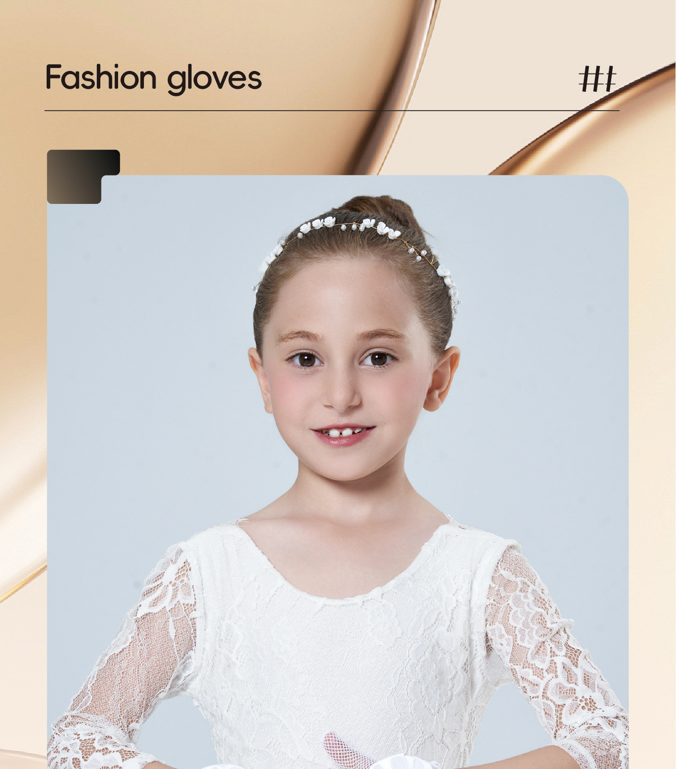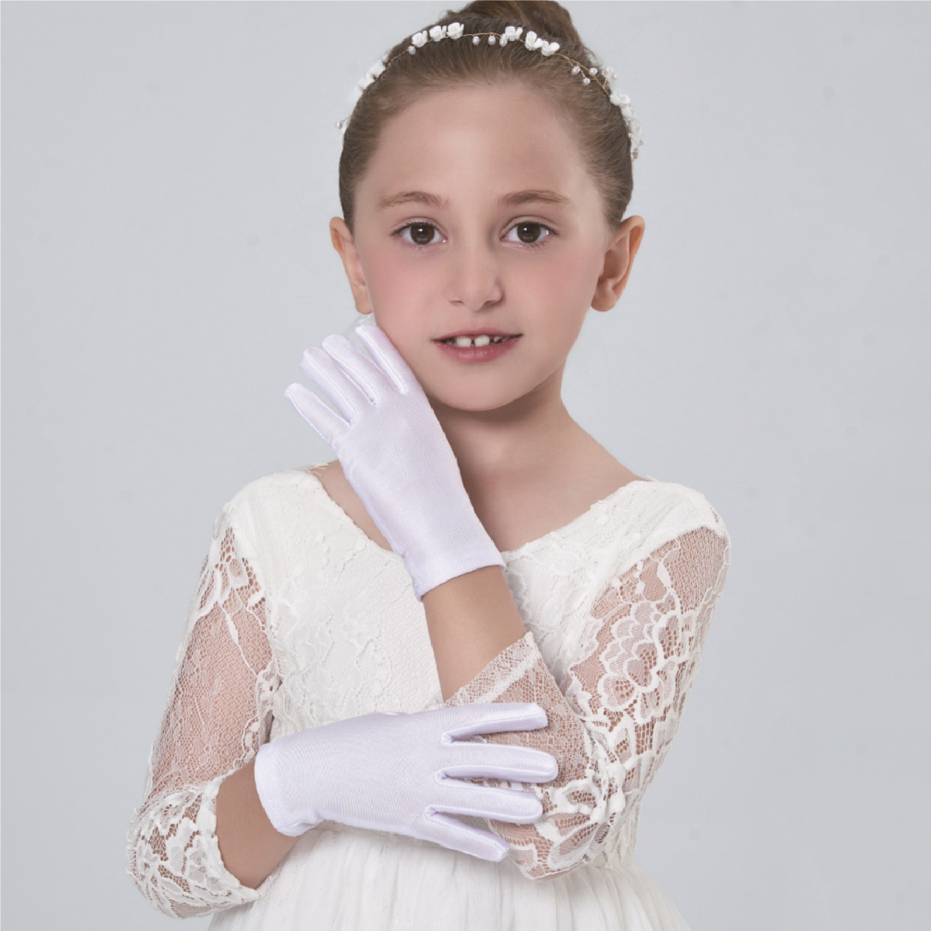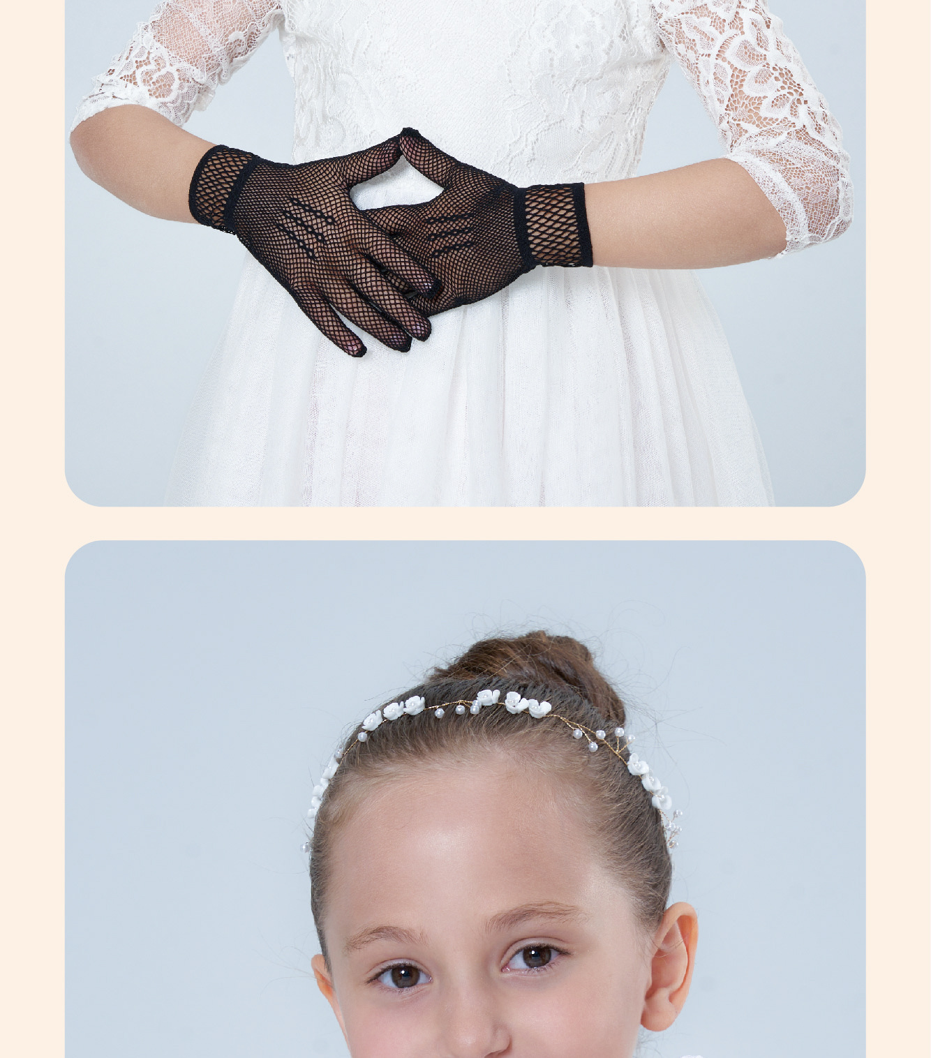 • 어린이용 리본 장식 망사 탄력 장갑 (스킨톤)