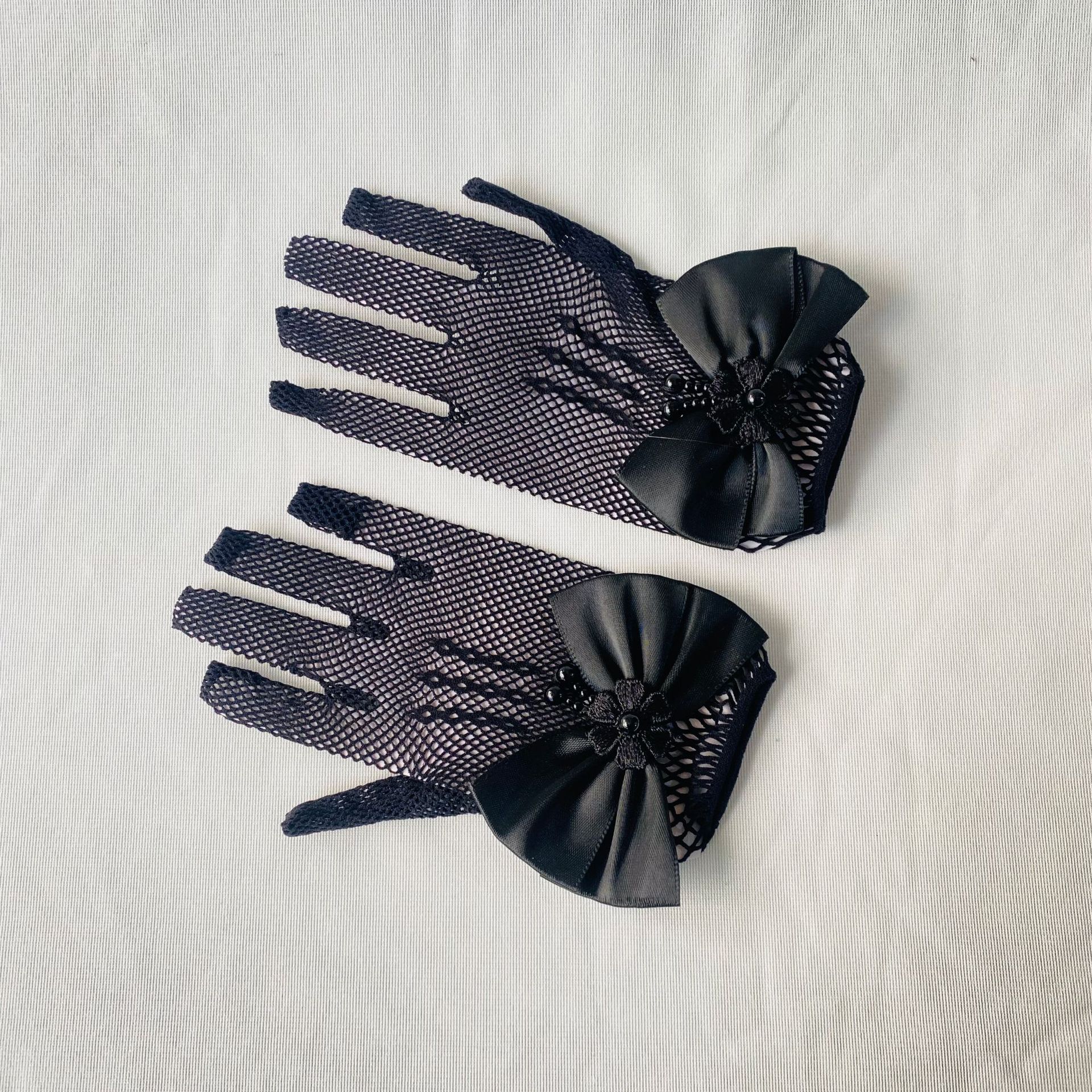 • 어린이용 리본 장식 망사 탄력 장갑 (블랙)