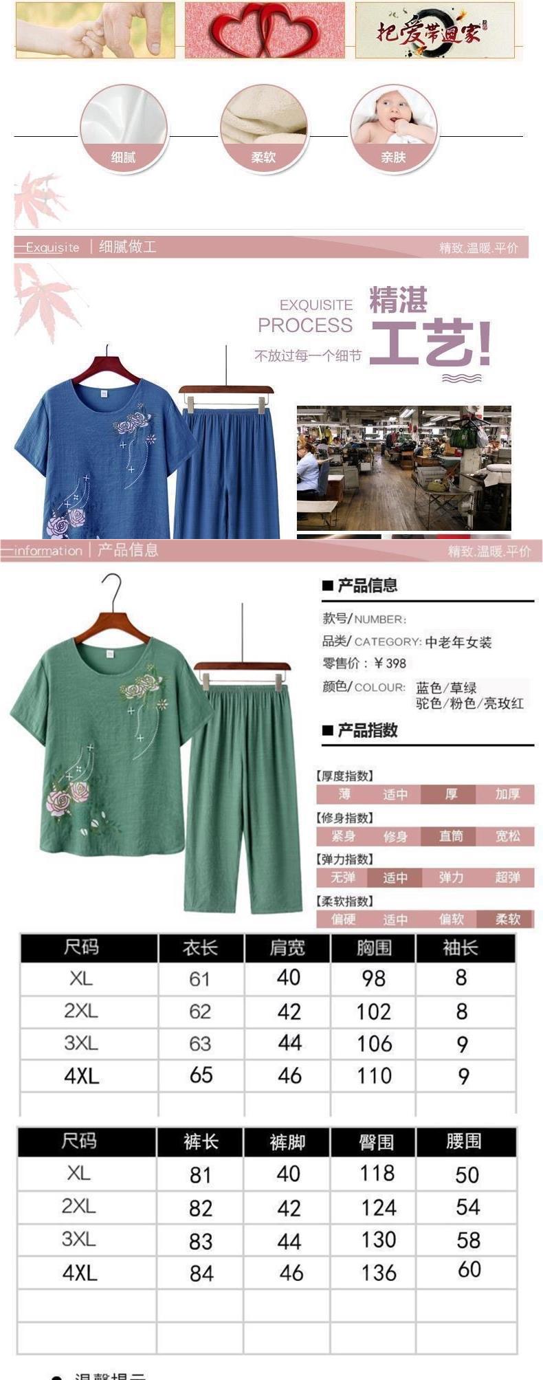 중년 및 노인 여성 티셔츠 여름 모조면과 린넨 어머니의 투피스 세트 시어머니 60 세 70 세 할머니 티셔츠 바지