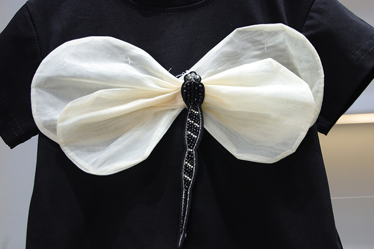 • 블랙 블랙 리본 T + 화이트 스커트