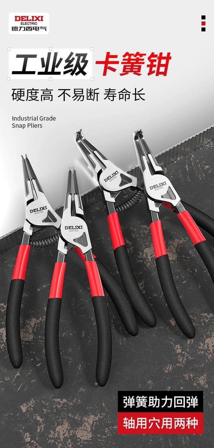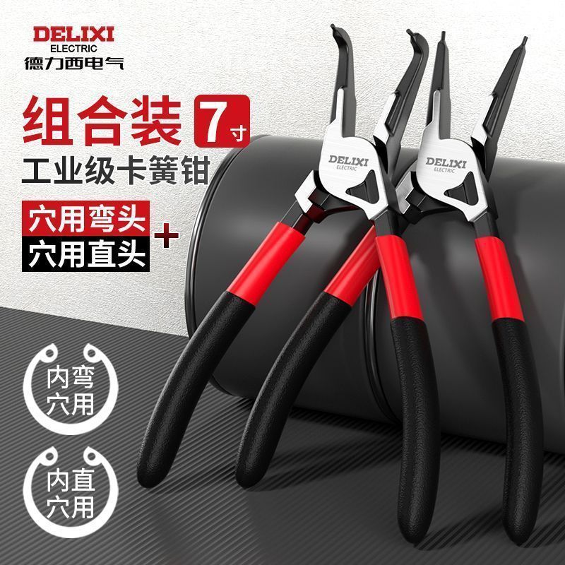Delixi 전기 서클립 펜치 내부 및 외부 이중 목적 산업 등급 세트 확장 서클 클립 펜치 스몰 사이즈 스프링 서클 클립 펜치스토어 가기