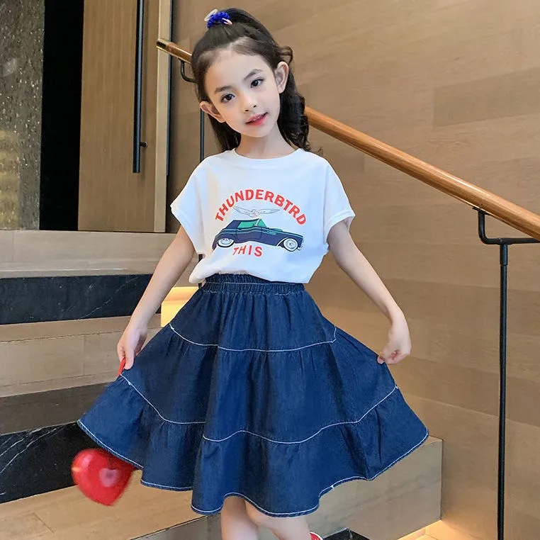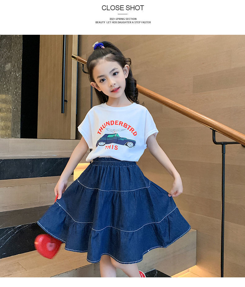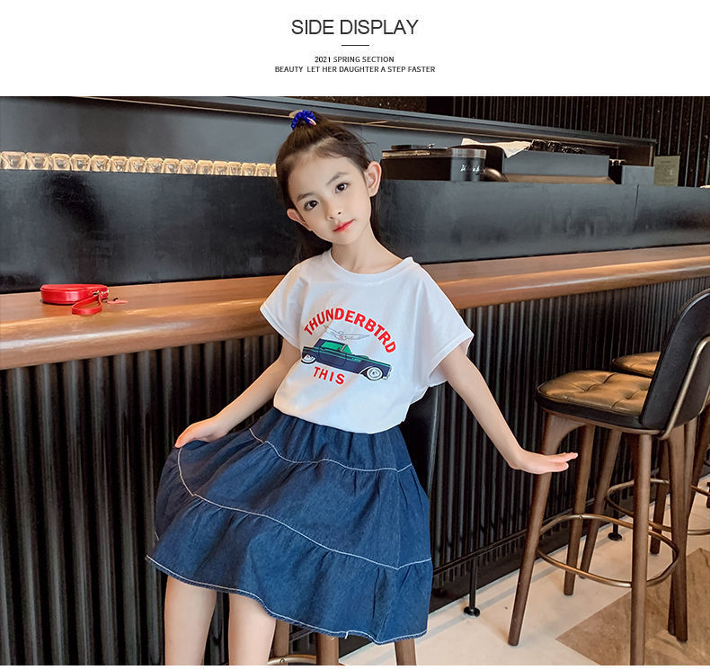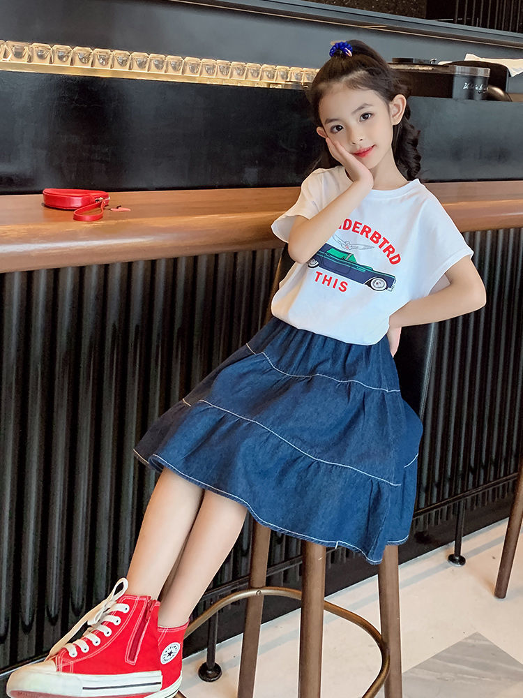 소녀의 치마 여름 새로운 스타일 중 · 빅 키즈 6 ~ 12 세 캐주얼 올 매치 A 라인 스커트 소녀의 데님 스커트