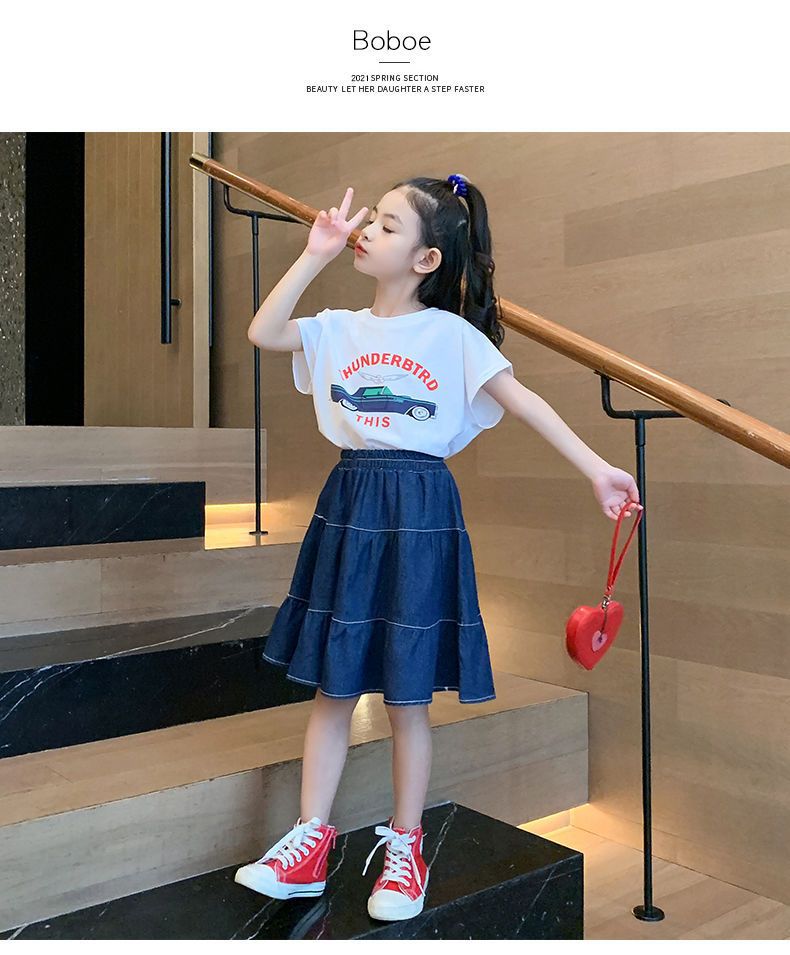 소녀의 치마 여름 새로운 스타일 중 · 빅 키즈 6 ~ 12 세 캐주얼 올 매치 A 라인 스커트 소녀의 데님 스커트스토어 가기