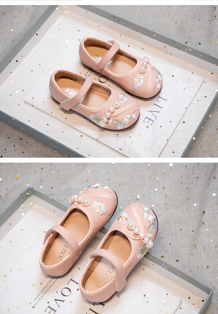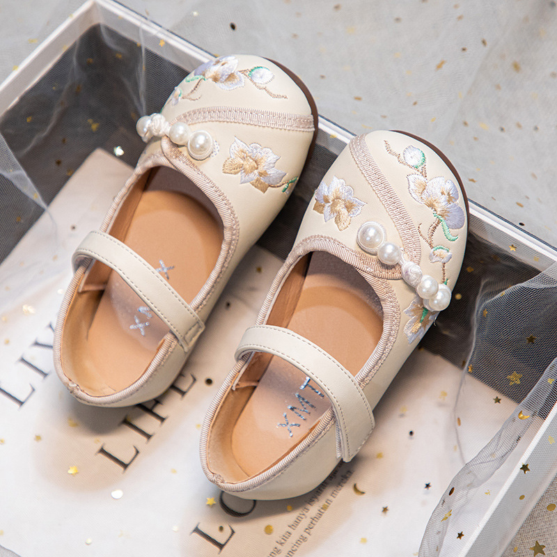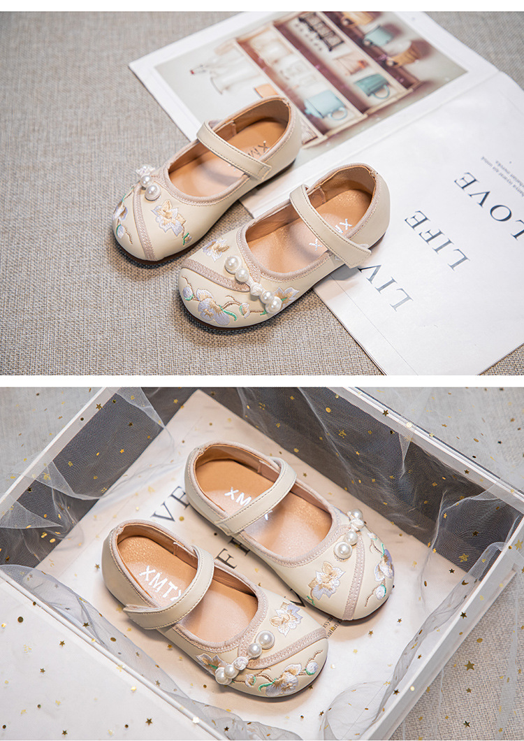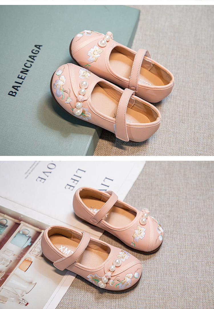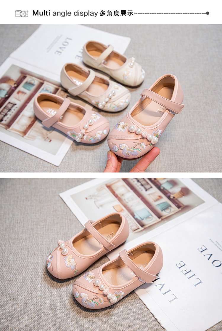 소녀 한푸 신발 어린이 말 얼굴 스커트 신발 새로운 중국 스타일 소녀의 작은 가죽 신발 국가 스타일 고대 옷 수놓은 부드러운 밑창 어린이 신발스토어 가기