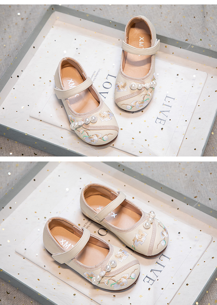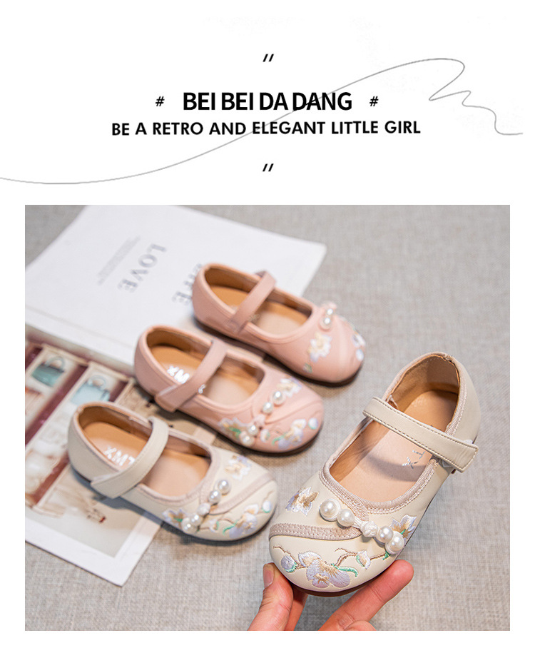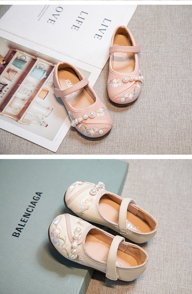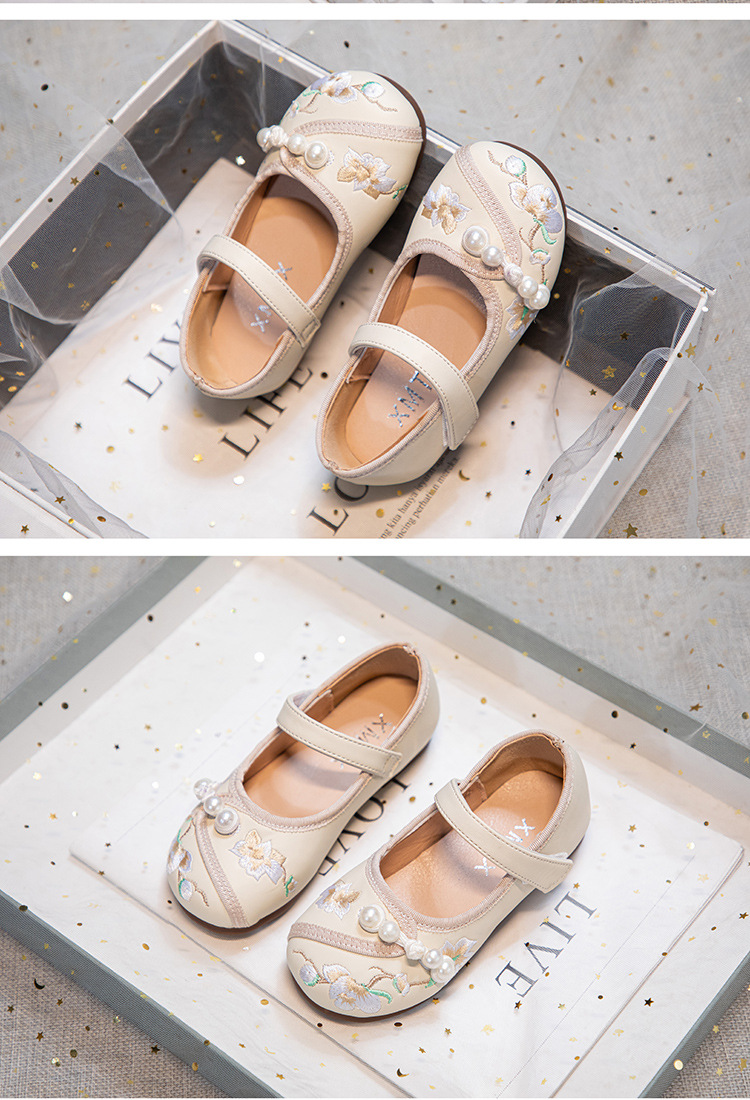 소녀 한푸 신발 어린이 말 얼굴 스커트 신발 새로운 중국 스타일 소녀의 작은 가죽 신발 국가 스타일 고대 옷 수놓은 부드러운 밑창 어린이 신발스토어 가기