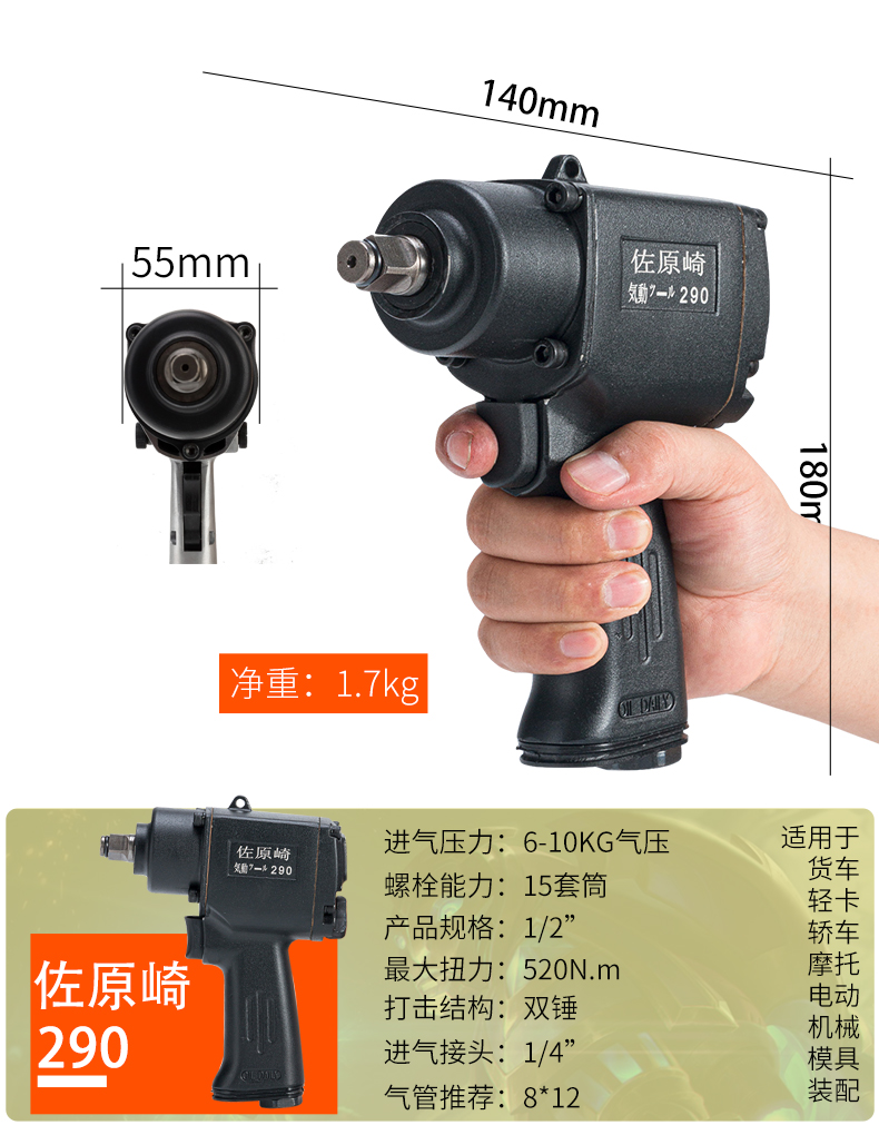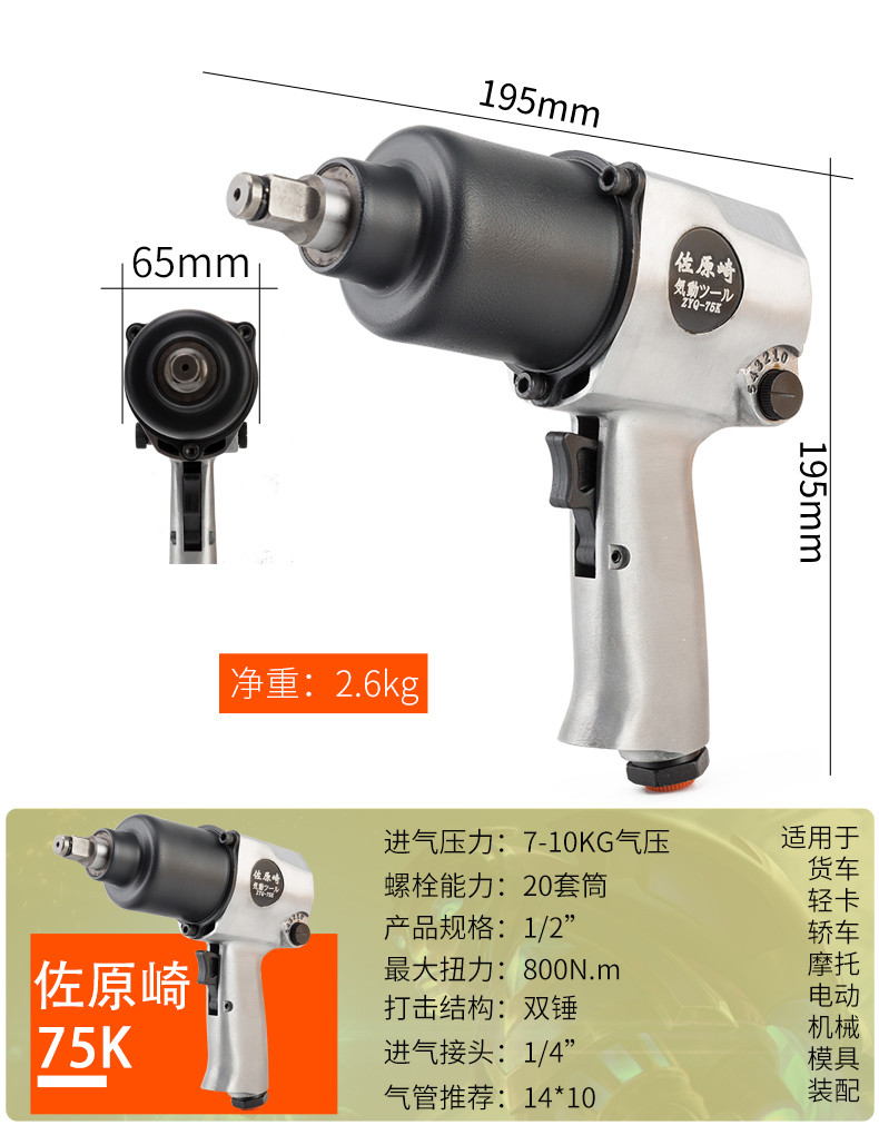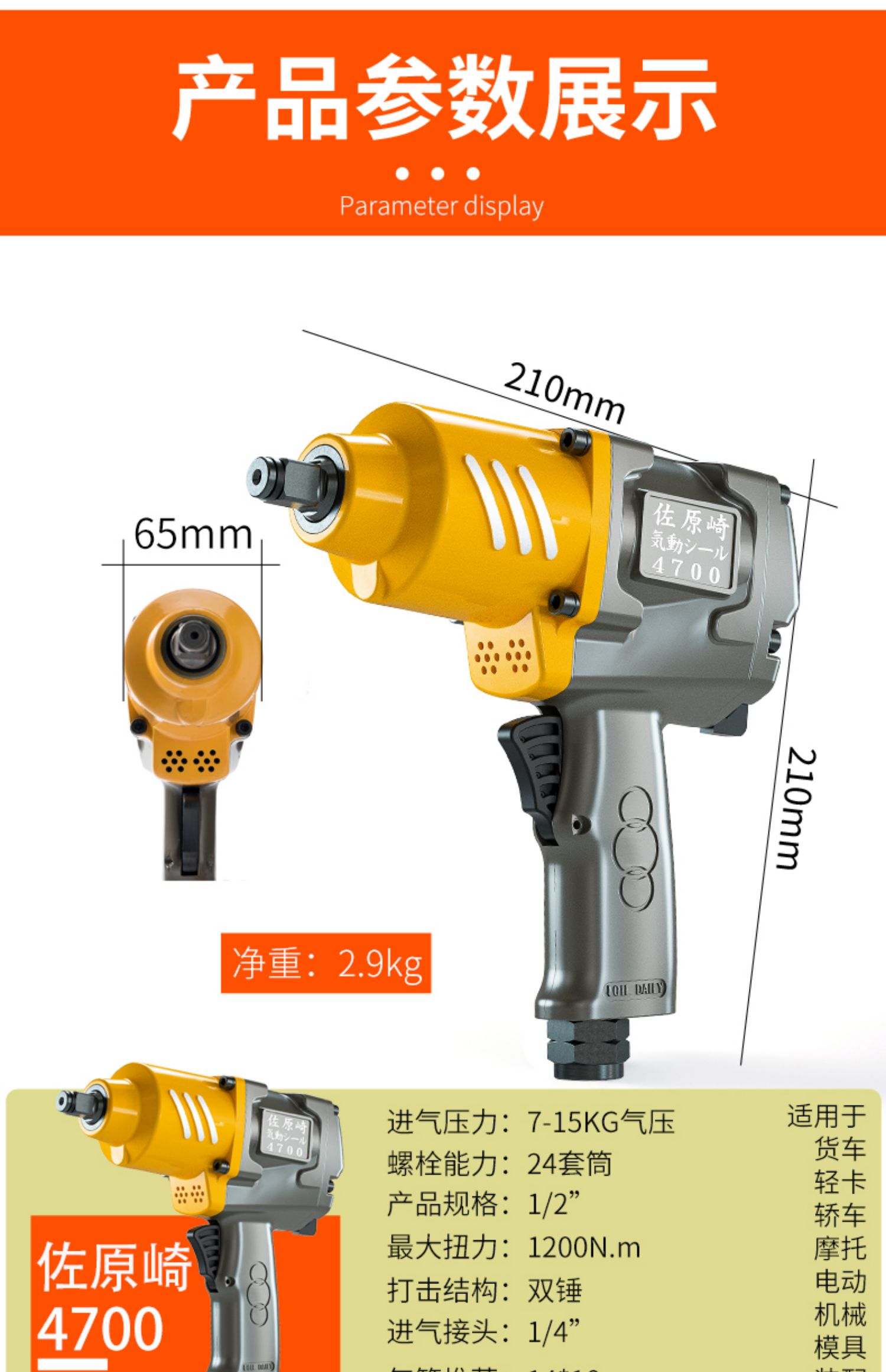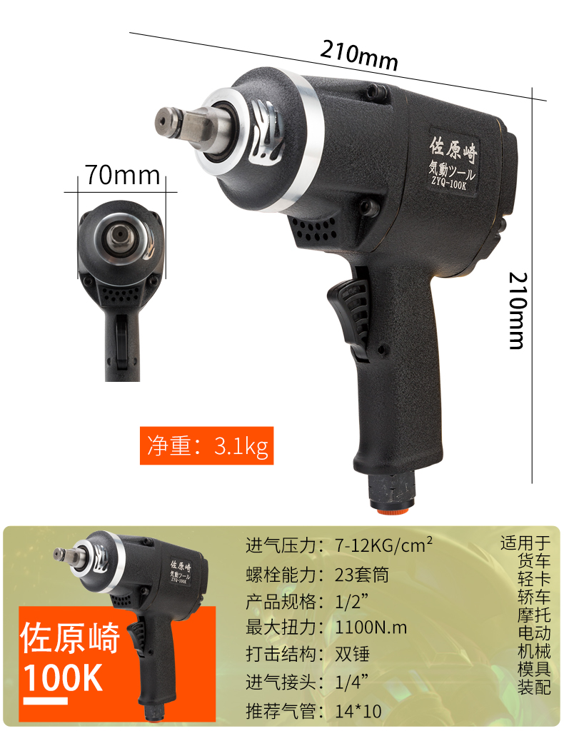 사사키 일본식 공압 렌치 공기총 공압 공구 대형 토크 자동차 수리 작은 공기총 1/2 폭풍