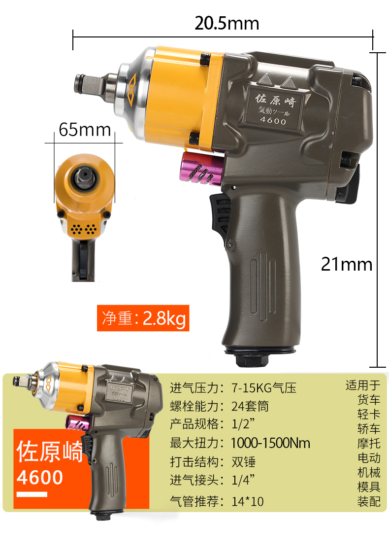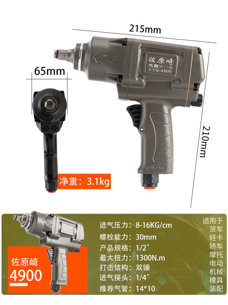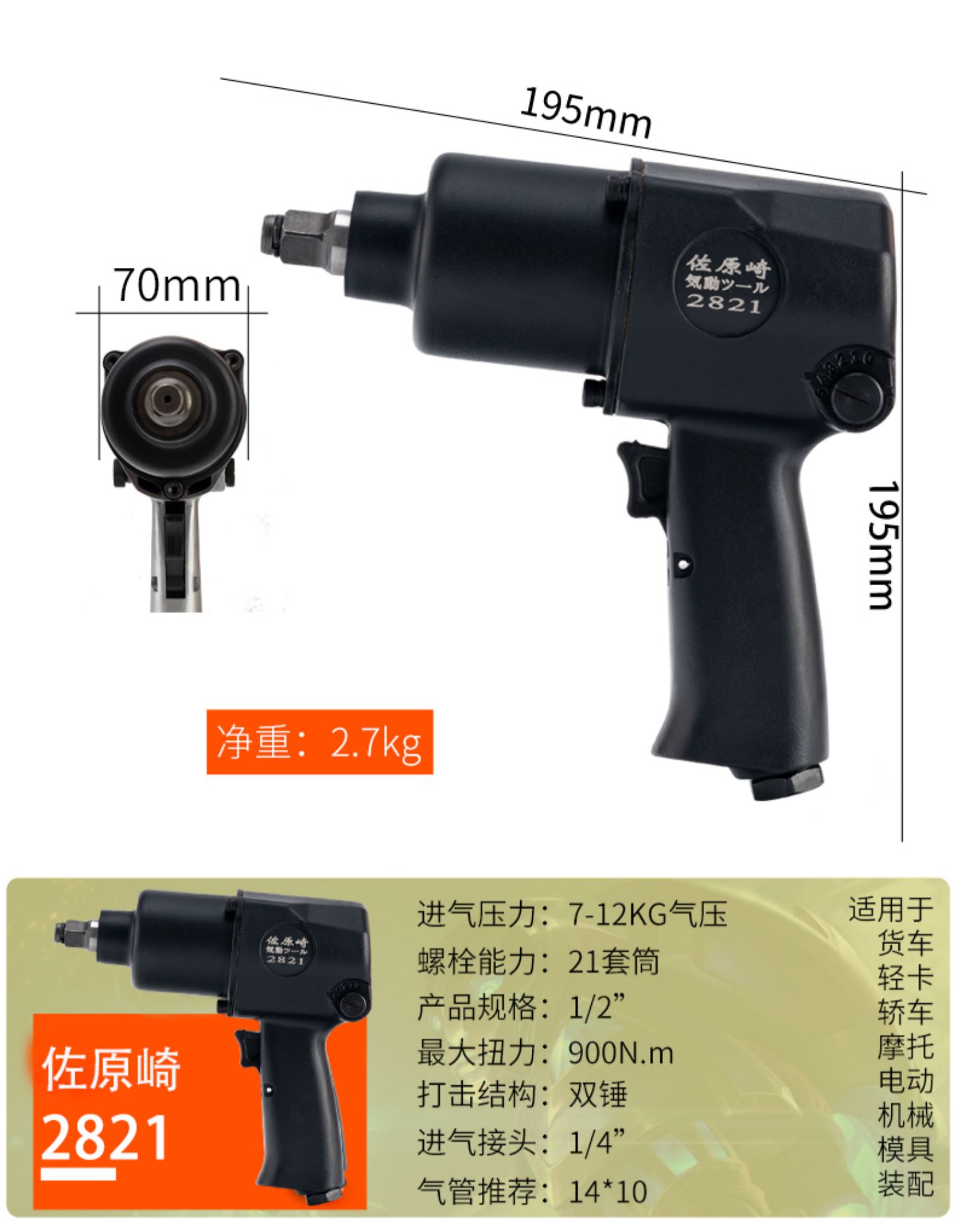 사사키 일본식 공압 렌치 공기총 공압 공구 대형 토크 자동차 수리 작은 공기총 1/2 폭풍