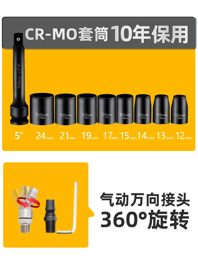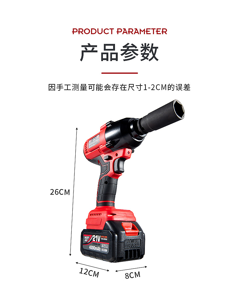 • 10셀 21V2 배터리, 1회 충전, 확장 슬리브 전기 렌치 포함