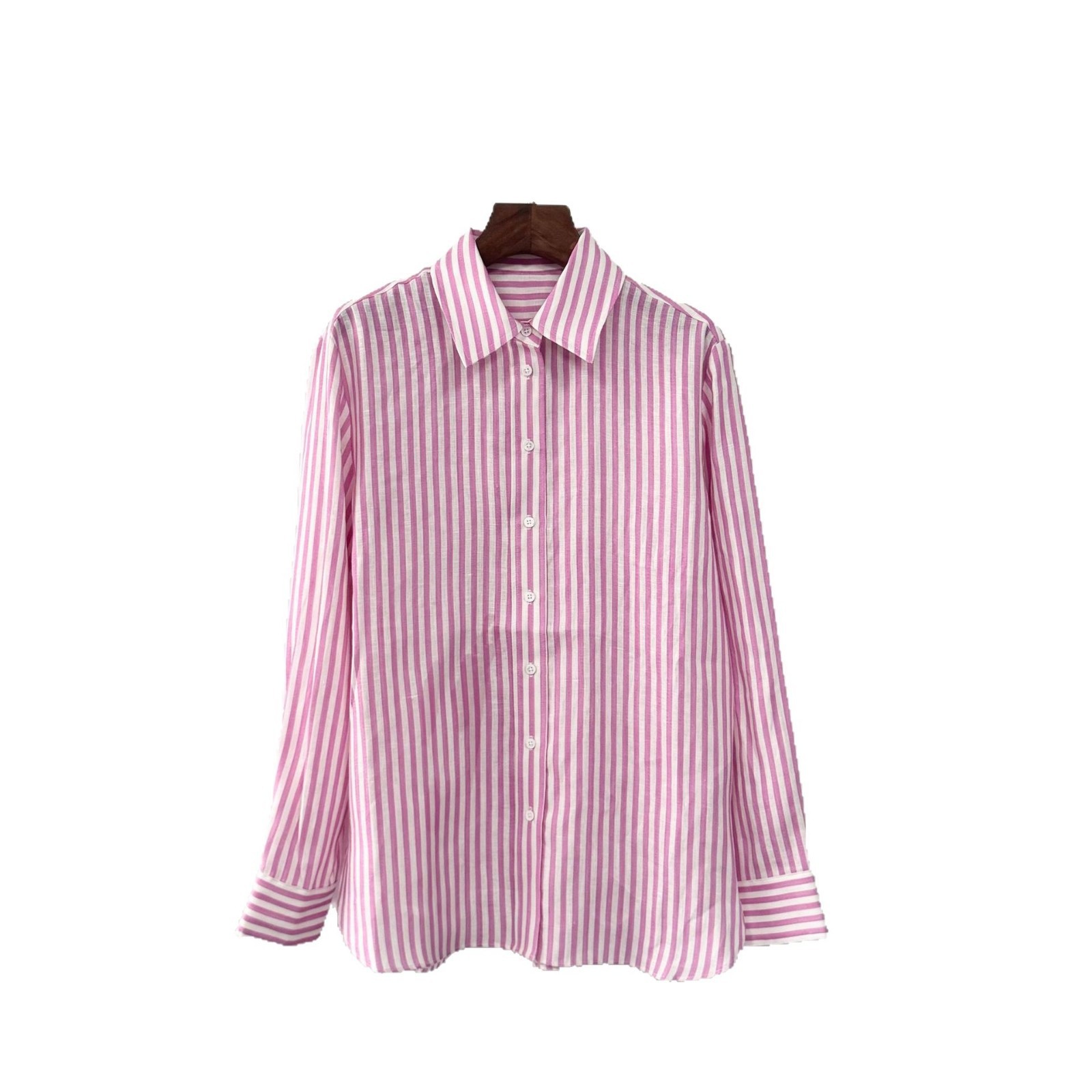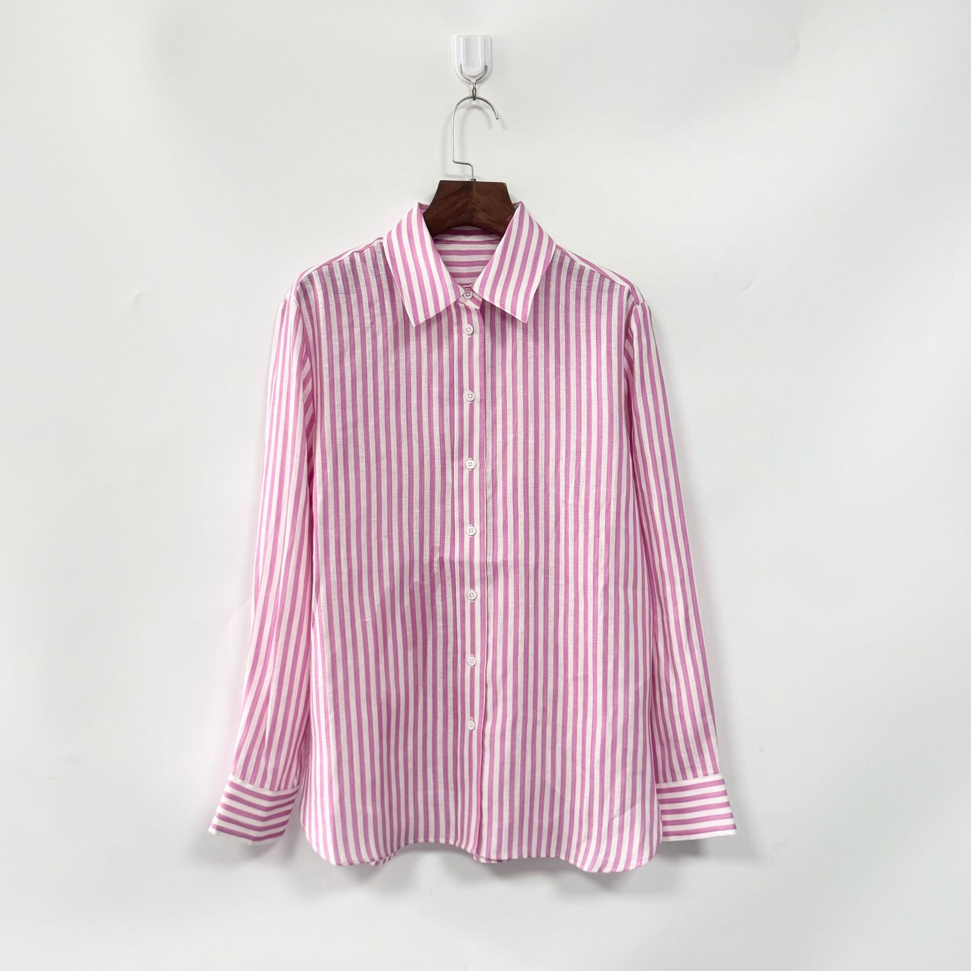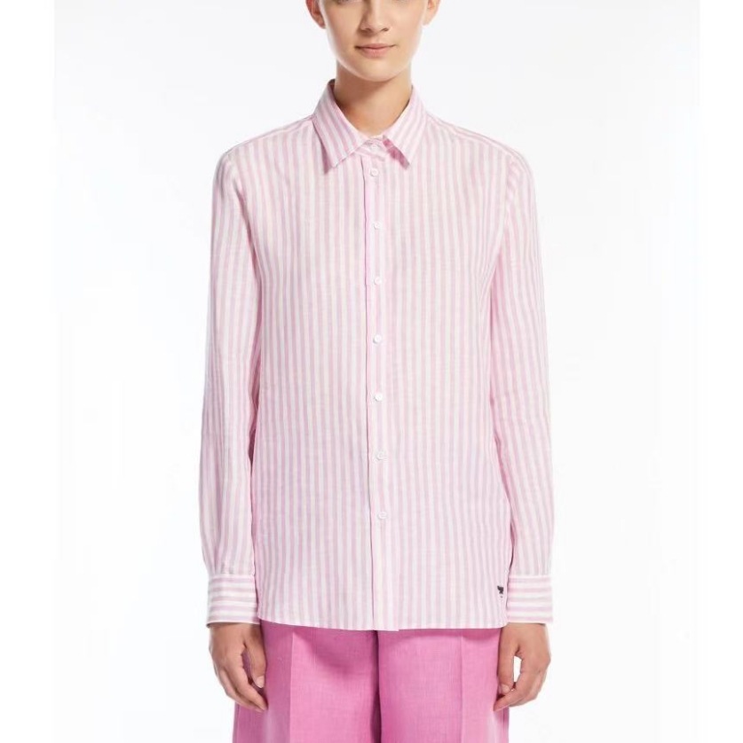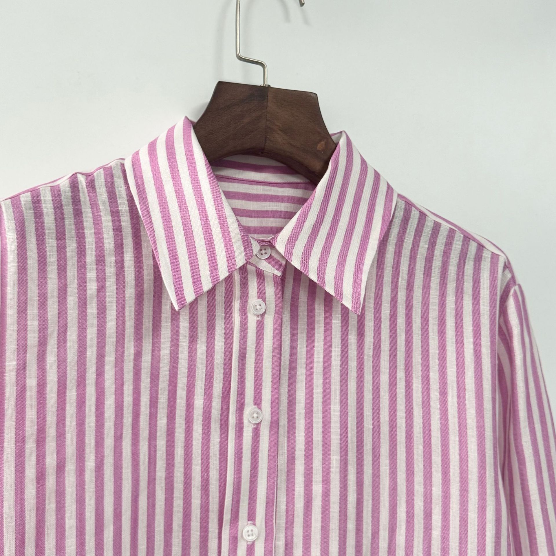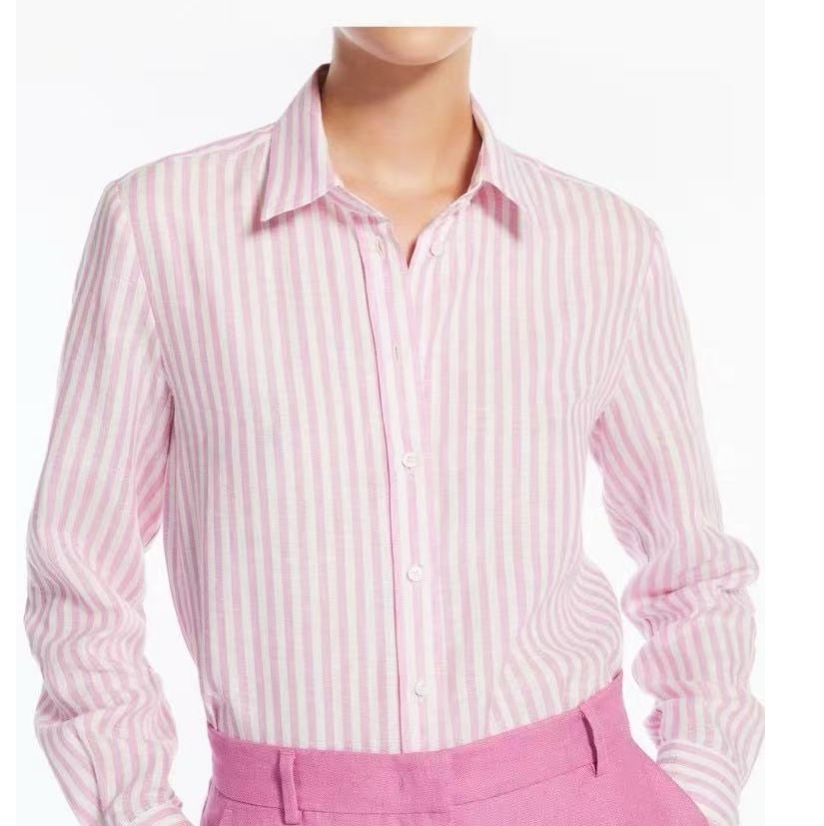 MAX25 봄과 여름 새로운 클래식 간단한 다기능 줄무늬 리넨 셔츠 탑스토어 가기