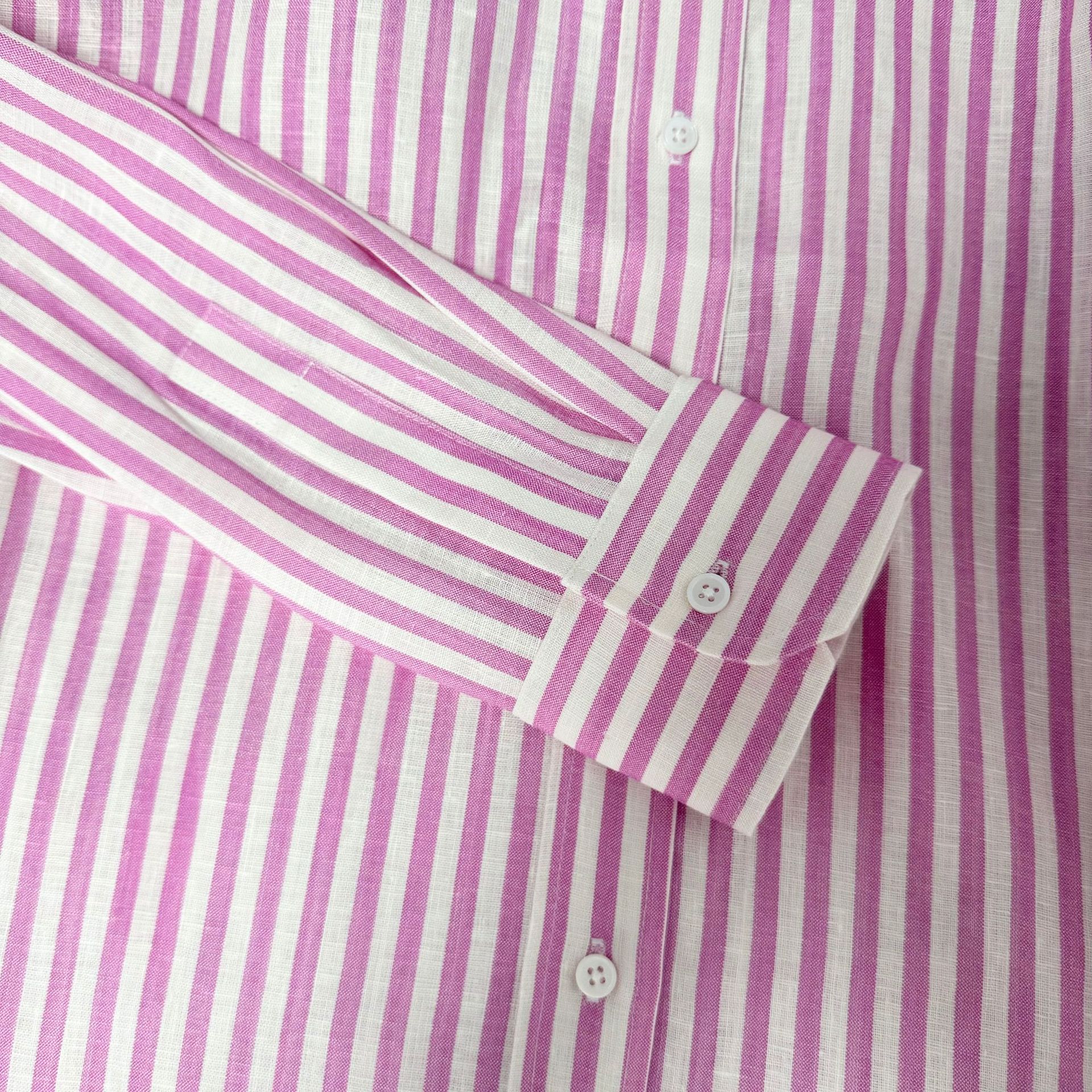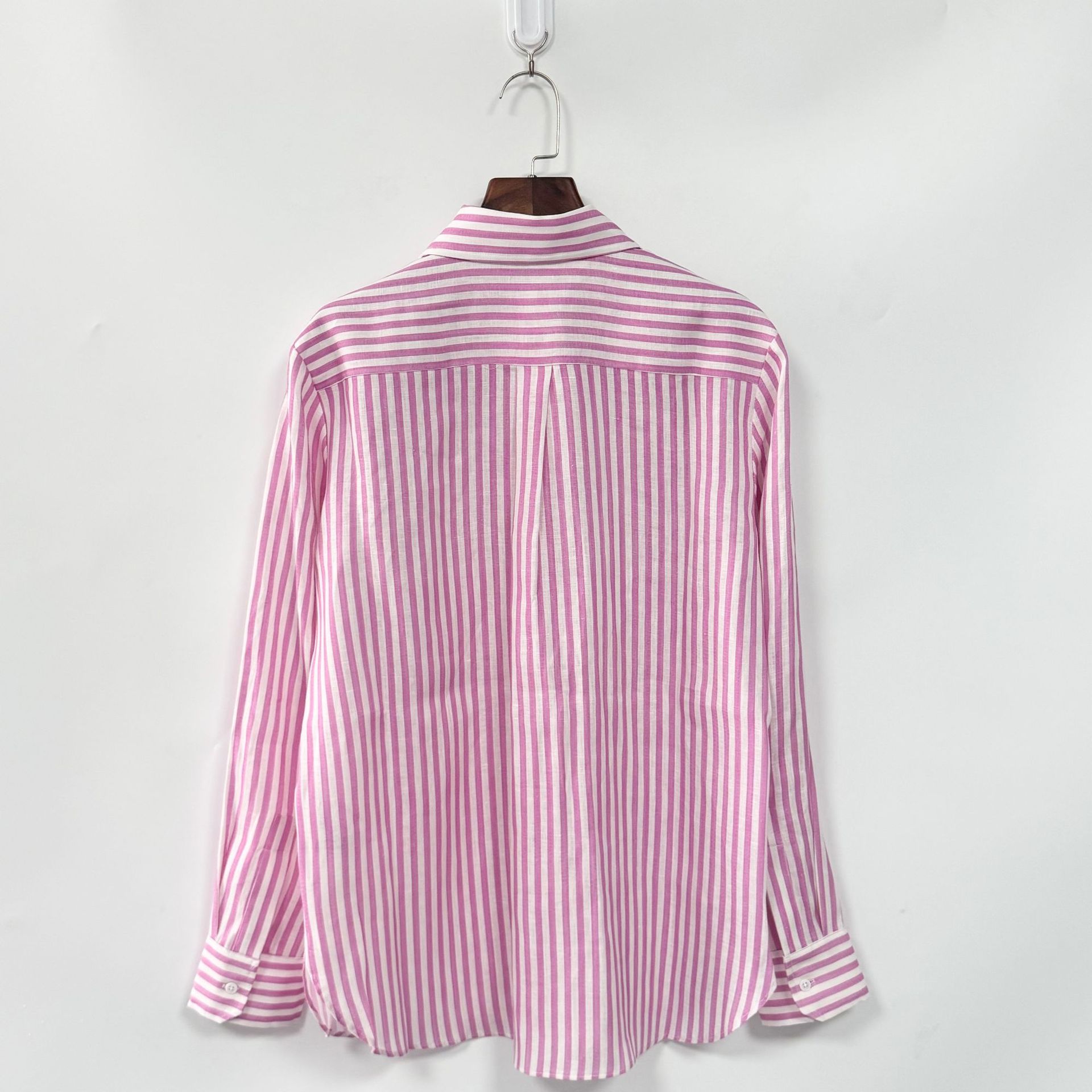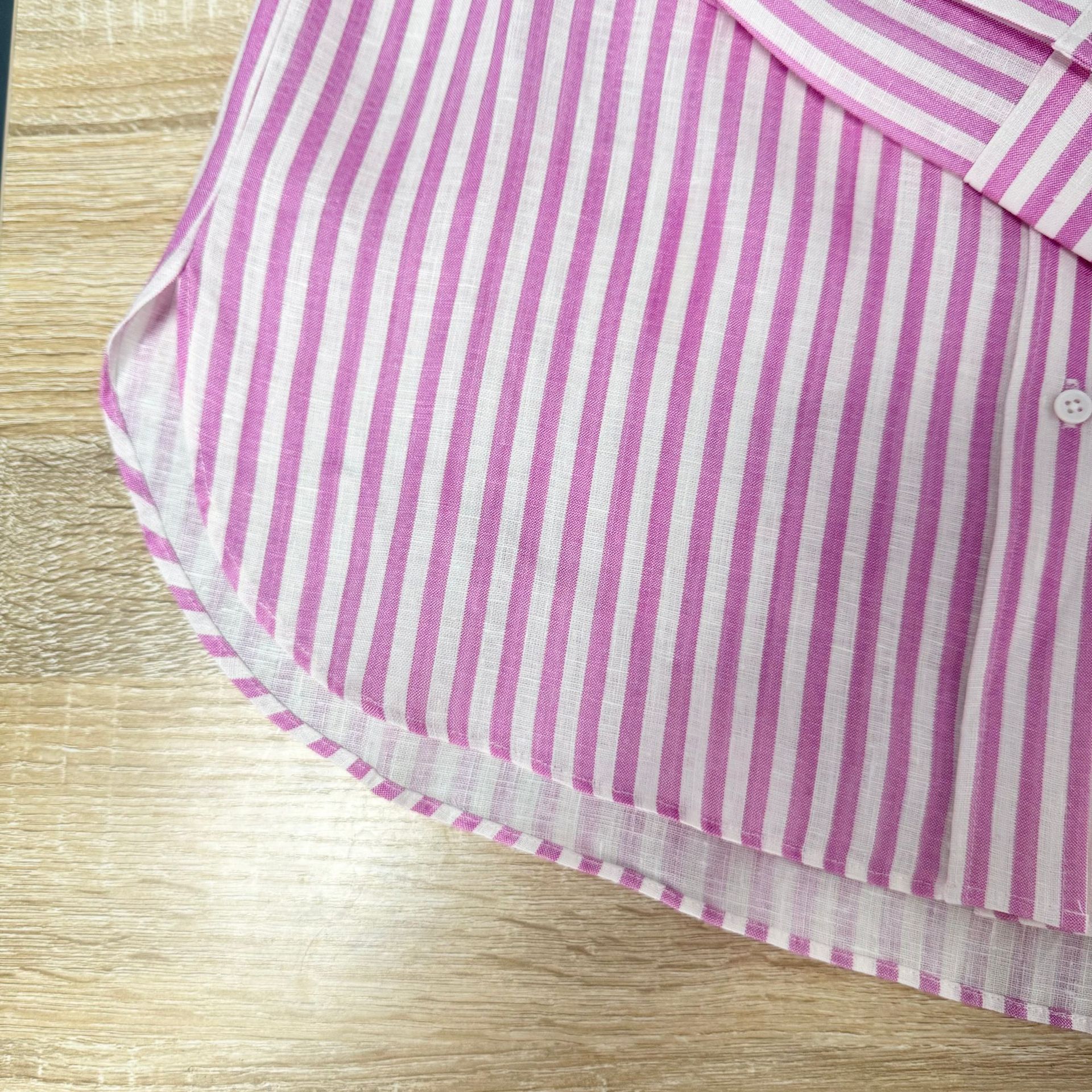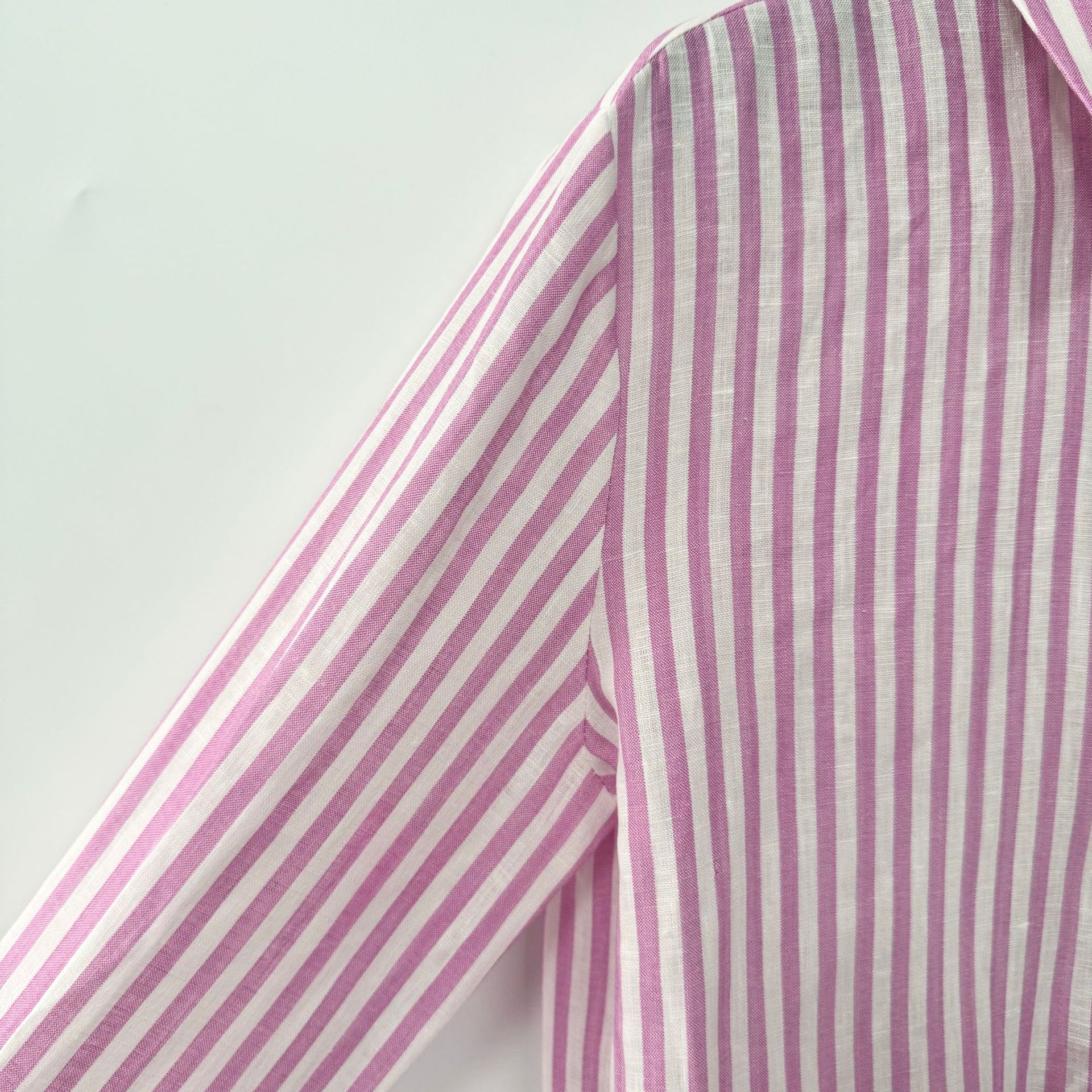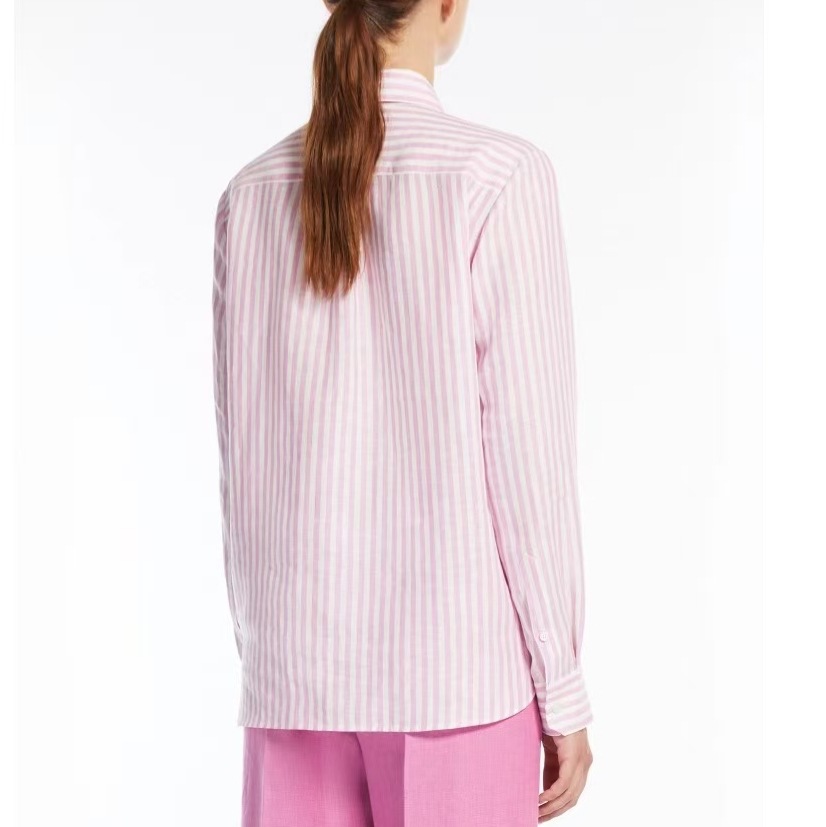 MAX25 봄과 여름 새로운 클래식 간단한 다기능 줄무늬 리넨 셔츠 탑스토어 가기