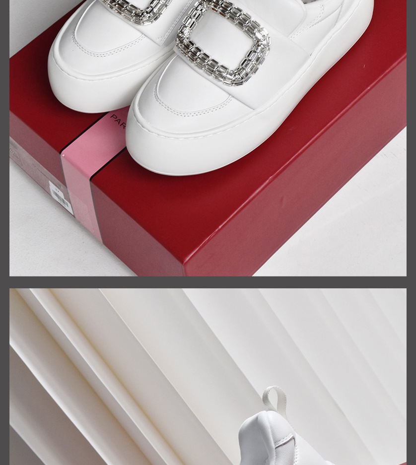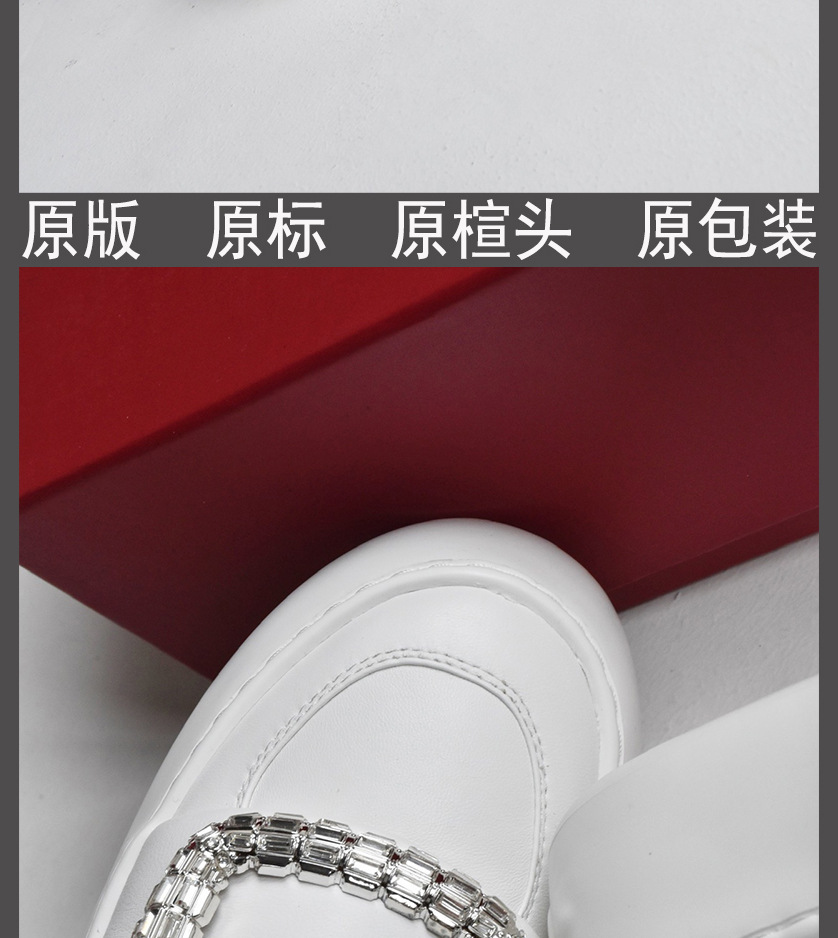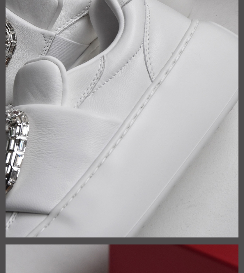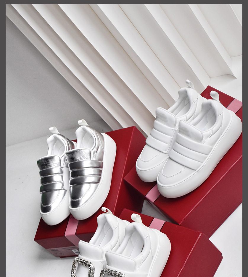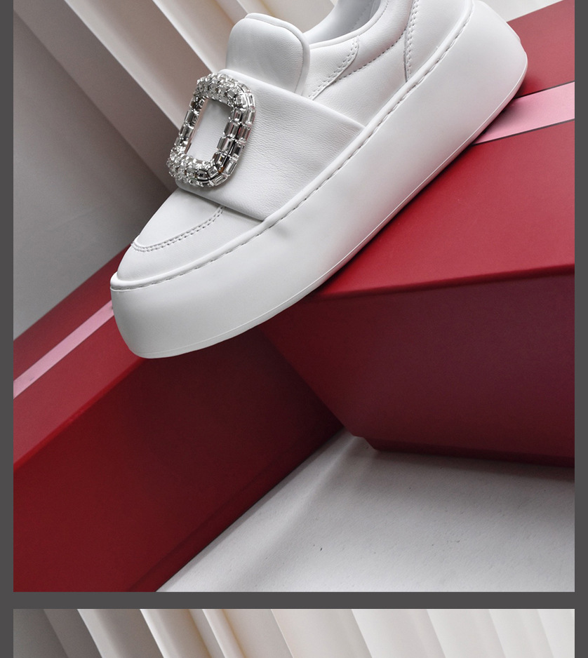Rv 다이아몬드 버클 빵 신발 여성의 2025 봄 새로운 캐주얼 슬립 온 화이트 신발 정품 가죽 증가 두꺼운 바닥 플랫폼 신발스토어 가기