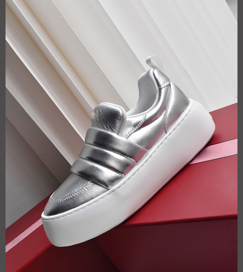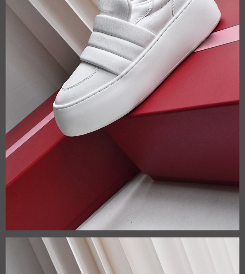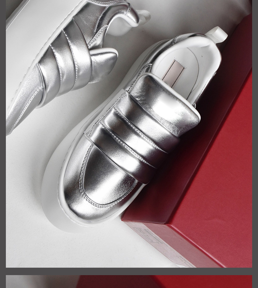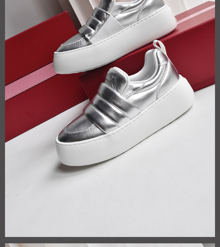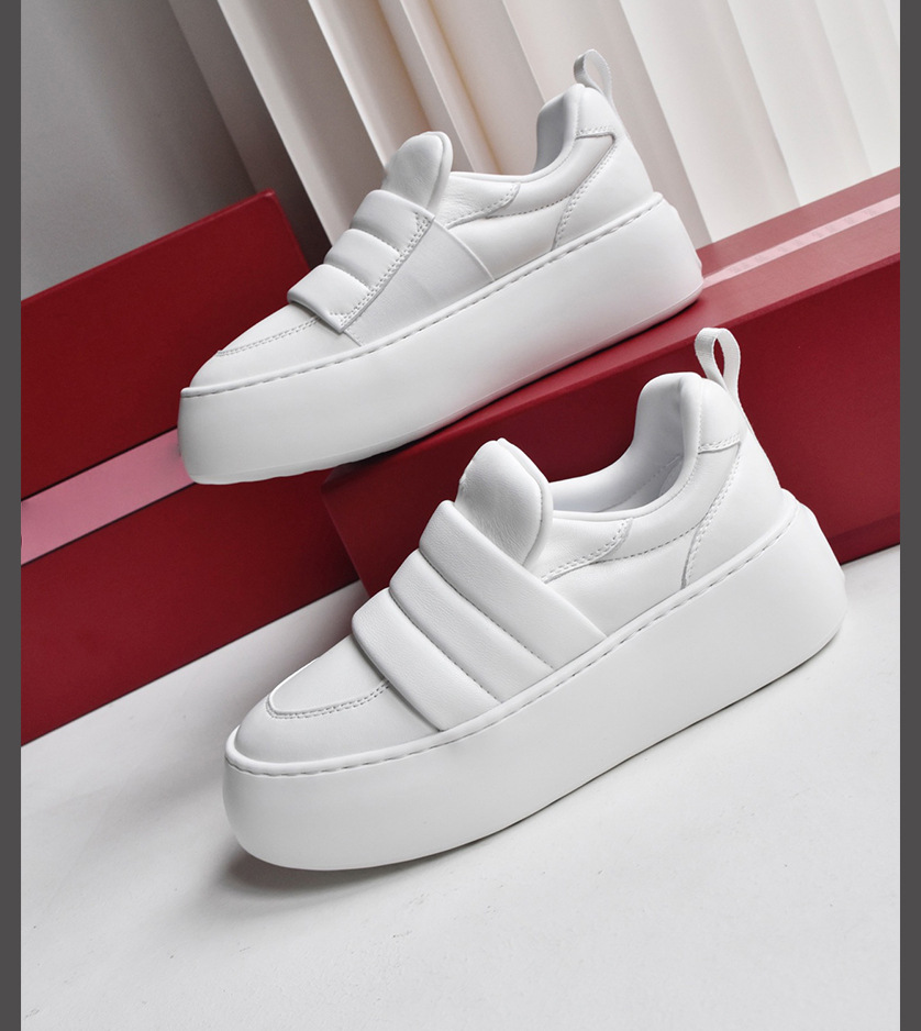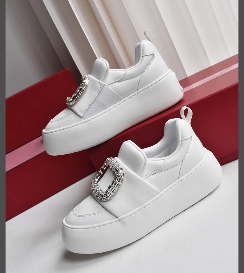 Rv 다이아몬드 버클 빵 신발 여성의 2025 봄 새로운 캐주얼 슬립 온 화이트 신발 정품 가죽 증가 두꺼운 바닥 플랫폼 신발스토어 가기