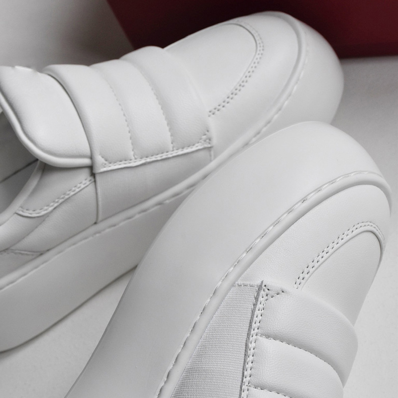 Rv 다이아몬드 버클 빵 신발 여성의 2025 봄 새로운 캐주얼 슬립 온 화이트 신발 정품 가죽 증가 두꺼운 바닥 플랫폼 신발