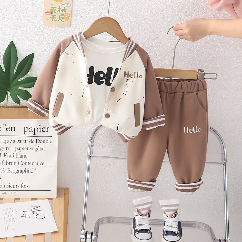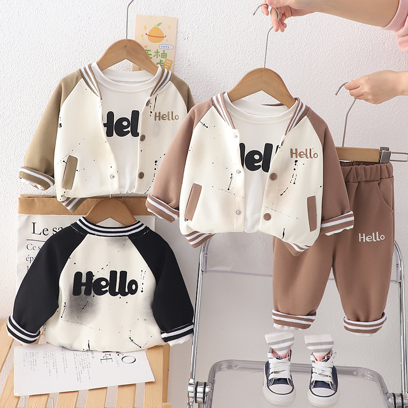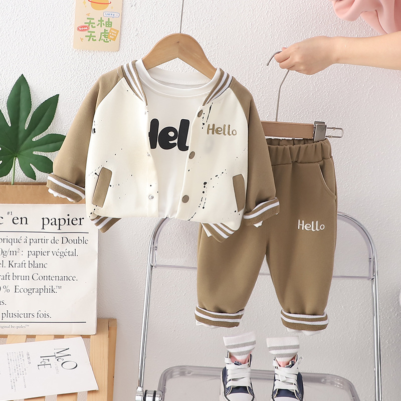 2025 남학생과 여학생을위한 봄 아동복 지퍼 셔츠 3 종 세트 긴 소매 야구 옷 봄 어린이 세트