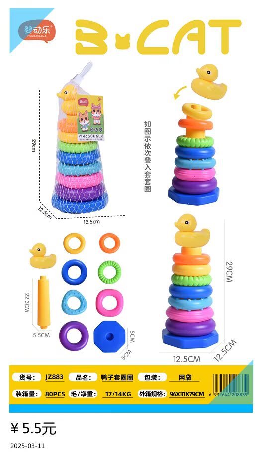 어린이 조기 교육 반지 장난감 작은 오리 무지개 스태킹 링 부모-어린이 대화 형 어린이 장난감 선물 도매 중국스토어 가기