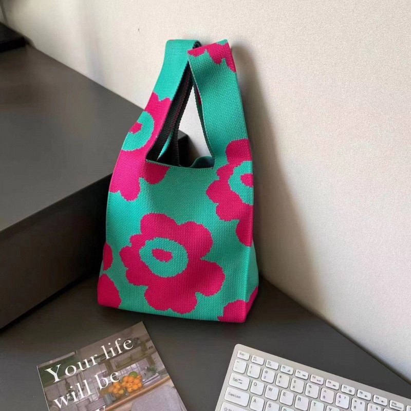 귀여운 니트 백 새로운 여성 가방 토트 백 손 선물 가방 학생 올 매치 캐주얼 핸드백 울 버킷 백스토어 가기