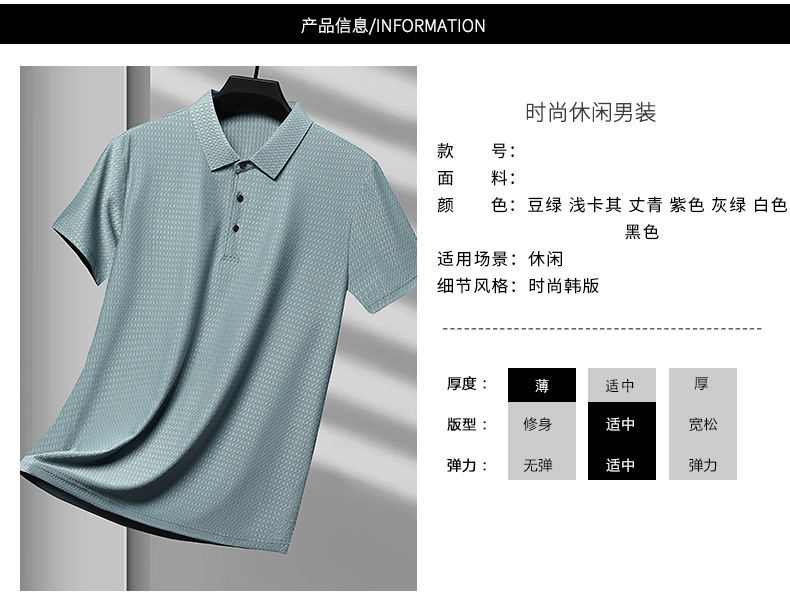 가벼운 럭셔리 남성 반팔 폴로 셔츠 여름 얇은 아이스 실크 탄성 통기성 중년 및 젊은 비즈니스 캐주얼 반팔 티셔츠스토어 가기