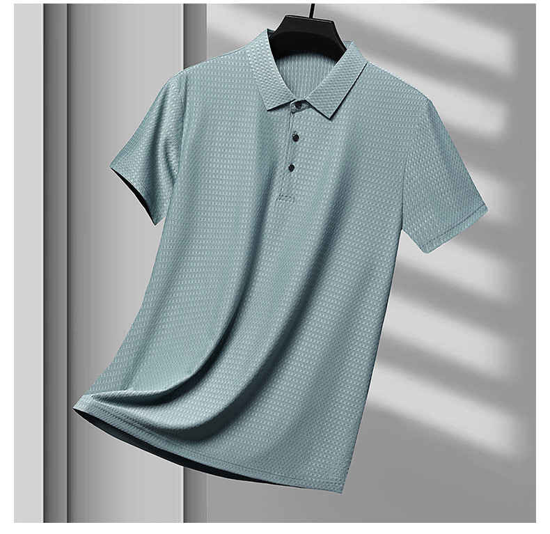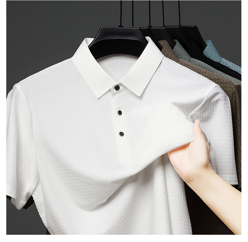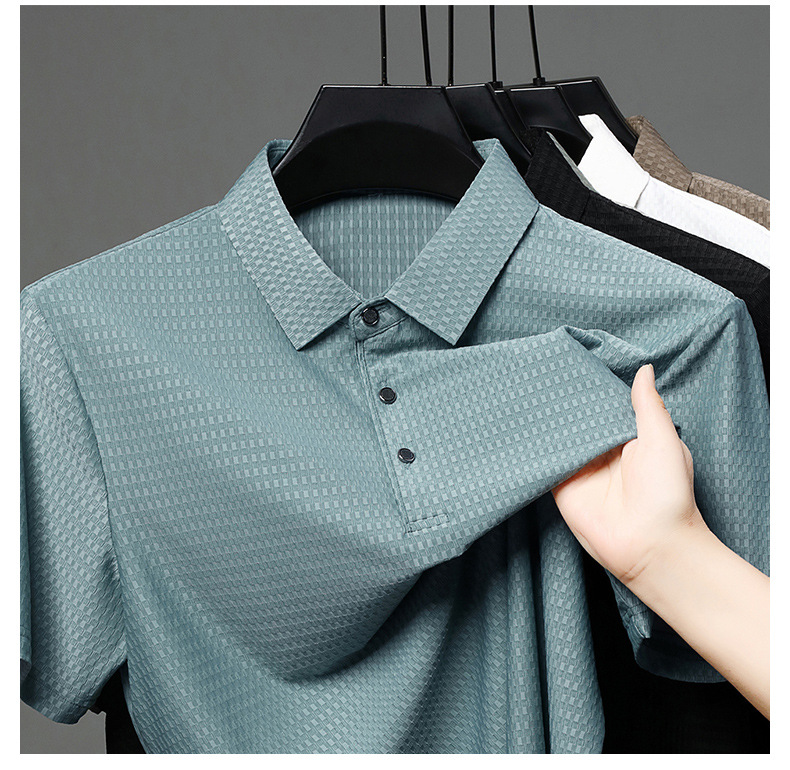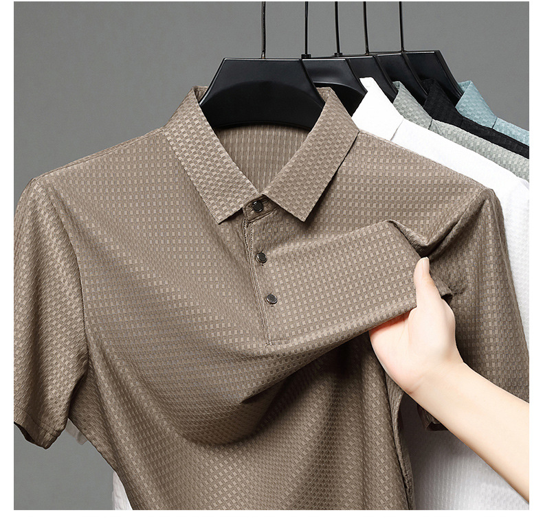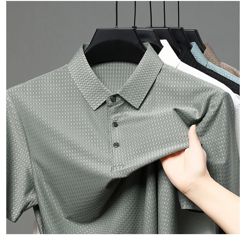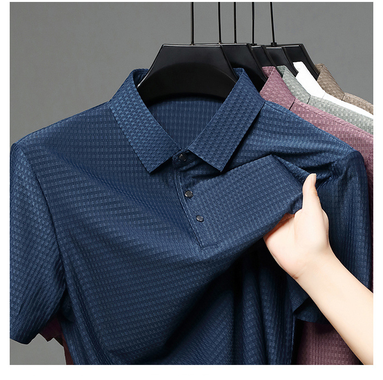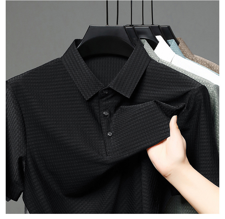 가벼운 럭셔리 남성 반팔 폴로 셔츠 여름 얇은 아이스 실크 탄성 통기성 중년 및 젊은 비즈니스 캐주얼 반팔 티셔츠