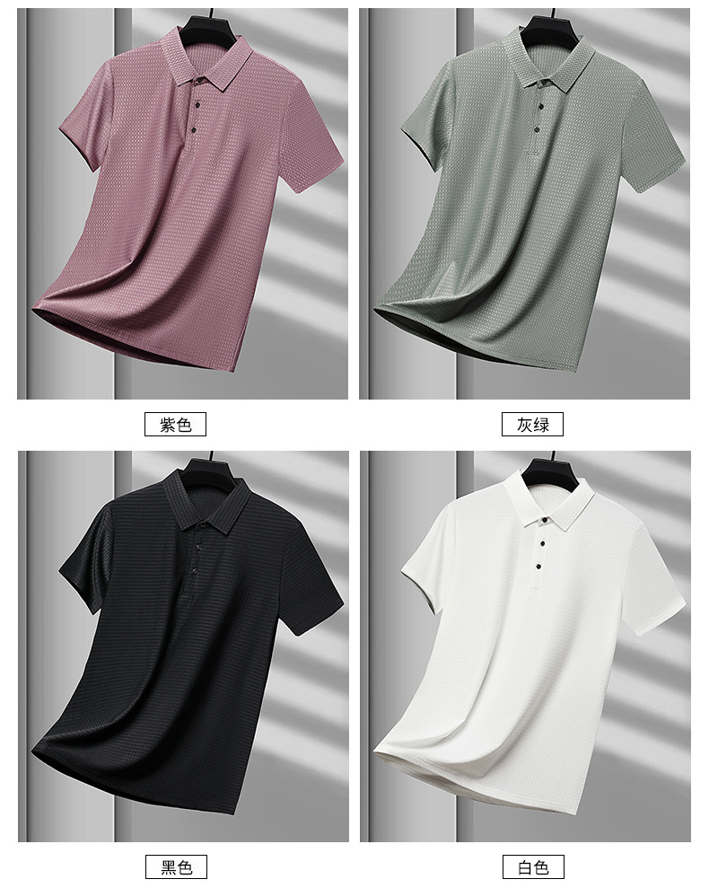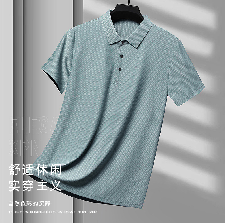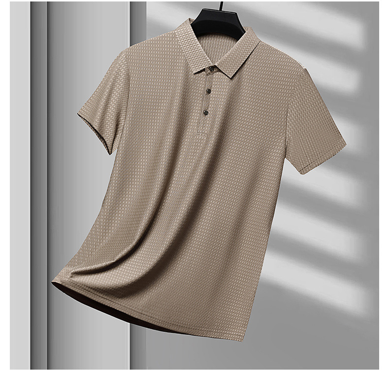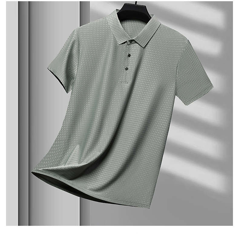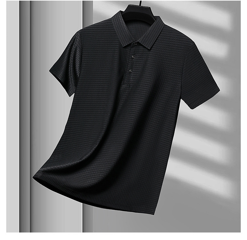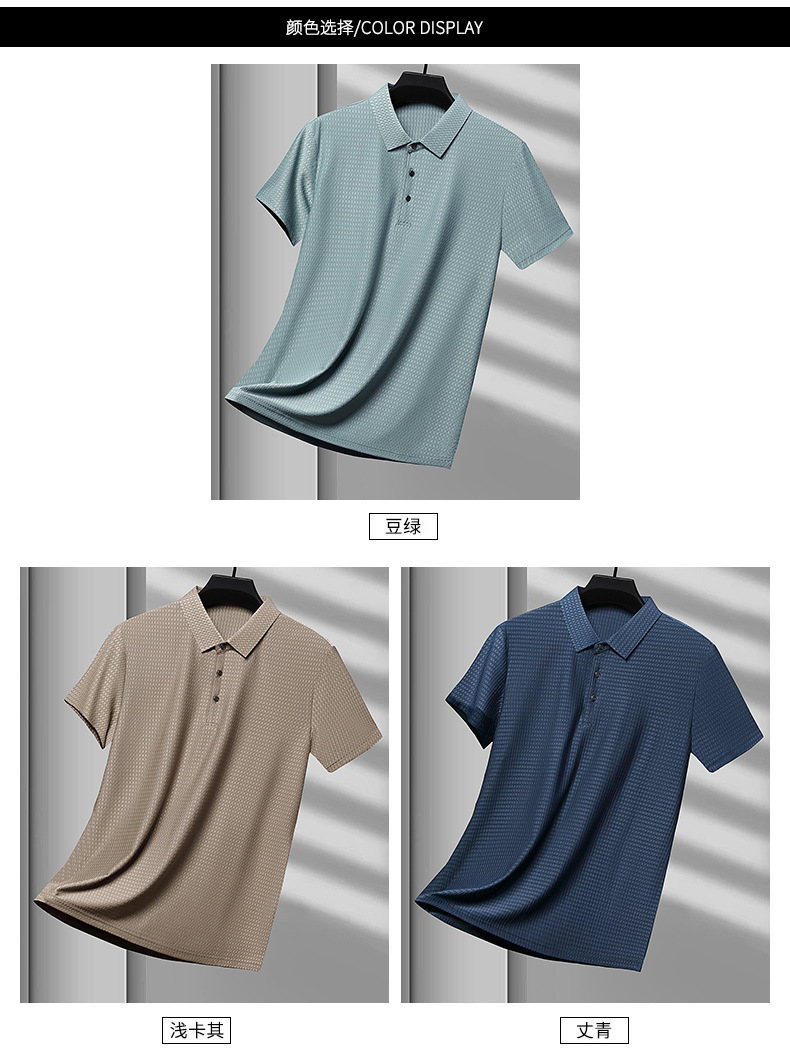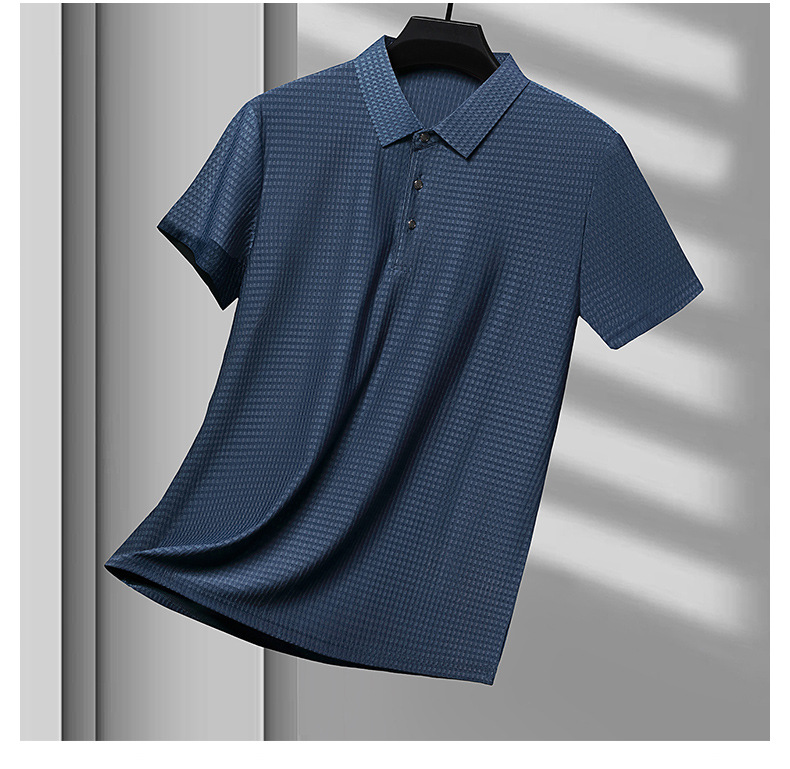 가벼운 럭셔리 남성 반팔 폴로 셔츠 여름 얇은 아이스 실크 탄성 통기성 중년 및 젊은 비즈니스 캐주얼 반팔 티셔츠
