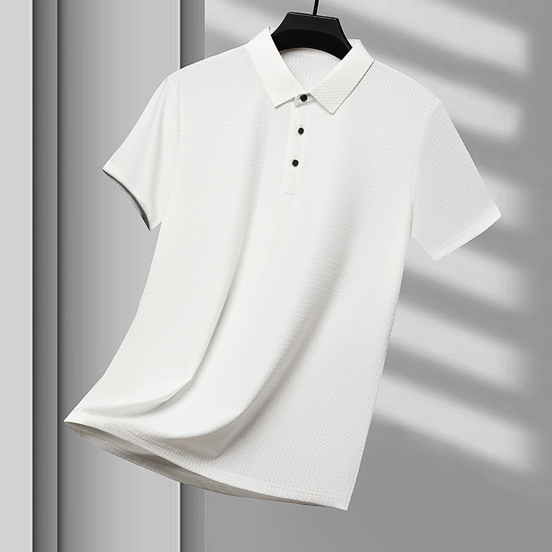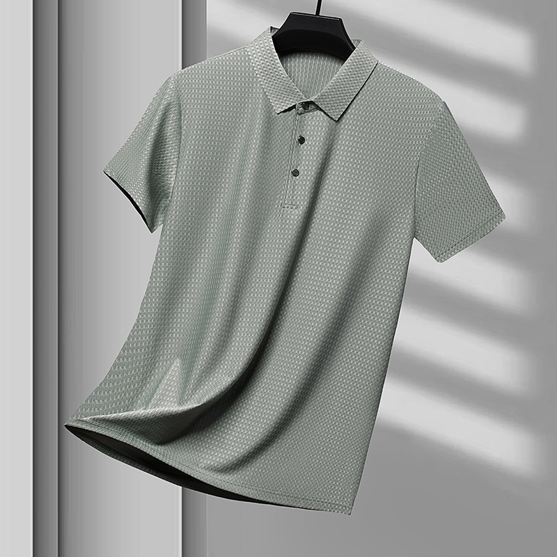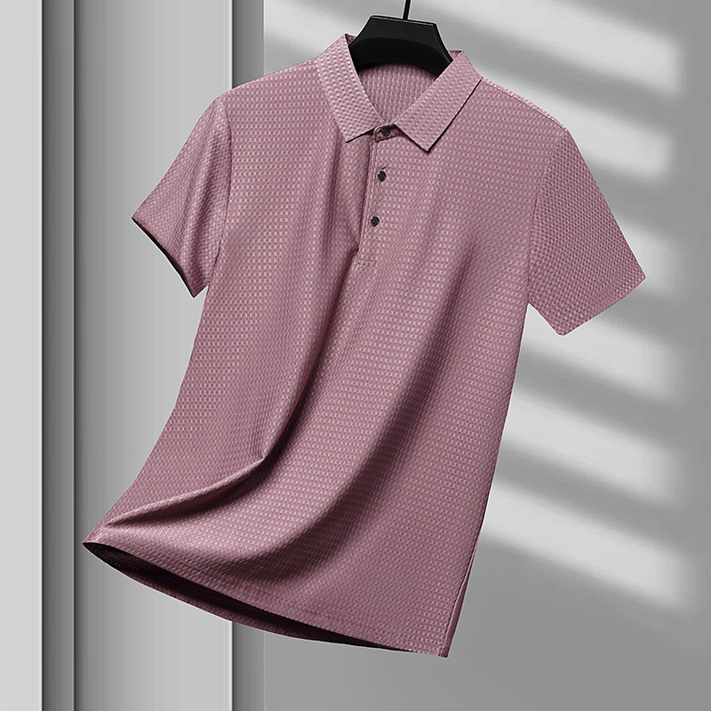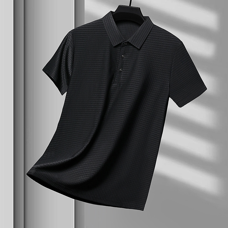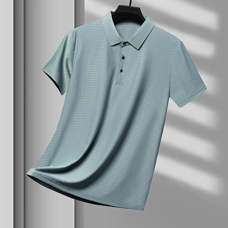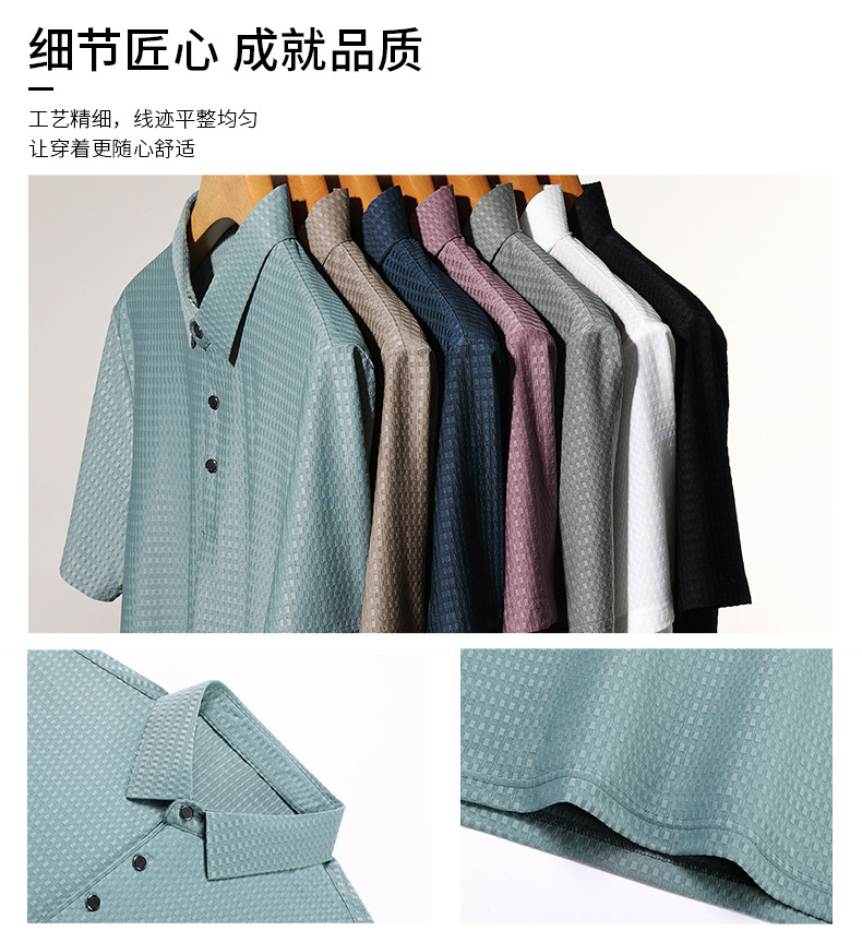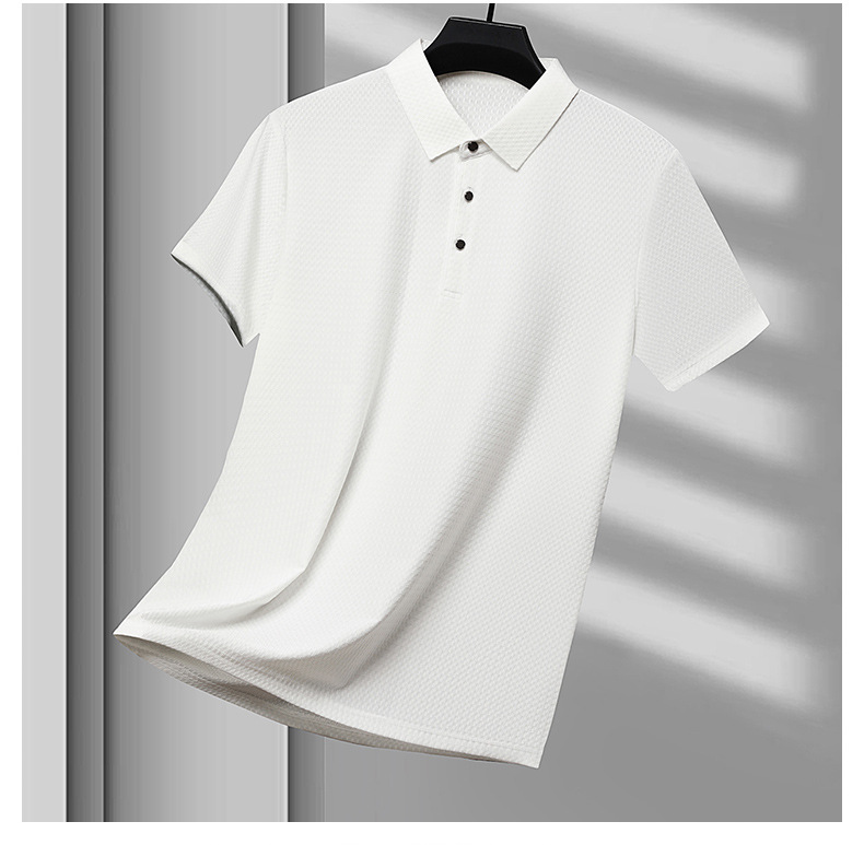 가벼운 럭셔리 남성 반팔 폴로 셔츠 여름 얇은 아이스 실크 탄성 통기성 중년 및 젊은 비즈니스 캐주얼 반팔 티셔츠