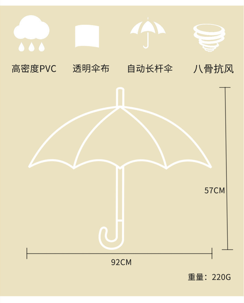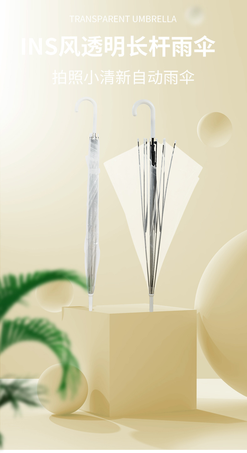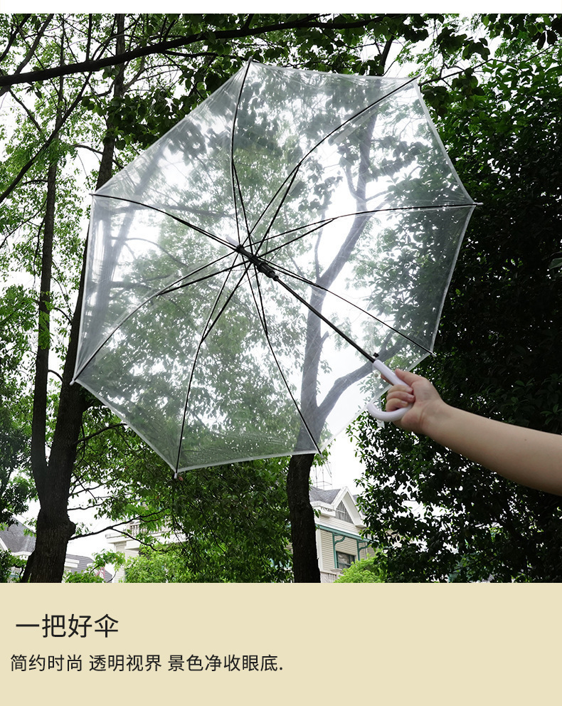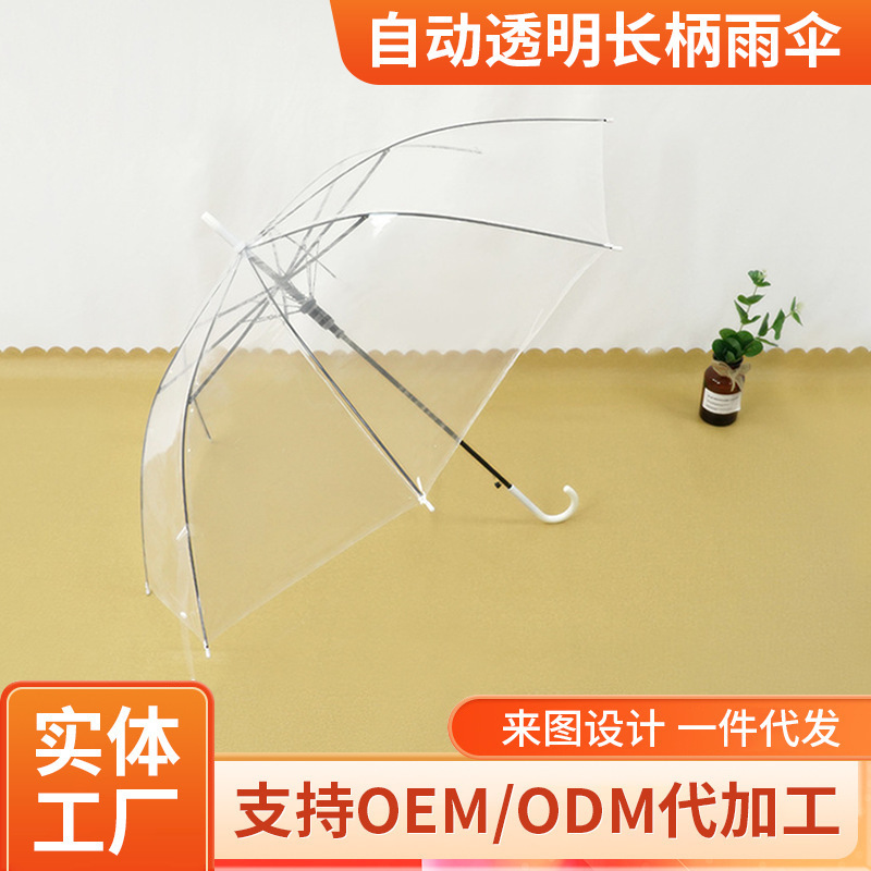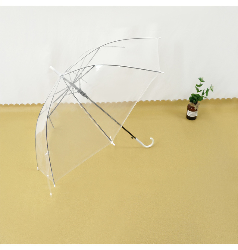 8 뼈 투명 우산 도매 일본 작은 신선한 투명 우산 곡선 핸들 스트레이트 로드 자동 어린이 우산 로고스토어 가기